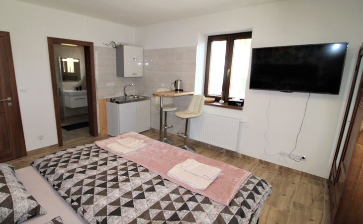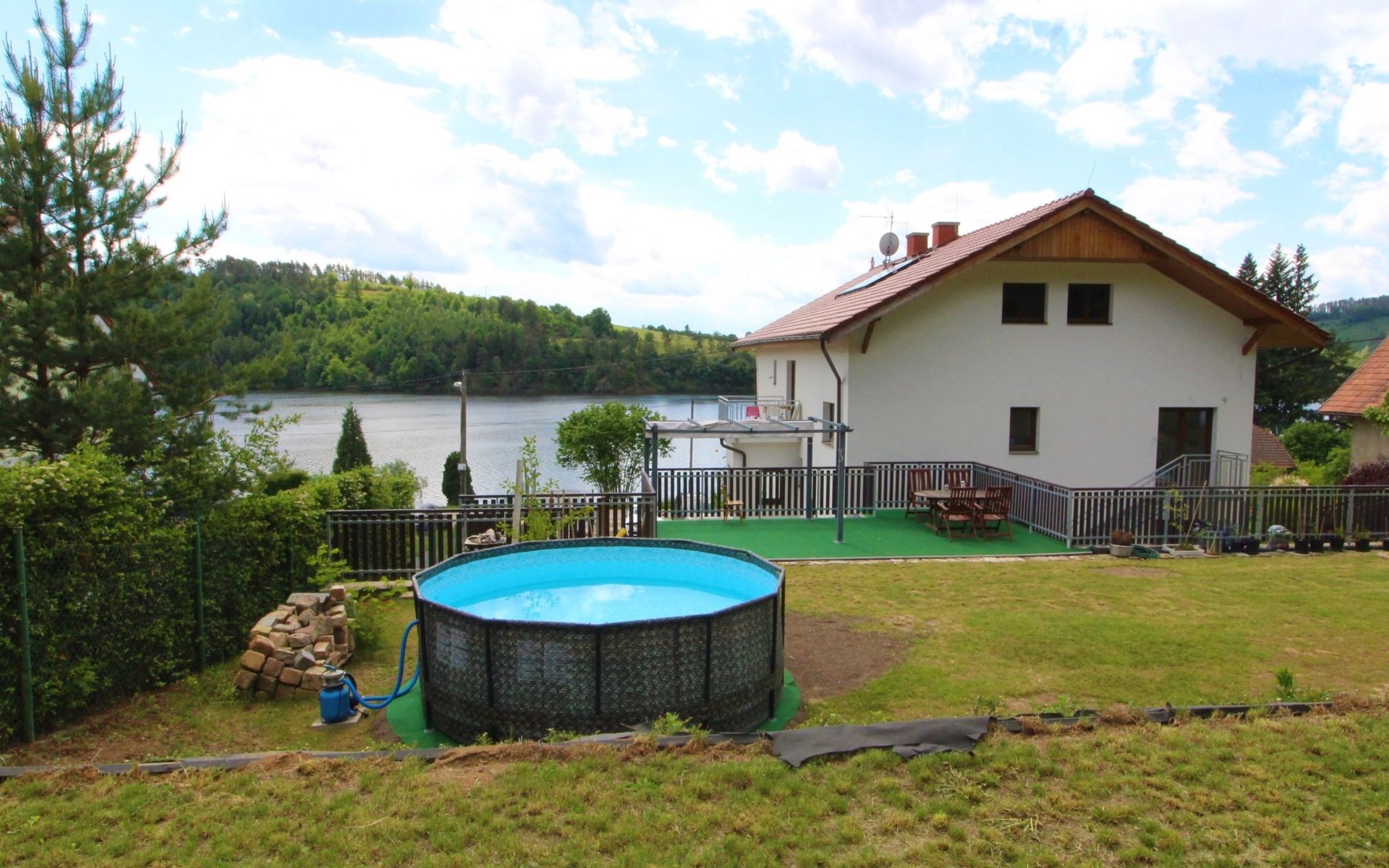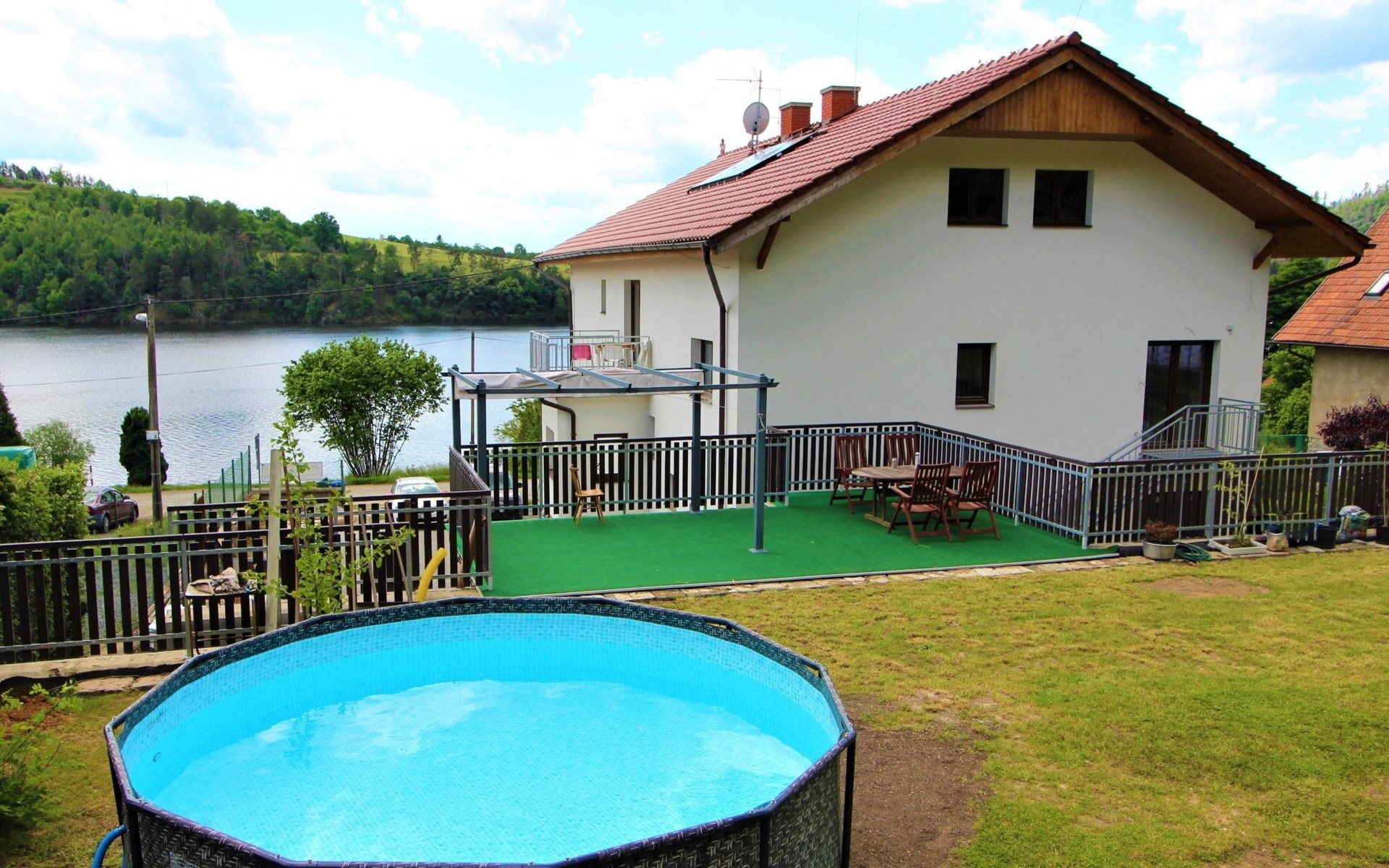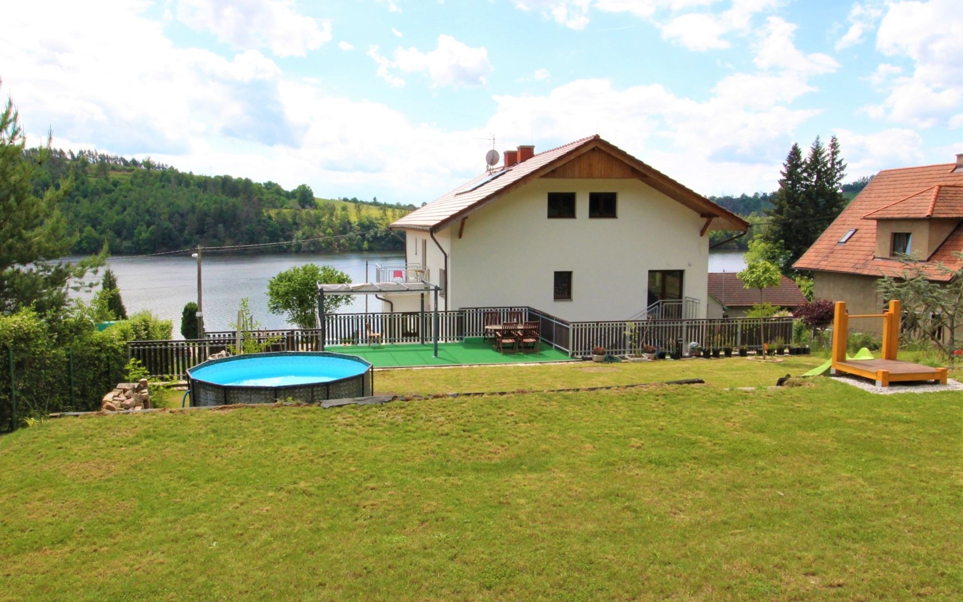 Freistehendes, komfortables Appartementhaus "Županovice", auf 2 Stockwerken, renoviert im Jahre 2022. 3 Wohnungen im Ferienhaus. Sonnige Lage, 50 m vom See, 50 m vom Strand. Zur Mitbenutzung: Grundstück, Garten mit Rasen, Schwimmbad rund (3,6 m Durchmesser, saisonale Verfügbarkeit: 01.Jun. - 15.Sep.). Pergola, Terrasse, Gartenmöbel, Grill. Im Hause: Zentralheizung, Waschmaschine. Parkplatz (für 5 Autos) auf dem Grundstück. Bushaltestelle "Županovice" 170 m, Grasstrand 50 m. Kinderspielplatz 50 m. Nahe gelegene Sehenswürdigkeiten: Slapská přehrada 50 m, Lom Hřiměždice, Albertovy Skály 12 km, Zámek Dobříš 15 km, Lom Solopysky 23 km, Vodní nádž Kamýk 25 km, Orlická přehrada/Zámek Orlík 30 km. Wandergebiete: Toulava 10 km, Svatá Hora/Příbram 28 km, Praha 50 km.