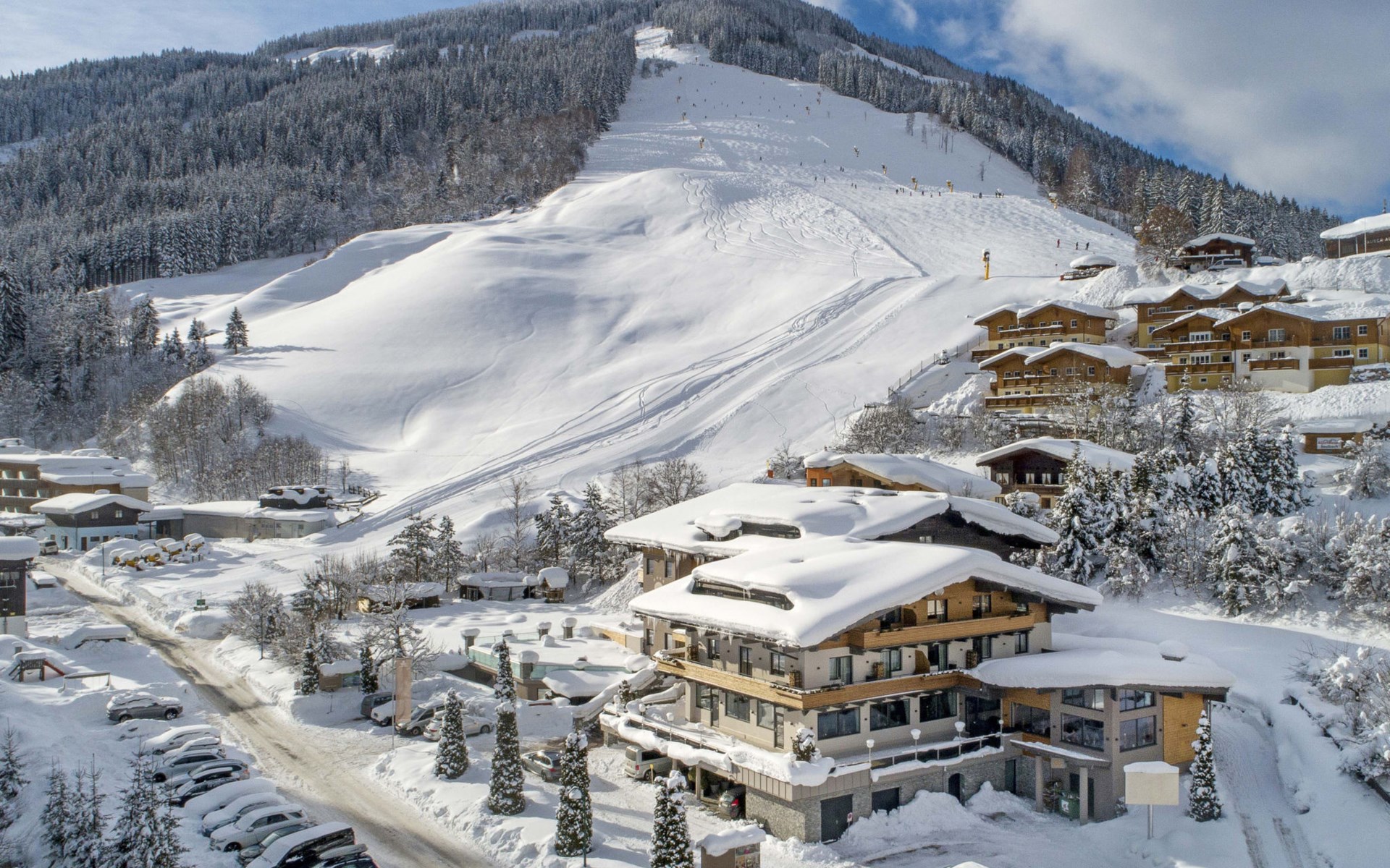 Saalbach: Frühstück Inklusive! Bietet diese moderne, komfortable Ferienanlage "Saalbach Suites by AlpsResorts". 4 km vom Zentrum von Saalbach, direkt am Skigebiet. In der Anlage: Sauna, Fitnessraum, Dampfbad, Ruheraum, Zentralheizung. Frühstück (inkl.). Parkplatz beim Haus. Supermarkt 3 km, Restaurant 4 km, Bahnstation "Maishofen" 10 km, Freibad 4 km. Golfplatz (18 Loch) 19 km, Gondelbahn 500 m, Skisportanlagen, Skischule 500 m. Nahe gelegene Sehenswürdigkeiten: Freibad Käpt’n Hook. Bekannte Skigebiete sind gut erreichbar: Saalbach-Hinterglemm Home of Lässig. Bitte beachten: Gratis Skibus. Der gratis Skibus fährt zum Skigebiet Saalbach. Bei guter Schneelage Zufahrt mit den Skiern bis zum Haus. Das Foto ist nur ein Wohnungsbeispiel. Die Mietobjekte können sich in Wohnfläche, Raumaufteilung, Ausstattung und Einrichtung unterscheiden. Dank der inkludierten JOKER CARD genießen Sie von Mai bis Oktober zahlreiche Gratisleistungen in der Region Saalbach Hinterglemm.