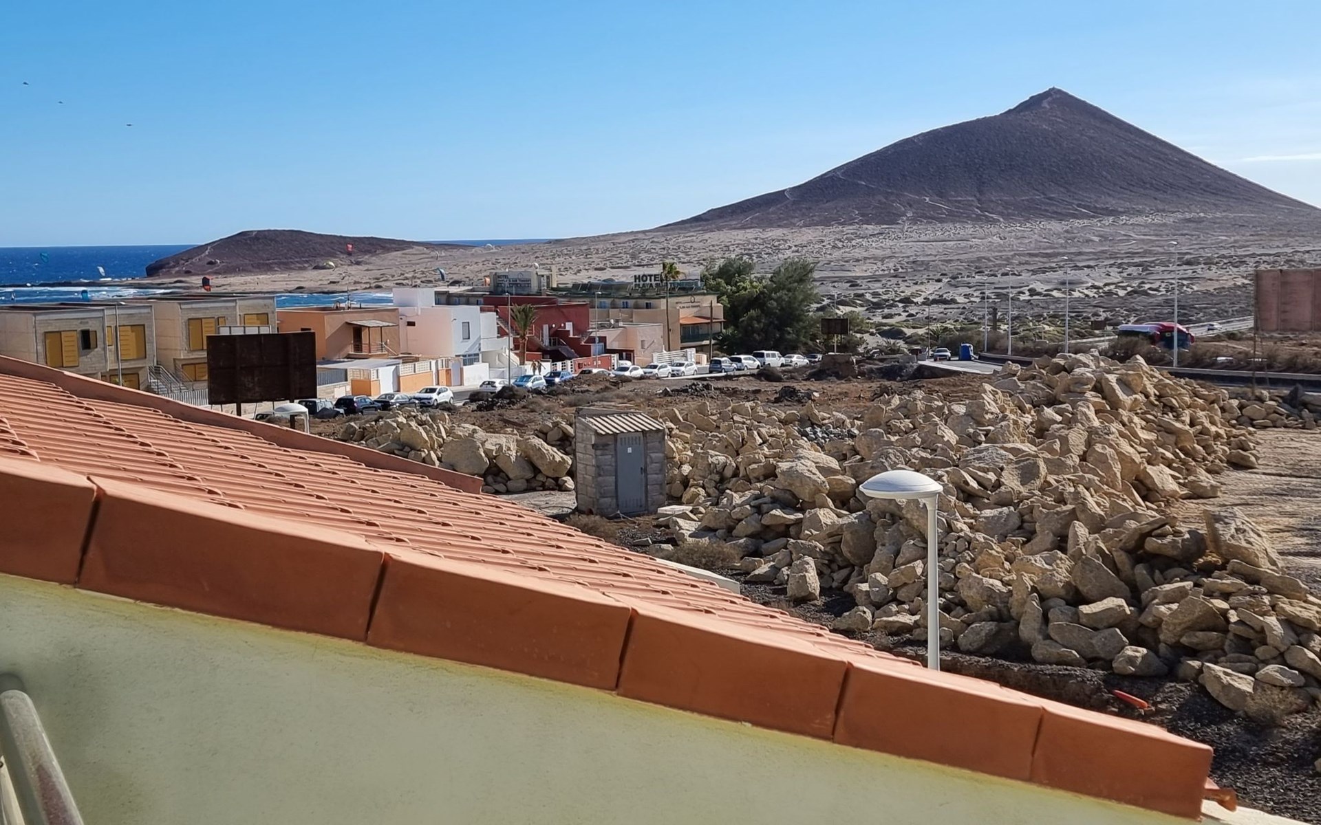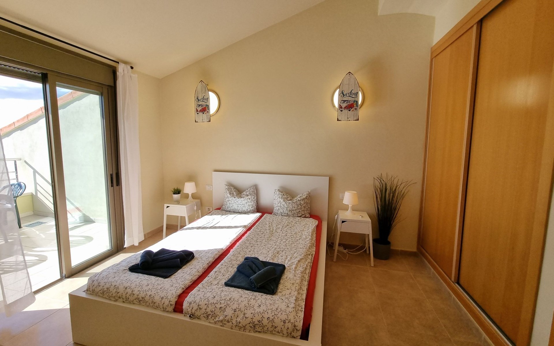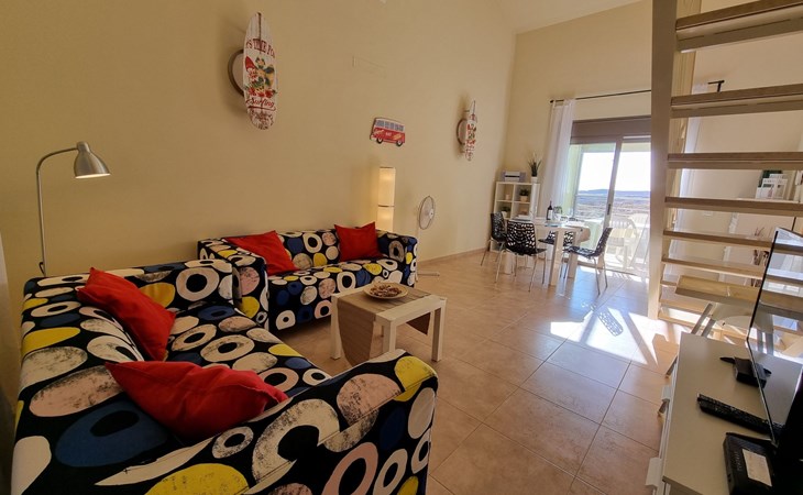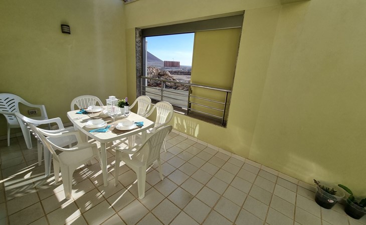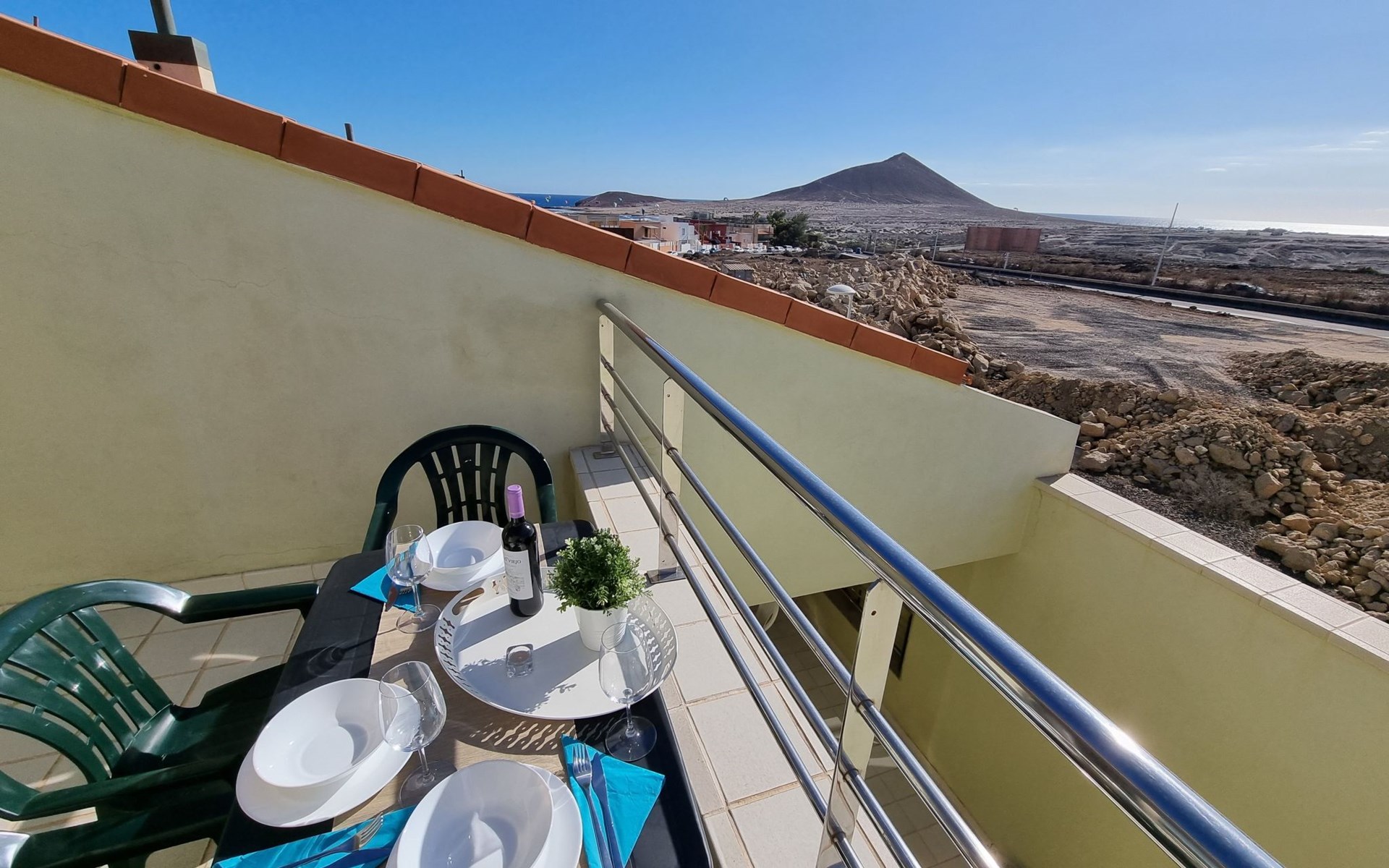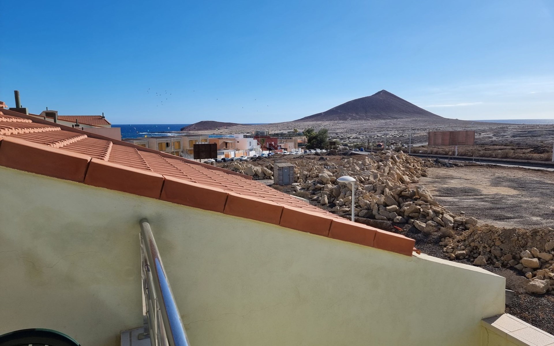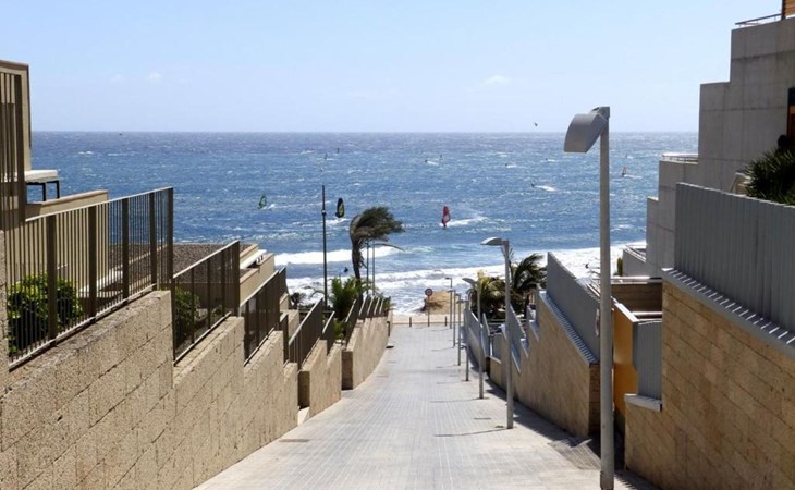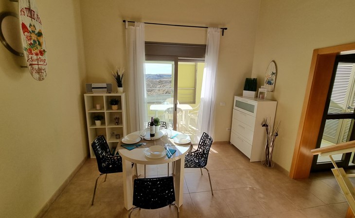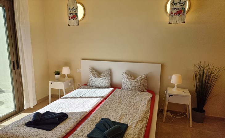 Die lichtdurchflutete moderne Villa Los Vientos bietet auf zwei Etagen viel Platz und Komfort mit einem schönem Balkon und großer Terrasse am Rande des weitläufigen Naturschutzgebiets von El Médano in unmittelbarer Strandnähe des Surfer- und Kiterhotspot.Das neu und modern eingerichtete Haus liegt nur etwa 100 Meter Fußweg vom beliebten Naturstrand El Médanos entfernt - besonders ideal für Surfer und alle Wassersportler, die den Strand mit ihren Boards in etwa 2 Minuten zu Fuß erreichen und ihre gesamte Ausrüstung auf der großen Terrasse des Hauses sicher unterbringen können. Aber auch für Familien mit Kindern ist das Haus sehr gut geeignet, da diese durch die hervorragende Lage des Hauses in Strandnähe schnell den Strand erreichen können und somit nicht auf ein Auto angewiesen sind. Und auch alle Geschäfte des täglichen Bedarfs kann man fußläufig in nur wenigen Gehminuten erreichen.Da in der gepflegten Wohnanlage vorwiegend Dauermieter leben, ist es immer schön ruhig und es gibt keine lauten Partyabende wie in vielen anderen Anlagen.Das offen gestaltete Haus verfügt über zwei Ebenen und ist für 5 Personen eingerichtet. Es ist 95 Quadratmeter groß und erscheint besonders groß und luftig, weil die Decken schräg nach oben verlaufen so dass es auch im Sommer nie heiß und stickig wird.In der oberen Etage des Hauses liegt das große Schlafzimmer mit einem riesigen Einbauschrank, ein helles und schönes Badezimmer en Suite mit Bidet sowie ein toller Balkon mit fantastischem Blick auf das Meer und den beeindruckenden roten Vulkanberg Montaña Roja.In der unteren Etage befindet sich das zweite Schlafzimmer (ebenfalls mit großem Einbauschrank) mit einem gegenüberliegendem Badezimmer, einem großen hellen Wohnzimmer mit 2 Sofas, SAT-Flachbildfernseher (mit internationalen TV-Kanälen) und einer gemütlichen Essecke. Hier befindet sich auch ein großer Abstellraum in dem man bequem alle Surf- und Strandutensilien unterbringen kann.Da die Schlafzimmer auf verschiedenen Ebenen liegen und jedes ein eigenes Bad hat, ist das Haus auch gut für ein befreundetes Paar als Ferienunterkunft geeignet.Die komplett neue offene und hochwertige große Echtholz-Küche zeichnet sich durch großzügige Granitarbeitsflächen aus und ist ausgestattet mit einem Induktionsherd mit Cerankochfeldern und Backofen, einem großen Kühlschrank mit mehreren Gefrierfächern, einer Spülmaschine, Mikrowelle, Toaster, Wasserkocher, Kaffeemaschine und einer Espressomaschine. Es sind ausreichend Teller, Gläser, Tassen, Töpfe und Pfannen in verschiedenen Größen vorhanden.Weiterhin verfügt das Haus über ein schnelles und stabiles Wifi-Netz mit Glasfaser-Geschwindigkeit, was für Gäste die zwischendurch arbeiten müssen sehr vorteilhaft ist. Außerdem gibt es eine Waschmaschine, Wäscheständer, Bügelbrett und Bügeleisen.Zum Entspannen steht eine große überdachte Sonnenterrasse mit Fensterschiebetüren zur Verfügung, von der aus man den herrlichen Meerblick bewundern kann. Hier kann man den Sonnenaufgang mit einer Tasse Kaffee, das Frühstück in gemütlicher Atmosphäre sowie das Abendessen bei einem schönen Sonnenuntergang genießen.Das Besondere an der Lage des Hauses ist - neben der unmittelbaren Nähe zum Strand und dem Blick auf die roten Vulkanberg Montaña Roja - der beeindruckende Blick auf den fast 3.900 m hohen Vulkanberg Teide. Dieser ist im Winter oft mit Schnee bedeckt und bietet dann einen einfach atemberaubenden Anblick!Bienvenidos und herzlich willkommen in El Médano!Einmal im Jahr findet der für Surfer sehr wichtige „Windsurf World Cup“ in Médano stattfindet. Zu dem Event kommen jährlich die besten Windsurfer aus aller Welt - und das Ereignis findet fast genau vor dem Haus statt!Nur zwei Häuser neben der Villa liegt auch der Kiteclub „El Médano Kiteclub“. An manchen Tagen kann man das Meeresrauschen hören.
