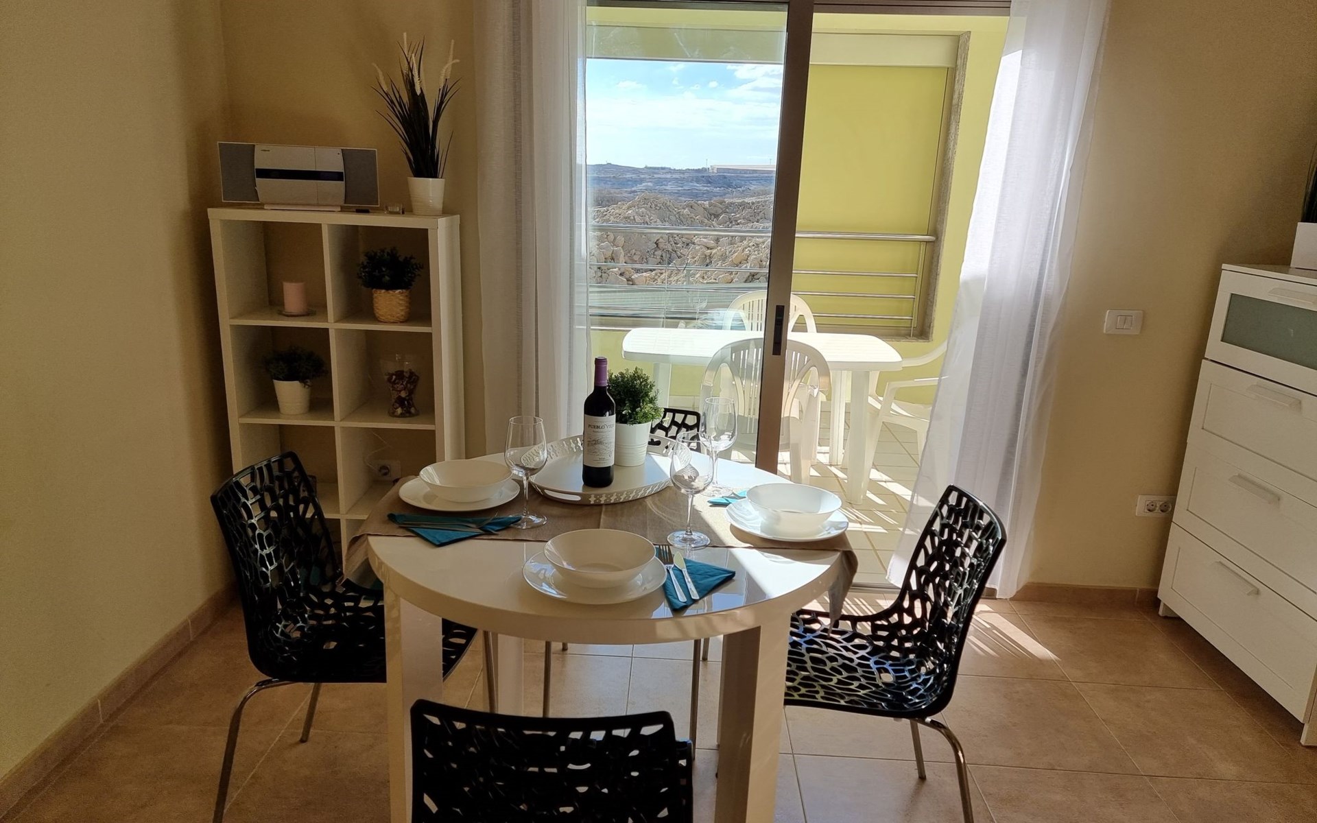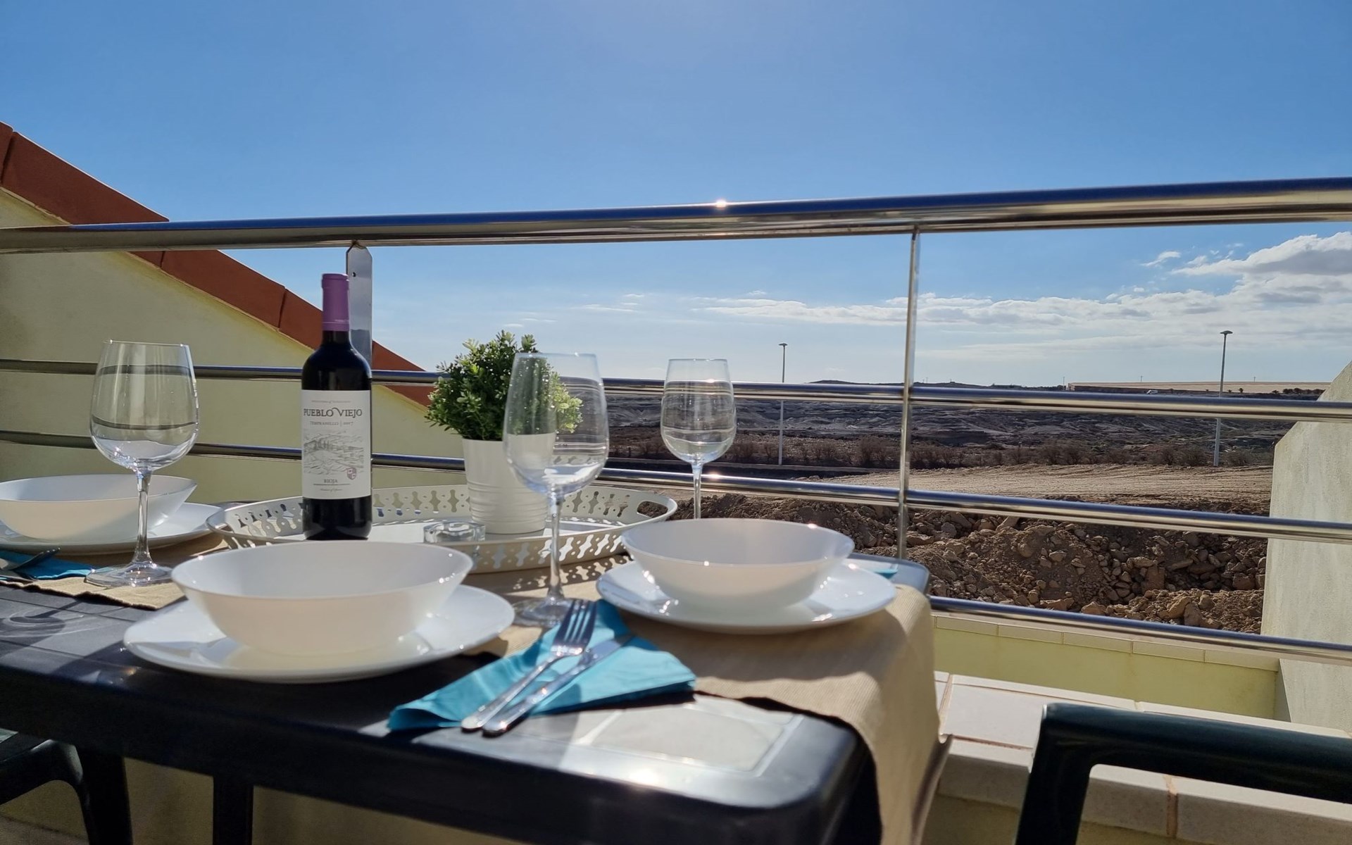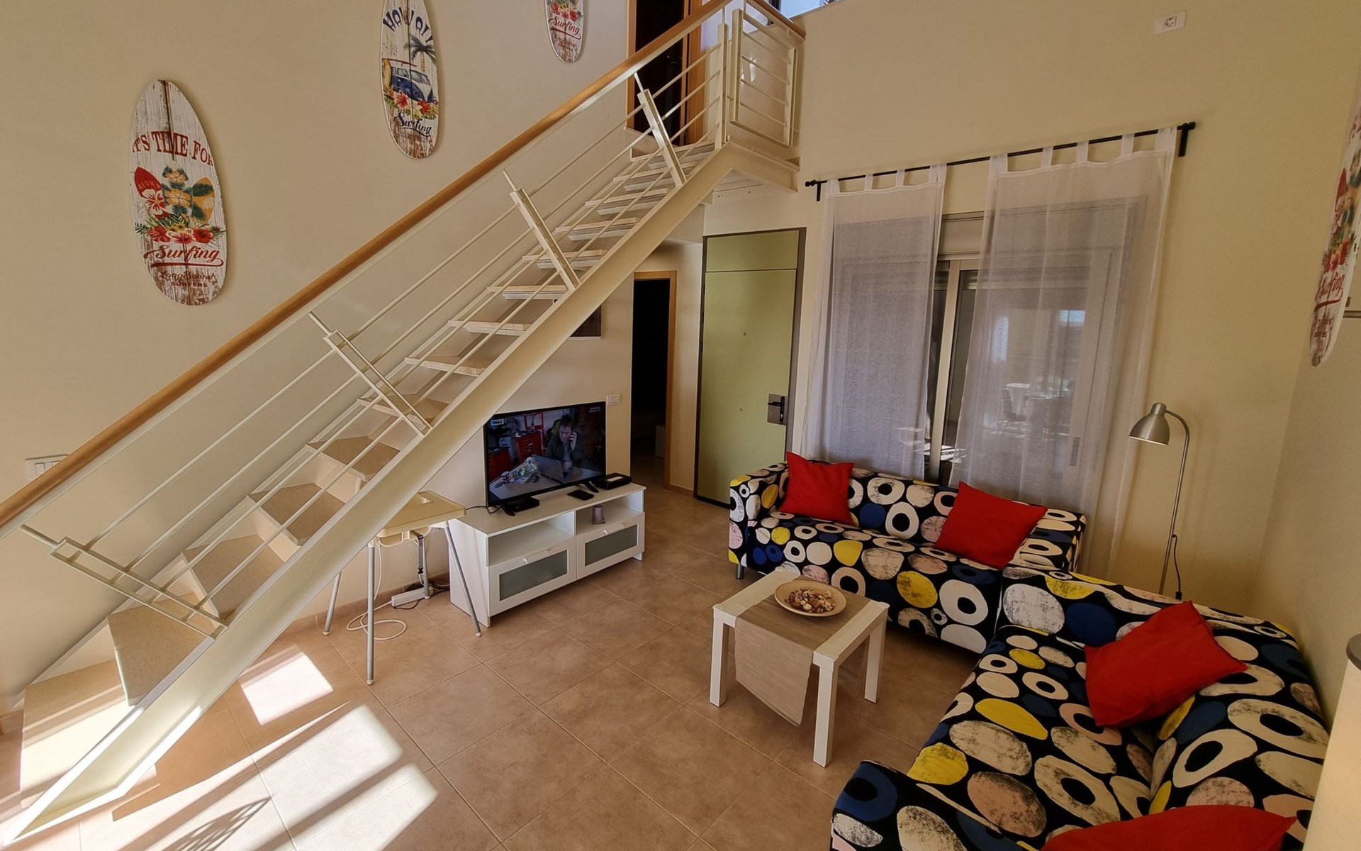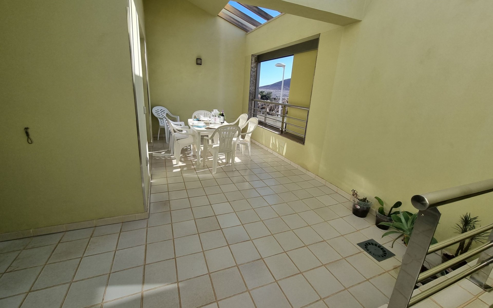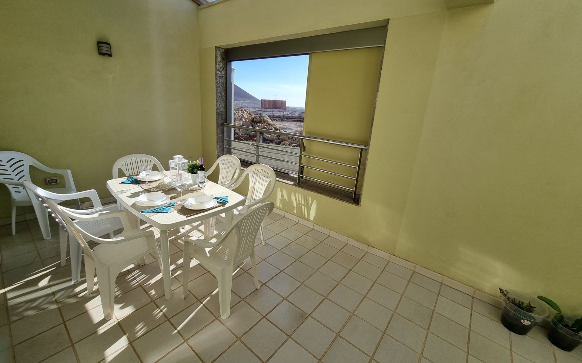 Die lichtdurchflutete moderne Villa Los Vientos bietet auf zwei Etagen viel Platz und Komfort mit einem schönem Balkon und großer Terrasse am Rande des weitläufigen Naturschutzgebiets von El Médano in unmittelbarer Strandnähe des Surfer- und Kiterhotspot.Das neu und modern eingerichtete Haus liegt nur etwa 100 Meter Fußweg vom beliebten Naturstrand El Médanos entfernt - besonders ideal für Surfer und alle Wassersportler, die den Strand mit ihren Boards in etwa 2 Minuten zu Fuß erreichen und ihre gesamte Ausrüstung auf der großen Terrasse des Hauses sicher unterbringen können. Aber auch für Familien mit Kindern ist das Haus sehr gut geeignet, da diese durch die hervorragende Lage des Hauses in Strandnähe schnell den Strand erreichen können und somit nicht auf ein Auto angewiesen sind. Und auch alle Geschäfte des täglichen Bedarfs kann man fußläufig in nur wenigen Gehminuten erreichen.Da in der gepflegten Wohnanlage vorwiegend Dauermieter leben, ist es immer schön ruhig und es gibt keine lauten Partyabende wie in vielen anderen Anlagen.Das offen gestaltete Haus verfügt über zwei Ebenen und ist für 5 Personen eingerichtet. Es ist 95 Quadratmeter groß und erscheint besonders groß und luftig, weil die Decken schräg nach oben verlaufen so dass es auch im Sommer nie heiß und stickig wird.In der oberen Etage des Hauses liegt das große Schlafzimmer mit einem riesigen Einbauschrank, ein helles und schönes Badezimmer en Suite mit Bidet sowie ein toller Balkon mit fantastischem Blick auf das Meer und den beeindruckenden roten Vulkanberg Montaña Roja.In der unteren Etage befindet sich das zweite Schlafzimmer (ebenfalls mit großem Einbauschrank) mit einem gegenüberliegendem Badezimmer, einem großen hellen Wohnzimmer mit 2 Sofas, SAT-Flachbildfernseher (mit internationalen TV-Kanälen) und einer gemütlichen Essecke. Hier befindet sich auch ein großer Abstellraum in dem man bequem alle Surf- und Strandutensilien unterbringen kann.Da die Schlafzimmer auf verschiedenen Ebenen liegen und jedes ein eigenes Bad hat, ist das Haus auch gut für ein befreundetes Paar als Ferienunterkunft geeignet.Die komplett neue offene und hochwertige große Echtholz-Küche zeichnet sich durch großzügige Granitarbeitsflächen aus und ist ausgestattet mit einem Induktionsherd mit Cerankochfeldern und Backofen, einem großen Kühlschrank mit mehreren Gefrierfächern, einer Spülmaschine, Mikrowelle, Toaster, Wasserkocher, Kaffeemaschine und einer Espressomaschine. Es sind ausreichend Teller, Gläser, Tassen, Töpfe und Pfannen in verschiedenen Größen vorhanden.Weiterhin verfügt das Haus über ein schnelles und stabiles Wifi-Netz mit Glasfaser-Geschwindigkeit, was für Gäste die zwischendurch arbeiten müssen sehr vorteilhaft ist. Außerdem gibt es eine Waschmaschine, Wäscheständer, Bügelbrett und Bügeleisen.Zum Entspannen steht eine große überdachte Sonnenterrasse mit Fensterschiebetüren zur Verfügung, von der aus man den herrlichen Meerblick bewundern kann. Hier kann man den Sonnenaufgang mit einer Tasse Kaffee, das Frühstück in gemütlicher Atmosphäre sowie das Abendessen bei einem schönen Sonnenuntergang genießen.Das Besondere an der Lage des Hauses ist - neben der unmittelbaren Nähe zum Strand und dem Blick auf die roten Vulkanberg Montaña Roja - der beeindruckende Blick auf den fast 3.900 m hohen Vulkanberg Teide. Dieser ist im Winter oft mit Schnee bedeckt und bietet dann einen einfach atemberaubenden Anblick!Bienvenidos und herzlich willkommen in El Médano!Einmal im Jahr findet der für Surfer sehr wichtige „Windsurf World Cup“ in Médano stattfindet. Zu dem Event kommen jährlich die besten Windsurfer aus aller Welt - und das Ereignis findet fast genau vor dem Haus statt!Nur zwei Häuser neben der Villa liegt auch der Kiteclub „El Médano Kiteclub“. An manchen Tagen kann man das Meeresrauschen hören.