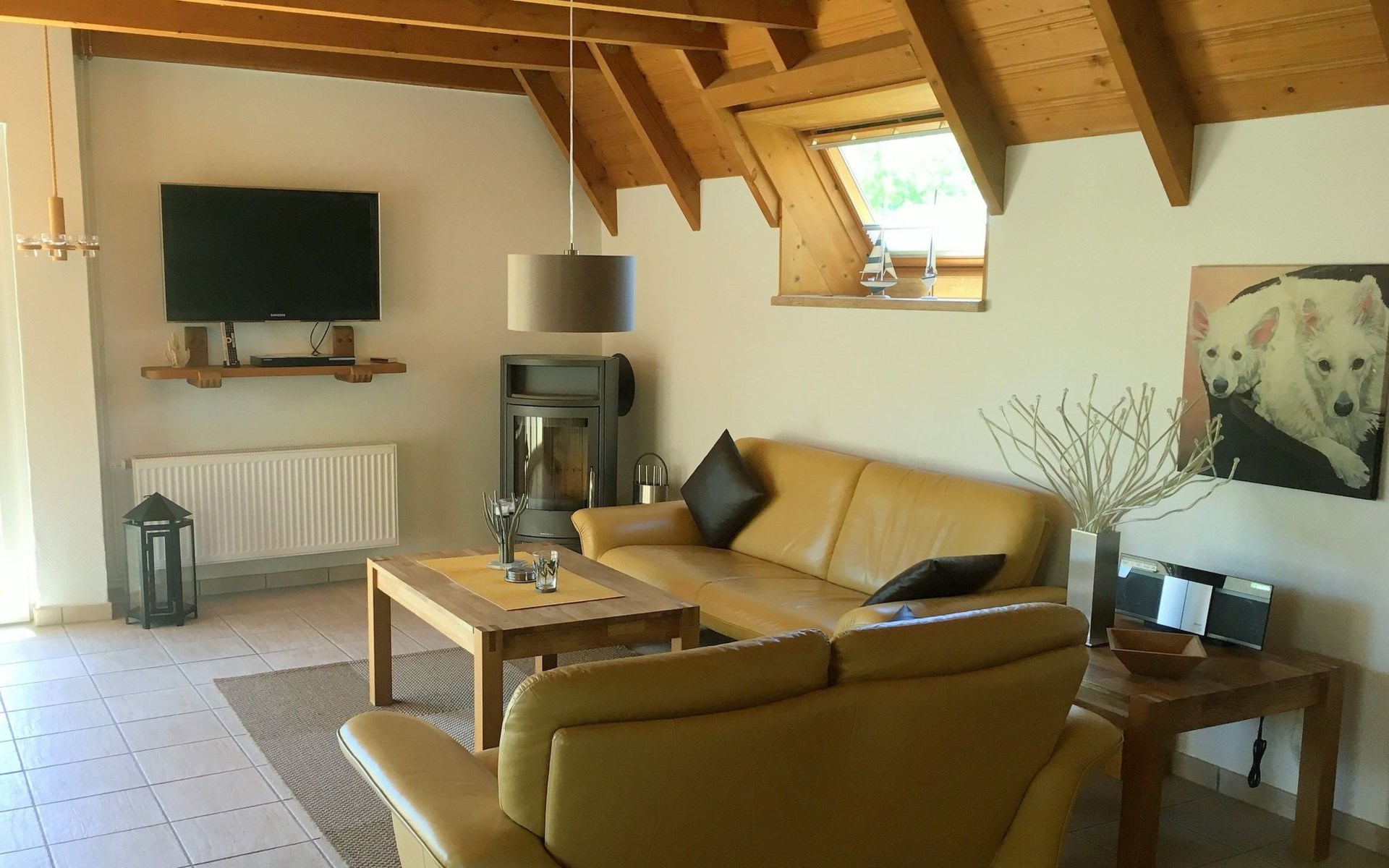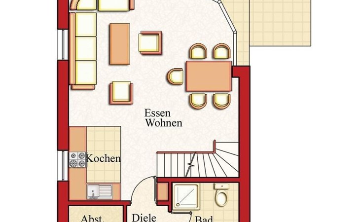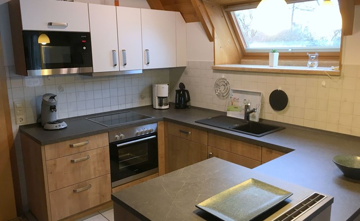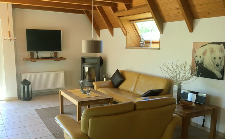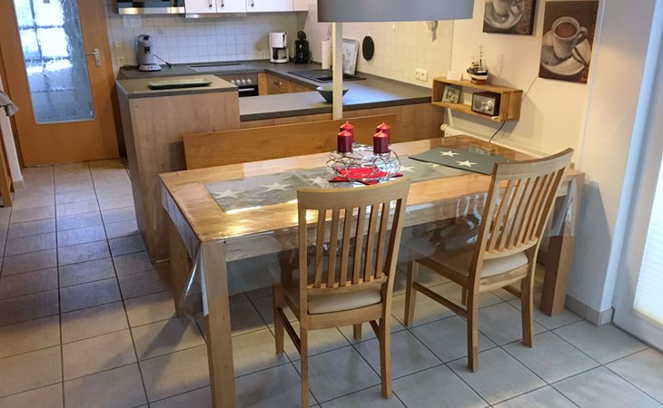 Unsere Villa ist mit drei Sternen vom Deutschen Tourismusverband zertifiziert worden. Sie haben im gesamten Haus schnelles WLAN via Glasfaserkabel! Auf insgesamt 69 Quadratmetern finden Sie alles, was Ihrer Familie und Ihren Vierbeinern den Urlaub so schön wie möglich machen soll. Von Hundenäpfen über USB-Ladesteckdosen, Kosmetikspiegeln, Wäscheständern bis hin zum BlueTooth Lautsprecher in der Deckenlampe im Badezimmer. Sie finden, abgehend von der Diele im Erdgeschoss unseres Ferienhauses ein helles Tageslichtbad mit Dusche, Fön, WC und Waschbecken. Der großzügige Wohn-/ Essbreich umfasst die erst kürzlich eingebaute, komplett ausgestattete Küchenzeile, den gemütlichen Essbereich und den kuscheligen Wohnbereich mit Flat TV, Kaminofen und Ledergarnitur. Durch die breite Glasfront gelangen Sie auf die große Sonnenterrasse in Südlage, auf der Sie im Sommer den ganzen Tag die Sonne genießen können. Hier finden Sie Sonnenliegen, Sonnenschirm, Gartenmöbel und einen Kohlegrill. Ein von außen begehbarer Abstellraum enthält einen Wäscheständer, einen Tiefgefrierschrank, Gartenspielzeug und Auflagen für die Terrassenmöbel. Im ersten Obergeschoss sind 2 Schlafräume untergebracht, einer mit einem breiten Doppelbett, Wäscheschrank, Stühlen, Nachttischen und einem Flachbildfernseher, das andere Schlafzimmer beherbergt 2 Einzelbetten, Nachttische und eine Kommode. Weiterhin finden Sie im Obergeschoss auch noch eine Toilette mit Waschbecken. Ebenfalls vorhanden: Safe, Bügeleisen und Bügelbrett, Kinderbett, Kinderhochsitz, Einbauschränke,