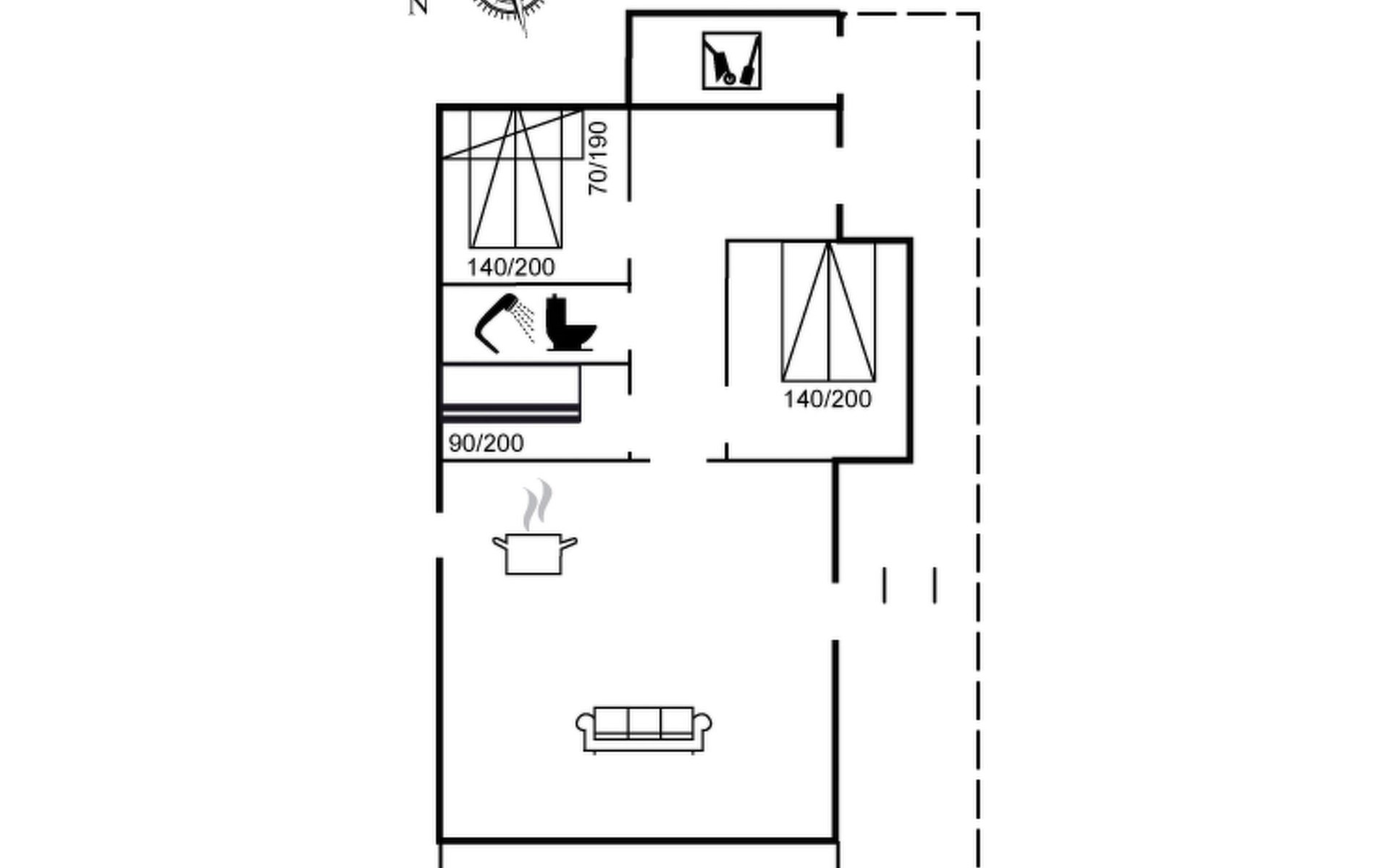 Einfamilienhaus, Baujahr 1971. 2.3 km vom Meer. Zur Alleinbenutzung: naturbelassenes Grundstück 4'200 m2. Terrasse (25 m2), Parkplatz beim Haus. Carport. Lebensmittelgeschäft 950 m. Der Besitzer akzeptiert keine Jugendgruppen.