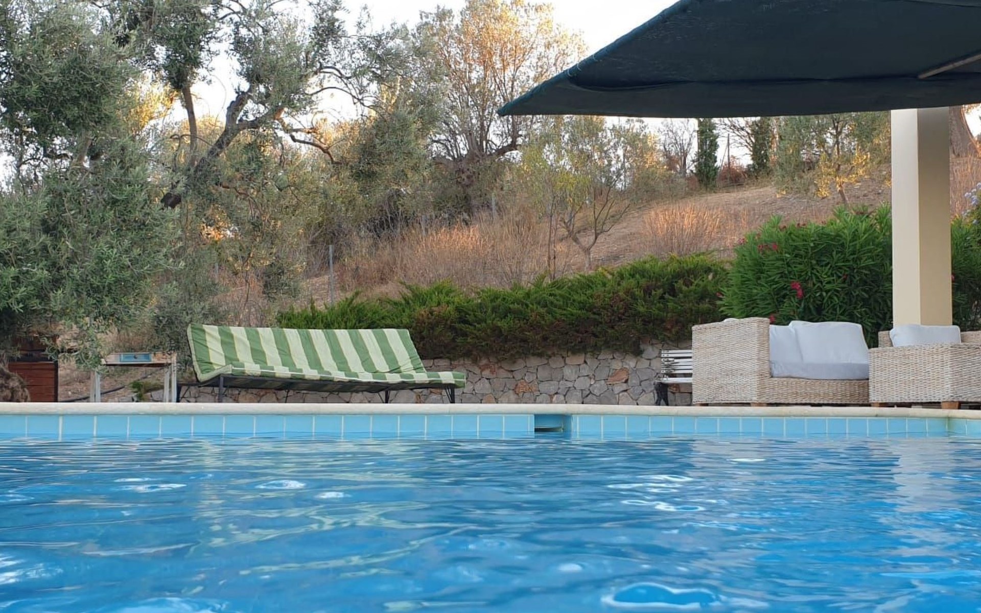 Der weitläufige Außenbereich der Villa ist ein Zeugnis für Freizeit und Privatsphäre, mit exklusivem Zugang zum Pool (Nutzung auf eigene Gefahr, da nicht eingezäunt), zu den Gärten und zum gesamten umzäunten Grundstück. Hier steht die Zeit still, ideal für nachmittägliche Pétanque-Spiele, ein Sonnenbad am Pool oder das Eintauchen in die ungestörte Ruhe, die die Villa Newlands bietet. Die Natur umgibt Sie nicht nur als Kulisse, sondern als eindringliches Erlebnis, das durch Vogelgesang, Zikaden und einen von Lichtverschmutzung freien Nachthimmel unterstrichen wird und Sie in seine heitere Umarmung einlädt.