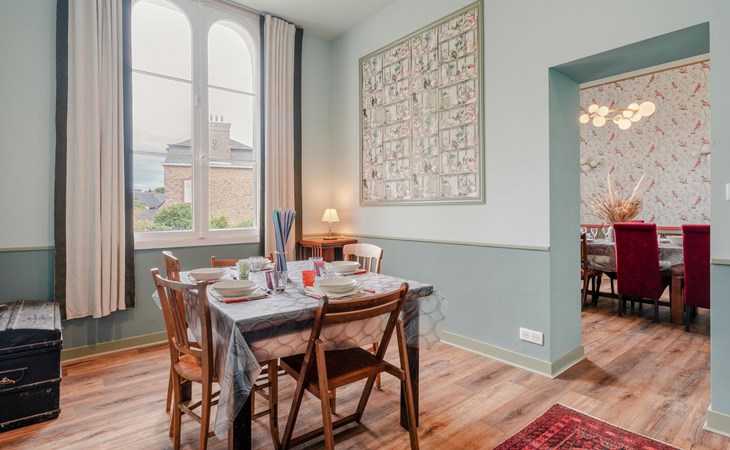 Sehr schöne Villa "Blanc Castel", auf 3 Stockwerken. Zentrale Lage, 700 m vom Meer, vom Strand. Zur Alleinbenutzung: Garten 1'600 m2 (eingezäunt). Im Hause: Fitnessraum, Tischtennis, Wäscherei, Waschmaschine, Wäschetrockner. Einkaufsgeschäft, Lebensmittelgeschäft 300 m, Supermarkt 600 m, Restaurant 400 m, Bar, Bäckerei 300 m, Bushaltestelle "La Houle" 500 m, Sandstrand "le Béchet" 700 m, Thermalbad "Emeria Dinard" 9 km. Golfplatz (18 Loch) 1.2 km, Segelschule 900 m, Reitstall 4.2 km. Nahe gelegene Sehenswürdigkeiten: St Malo, Dinan, Mont st Michel, Grand Aquarium de Saint Malo 12 km, Parc aquatique Aquamalo 12 km. Wandergebiete: GR34 200 m. Jugendgruppen nur auf Anfrage. Die Schlüsselübergabe findet bei der Agentur Interhome in Dinard statt, 9 km. Die Nachbarschaft ist sehr lärmempfindlich. Ruhe und gutes Benehmen wird erwartet.