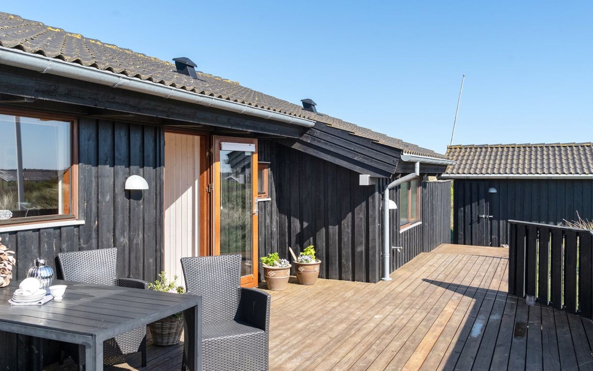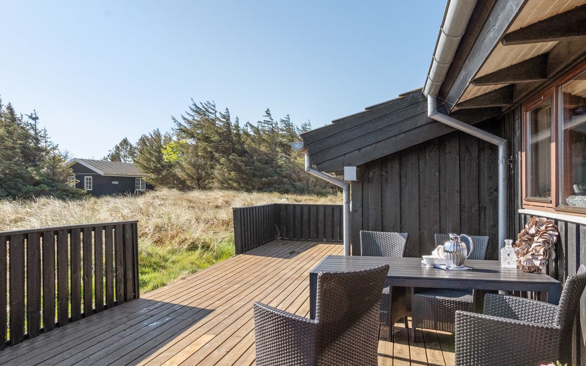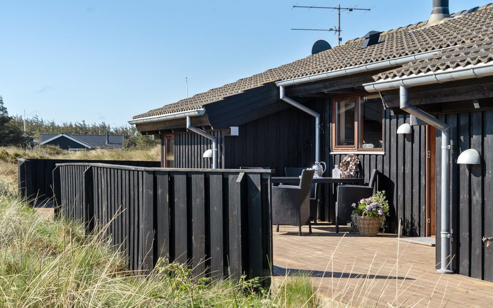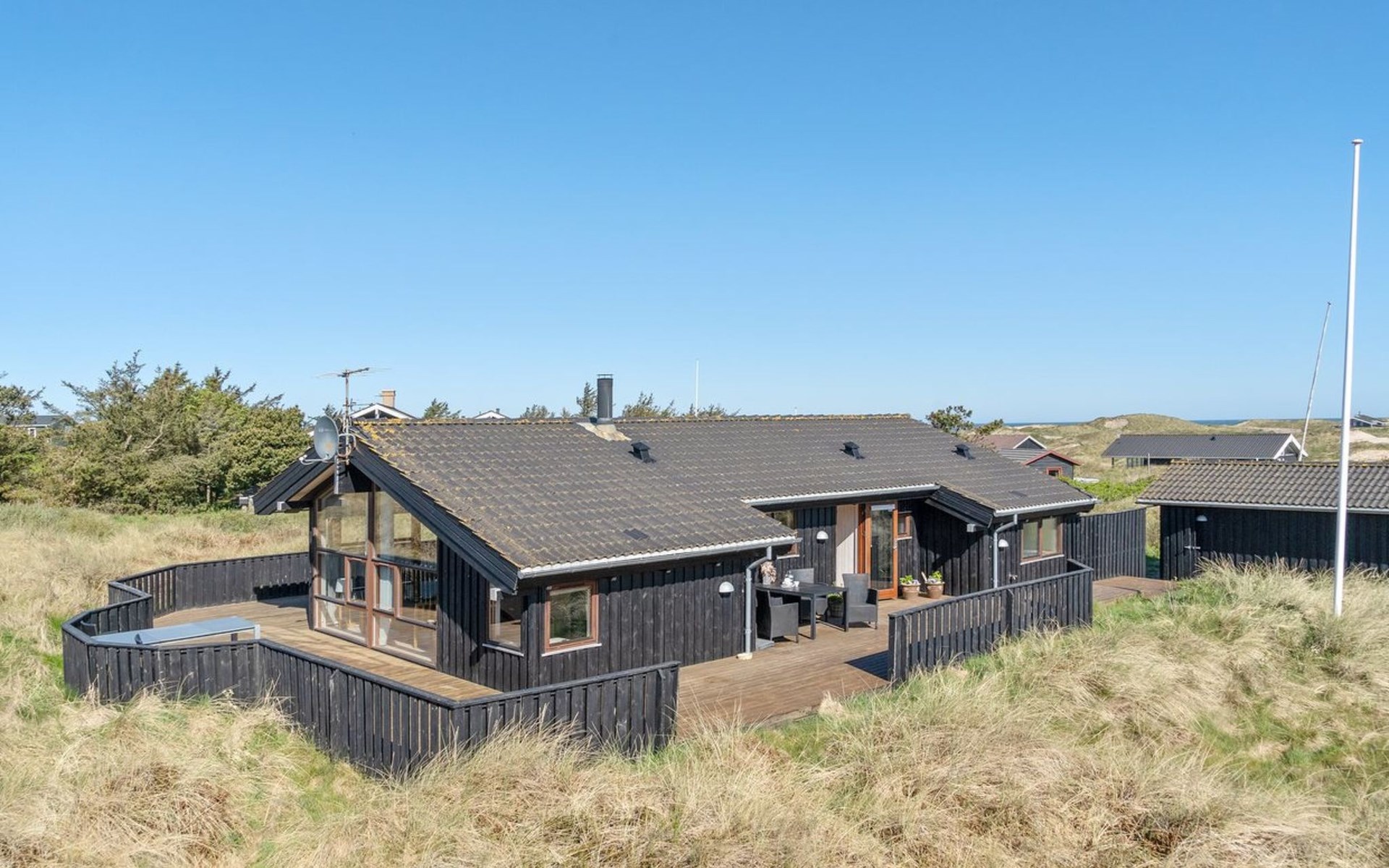 Einfamilienhaus, Baujahr 2004. 375 m vom Meer. Zur Alleinbenutzung: naturbelassenes Grundstück 2'843 m2. Terrasse (80 m2). Im Hause: Sauna, Waschmaschine, Wäschetrockner. Lebensmittelgeschäft 600 m. Der Besitzer akzeptiert keine Jugendgruppen.