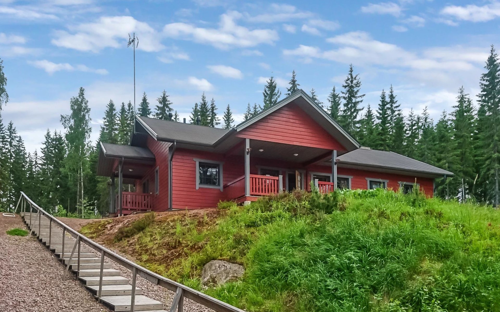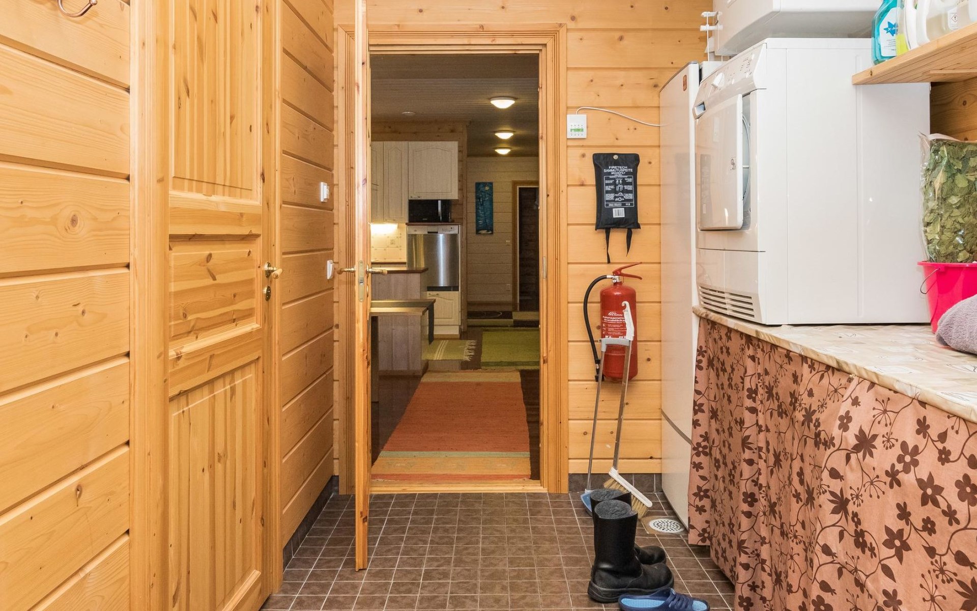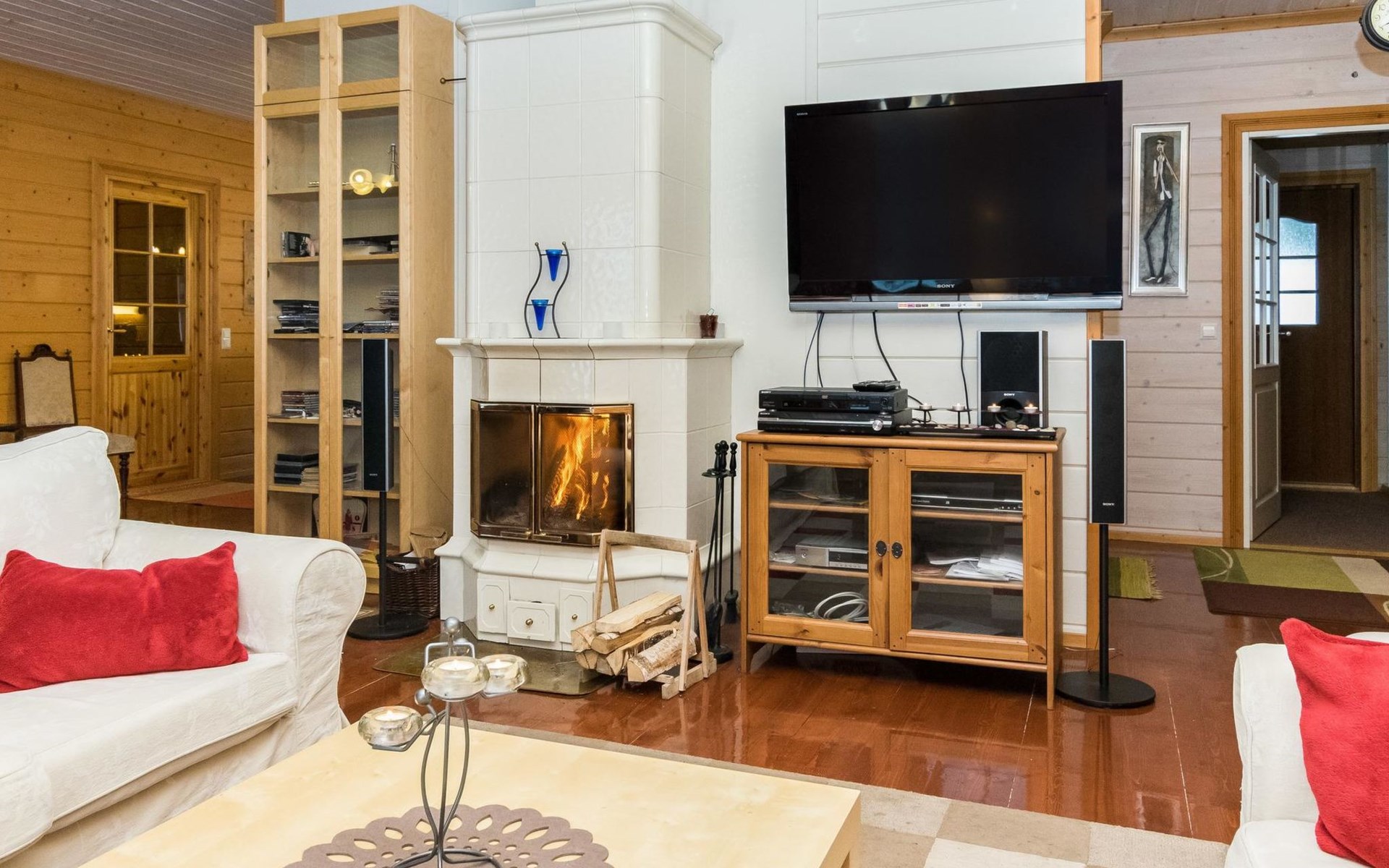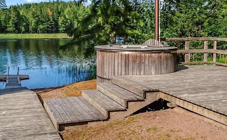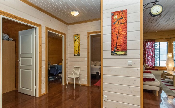29 km östlich von Kouvola, Vääntäjävirta 40 m, Sandstrand, eigenes Boot. Vääntäjävirta ist eine sehr lange Wasserstrasse, die sich mit dem See Immasenärvi verbindet. Holzhaus, Baujahr 2009, Küche, Esszimmer, Wohnzimmer, Schlafzimmer mit Doppelbett und TV, zweites Schlafzimmer mit 2 Betten, drittes Schlafzimmer mit 2 Betten, viertes Schlafzimmer mit 2 Betten. Hauswirtschaftsraum, Waschraum mit Toilette, Dusche und Bad, zusätzlich separate Toilette, überdachte Terrasse. Das Haus verfügt über eine mechanische Lüftung, Luftwärmepumpe und Internetverbindung. Im Hauptgebäude ist keine Sauna, aber es gibt eine separate, gut ausgestattete Sauna am Seeufer (25 m2) mit Waschraum, Wohnzimmer mit Kamin, Kochnische und zwei alternativen Betten. Bei der Ufersauna steht ein holzbeheizter Whirlpool kostenlos zur Verfügung. Überdachter Gasgrill. Es gibt die Möglichkeit auch Holz zum Grillen zu verwenden. Eine Lagerfeuerstelle steht neben dem überdachten Grill zur Verfügung. Baldachin für zwei Autos. Gut ausgestattetes und geräumiges Haus, das an einem natürlichen Hang, in einer schönen Landschaft, steht. Dieses Haus bietet Platz, für einen komfortablen Aufenthalt, von einer grösseren Familie. Tykkimäki Vergnügungspark 25 km, Aqua park 25 km, Bogeygolf 25 km, Mielakka Skigebiet 29 km, Kouvola 29 km, Lappeenranta 69 km, Lahti 90 km, Nuijama Grenzstation 93 km, Helsinki 165 km. Hinweis! Wochenendbuchungen nur bis 14:00 Uhr und ab Mitte Juni bis Mitte August (im A-Preis) nur bis 12:00 Uhr.