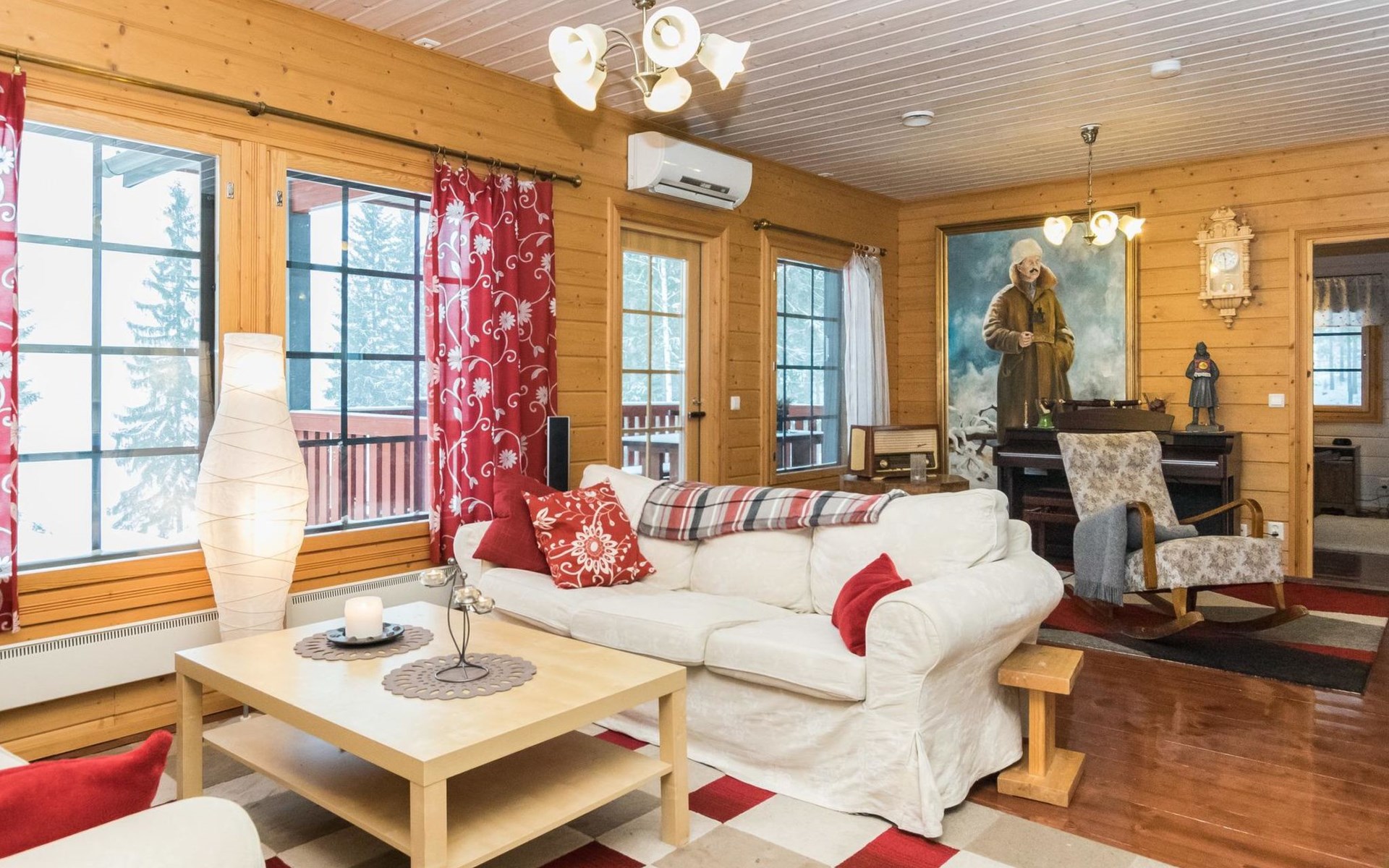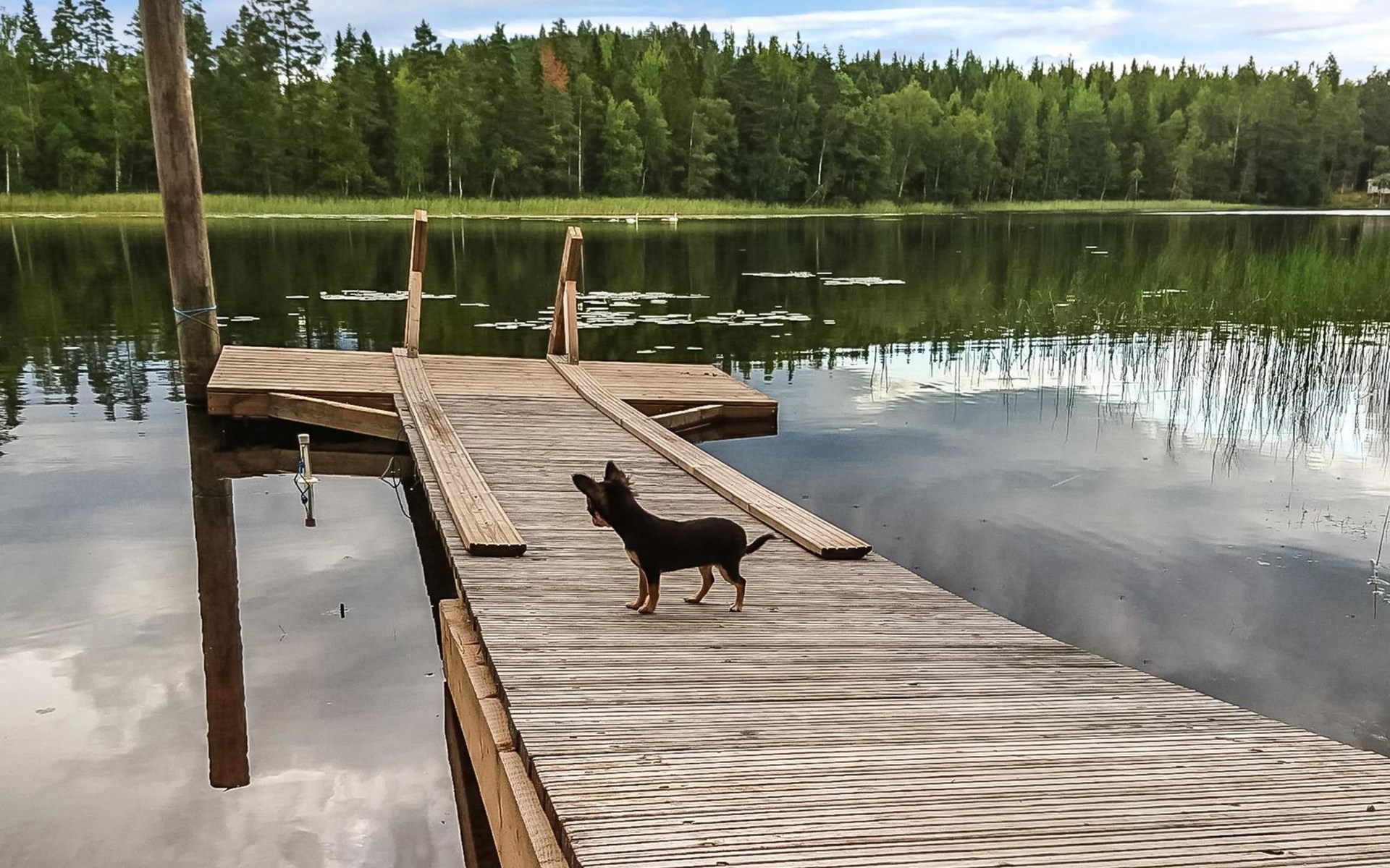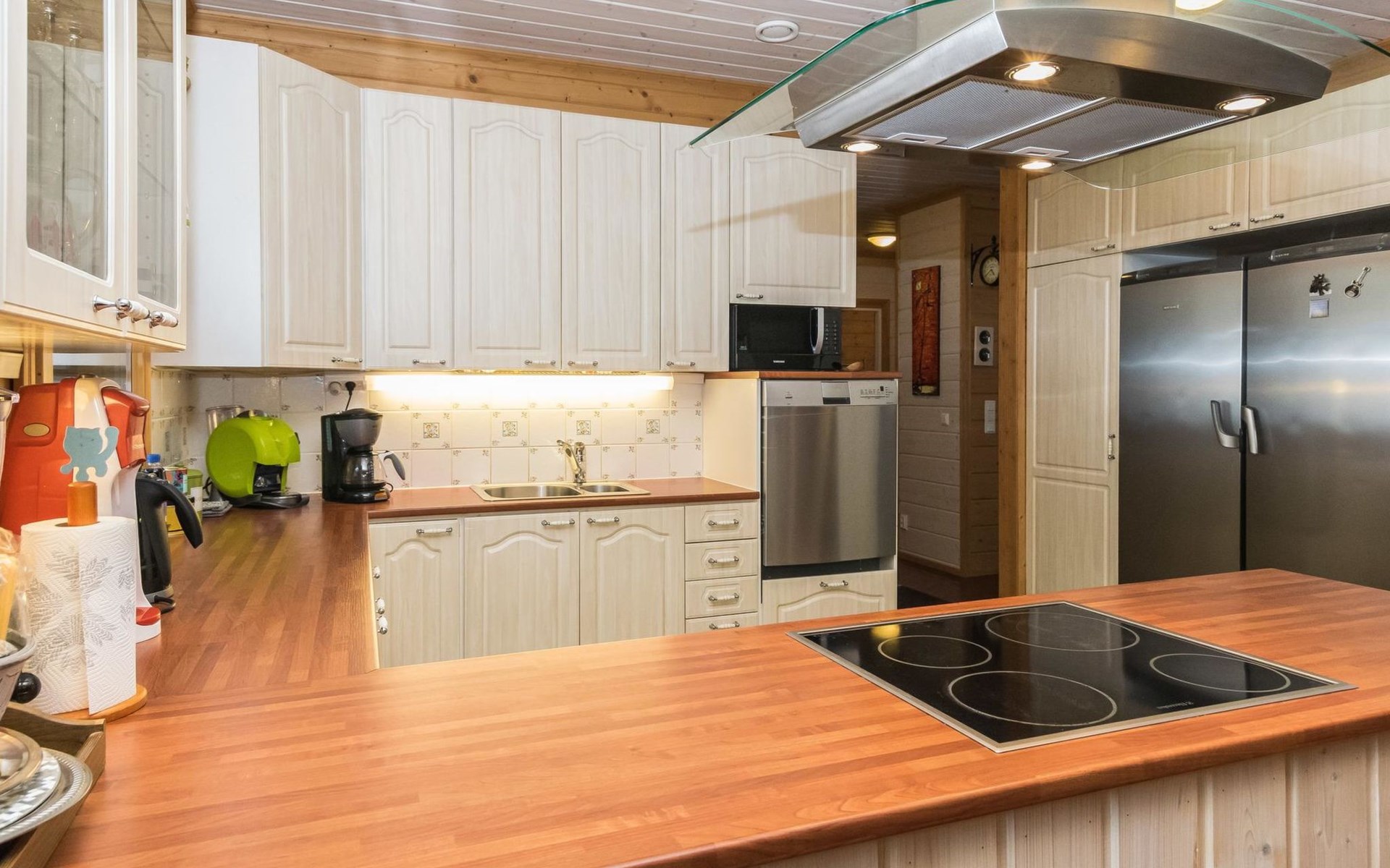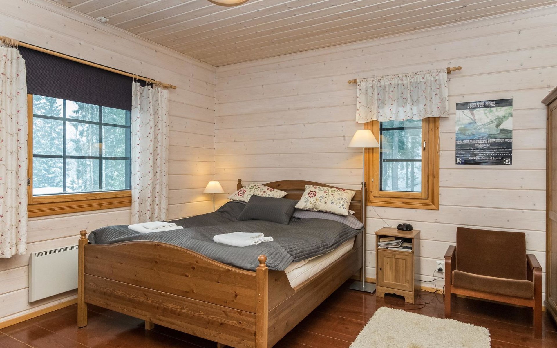 29 km östlich von Kouvola, Vääntäjävirta 40 m, Sandstrand, eigenes Boot. Vääntäjävirta ist eine sehr lange Wasserstrasse, die sich mit dem See Immasenärvi verbindet. Holzhaus, Baujahr 2009, Küche, Esszimmer, Wohnzimmer, Schlafzimmer mit Doppelbett und TV, zweites Schlafzimmer mit 2 Betten, drittes Schlafzimmer mit 2 Betten, viertes Schlafzimmer mit 2 Betten. Hauswirtschaftsraum, Waschraum mit Toilette, Dusche und Bad, zusätzlich separate Toilette, überdachte Terrasse. Das Haus verfügt über eine mechanische Lüftung, Luftwärmepumpe und Internetverbindung. Im Hauptgebäude ist keine Sauna, aber es gibt eine separate, gut ausgestattete Sauna am Seeufer (25 m2) mit Waschraum, Wohnzimmer mit Kamin, Kochnische und zwei alternativen Betten. Bei der Ufersauna steht ein holzbeheizter Whirlpool kostenlos zur Verfügung. Überdachter Gasgrill. Es gibt die Möglichkeit auch Holz zum Grillen zu verwenden. Eine Lagerfeuerstelle steht neben dem überdachten Grill zur Verfügung. Baldachin für zwei Autos. Gut ausgestattetes und geräumiges Haus, das an einem natürlichen Hang, in einer schönen Landschaft, steht. Dieses Haus bietet Platz, für einen komfortablen Aufenthalt, von einer grösseren Familie. Tykkimäki Vergnügungspark 25 km, Aqua park 25 km, Bogeygolf 25 km, Mielakka Skigebiet 29 km, Kouvola 29 km, Lappeenranta 69 km, Lahti 90 km, Nuijama Grenzstation 93 km, Helsinki 165 km. Hinweis! Wochenendbuchungen nur bis 14:00 Uhr und ab Mitte Juni bis Mitte August (im A-Preis) nur bis 12:00 Uhr.