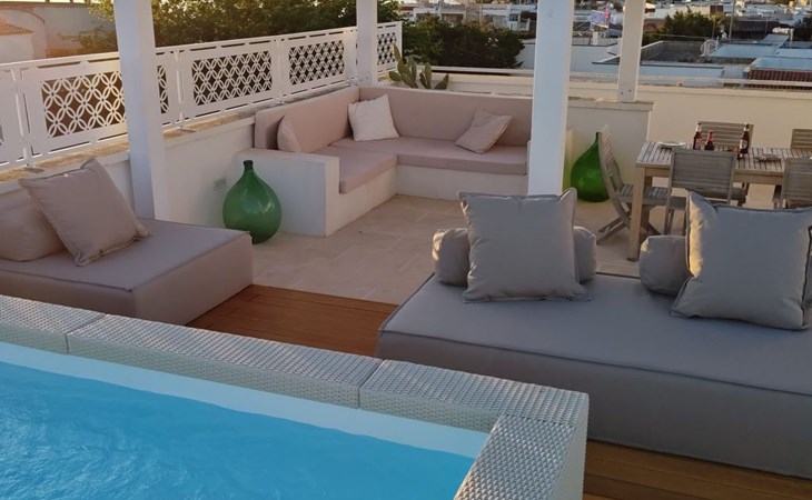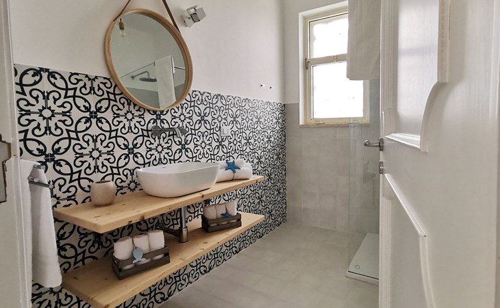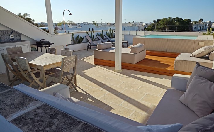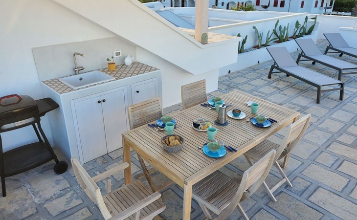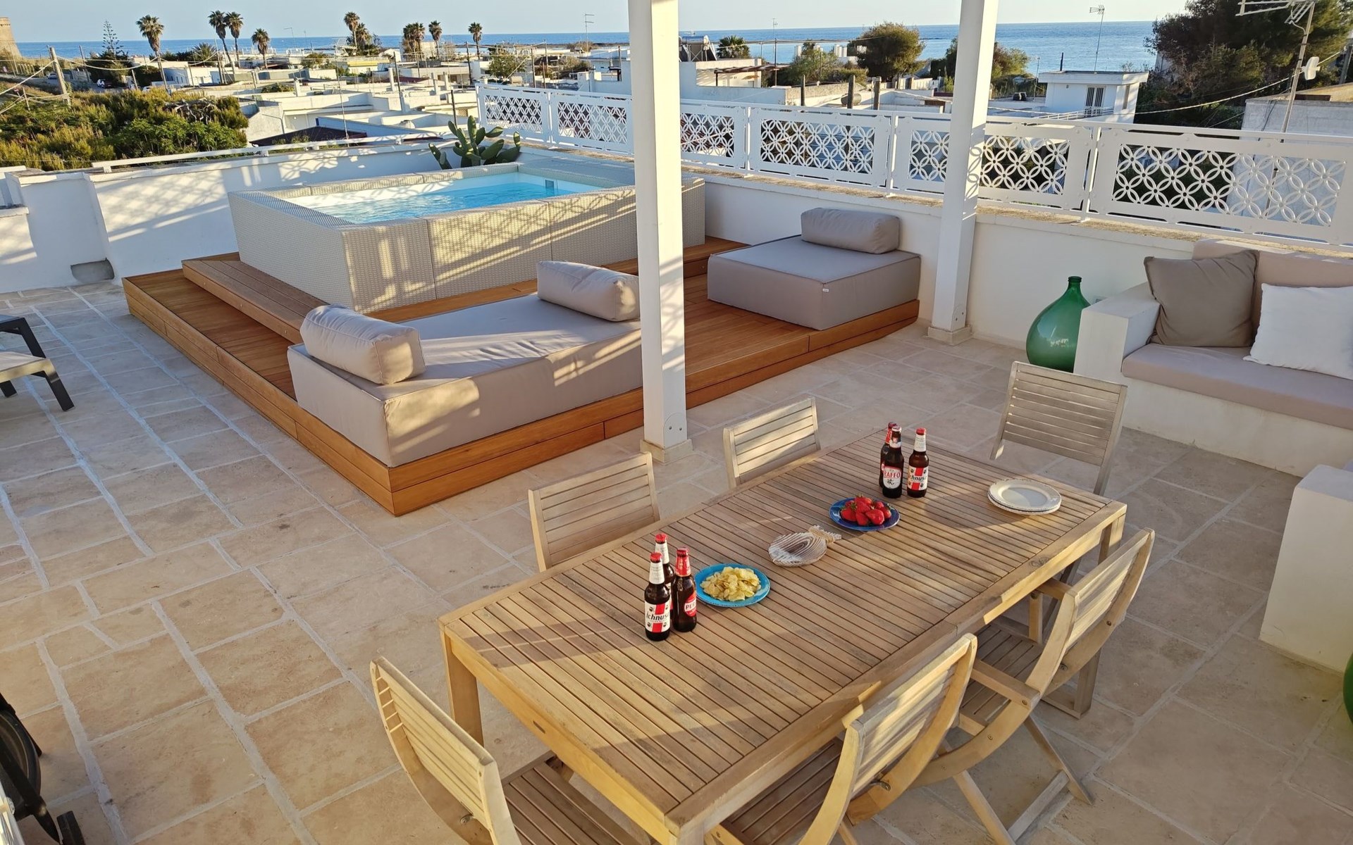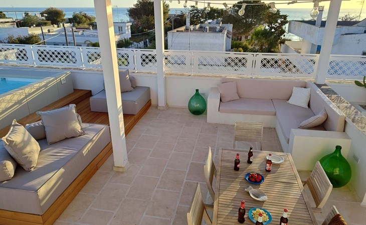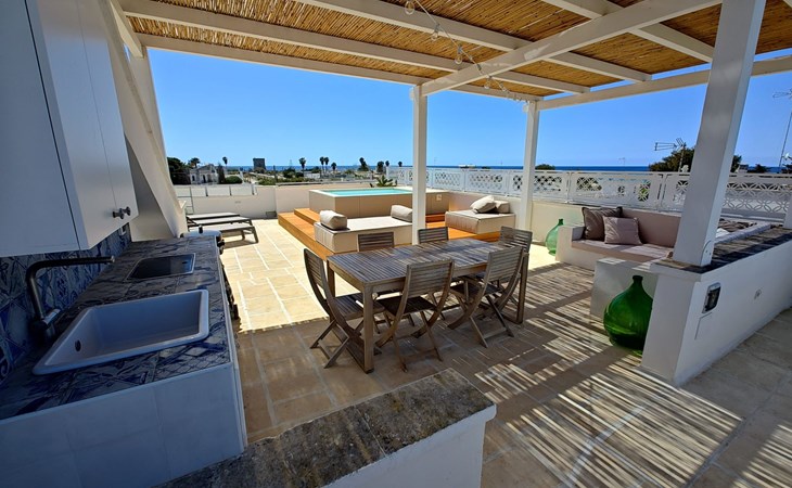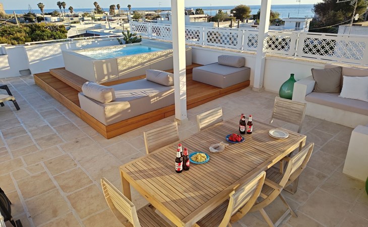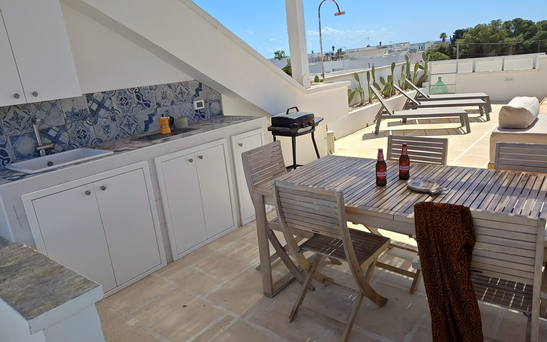 Im Außenbereich verfügt die Wohnung über eine herrliche Terrasse und einen Balkon, die zum Frühstücken im Freien oder einfach zum Entspannen einladen. Nicht weniger reizvoll ist die Dachterrasse, die dazu einlädt, ruhige Momente unter dem apulischen Himmel zu genießen. Der Zugang zur Wohnung wird durch eine Rampe erleichtert, so dass sie auch für Personen mit Mobilitätsproblemen geeignet ist.
