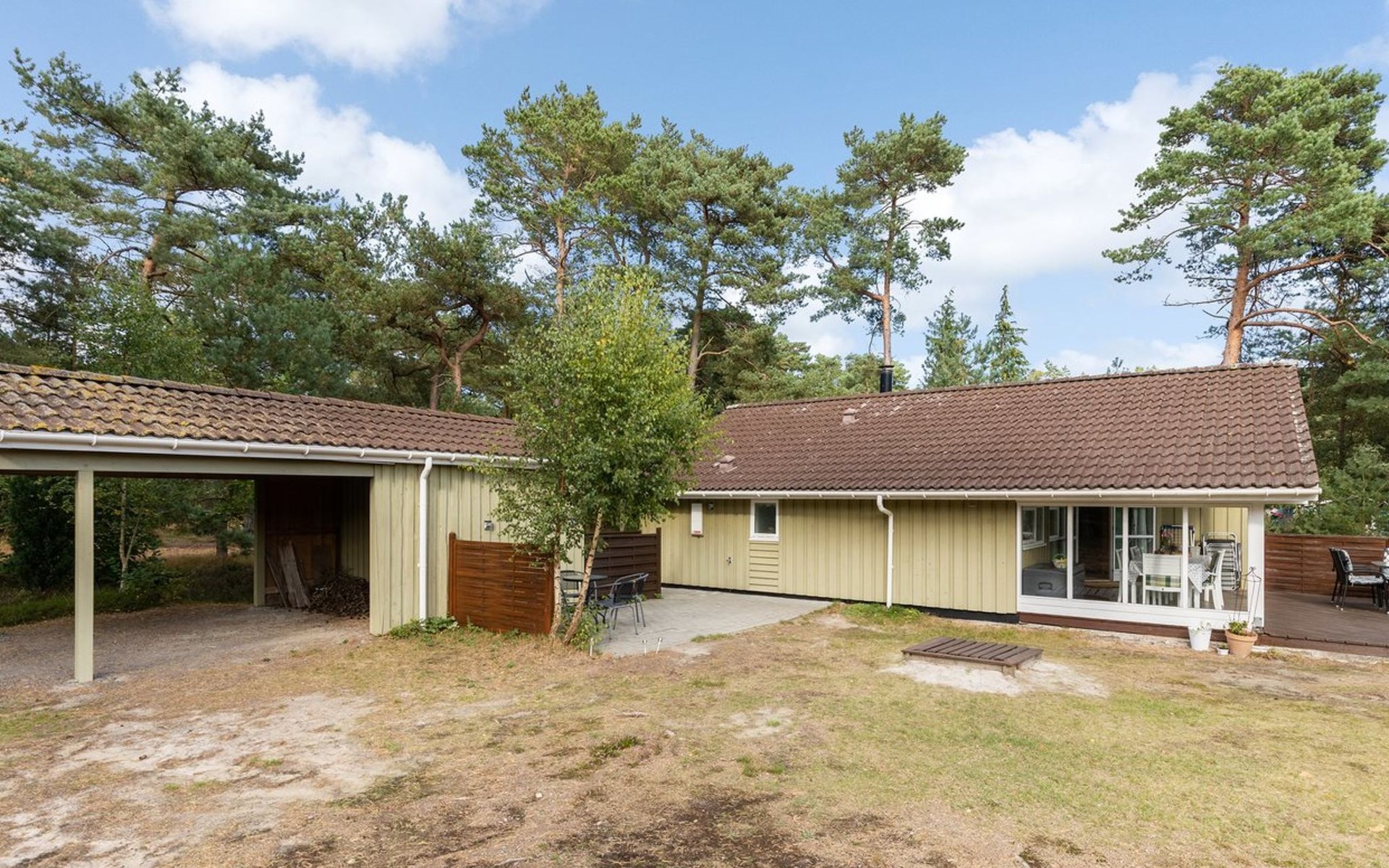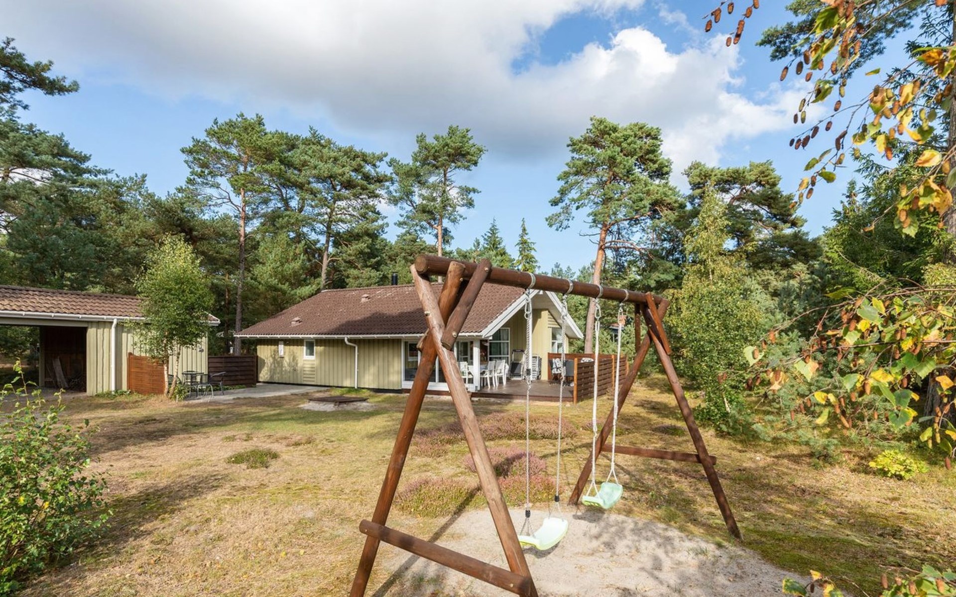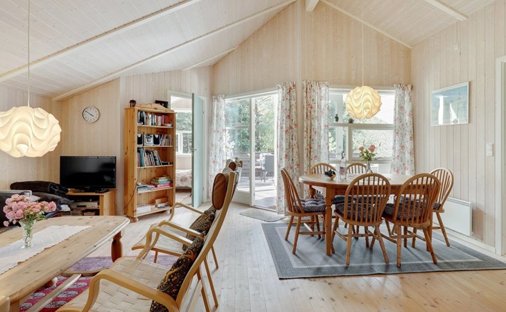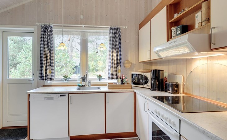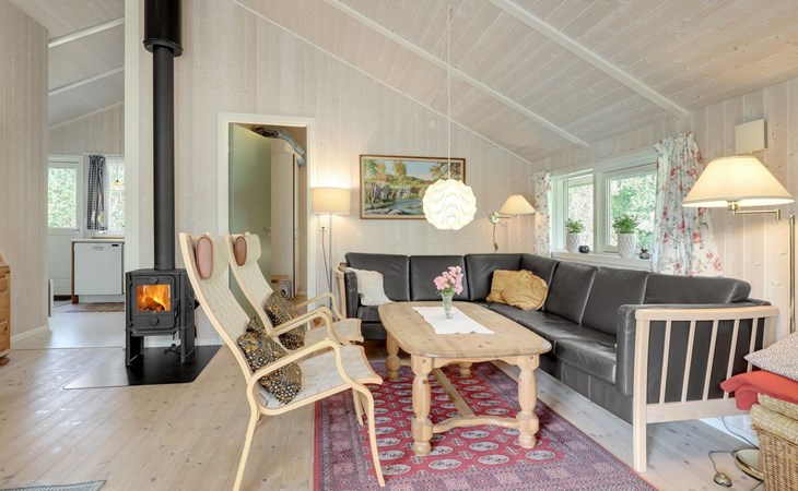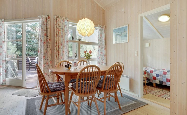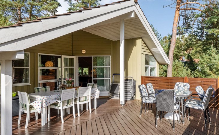 Einfamilienhaus, Baujahr 2001. 300 m vom Meer. Zur Alleinbenutzung: naturbelassenes Grundstück 1'460 m2. Terrasse (40 m2), Grill, Kinderspielplatz (Schaukel). Im Hause: Waschmaschine. Parkplatz beim Haus. Carport. Lebensmittelgeschäft 1 km. Golfplatz 8.5 km. Der Besitzer akzeptiert keine Jugendgruppen.