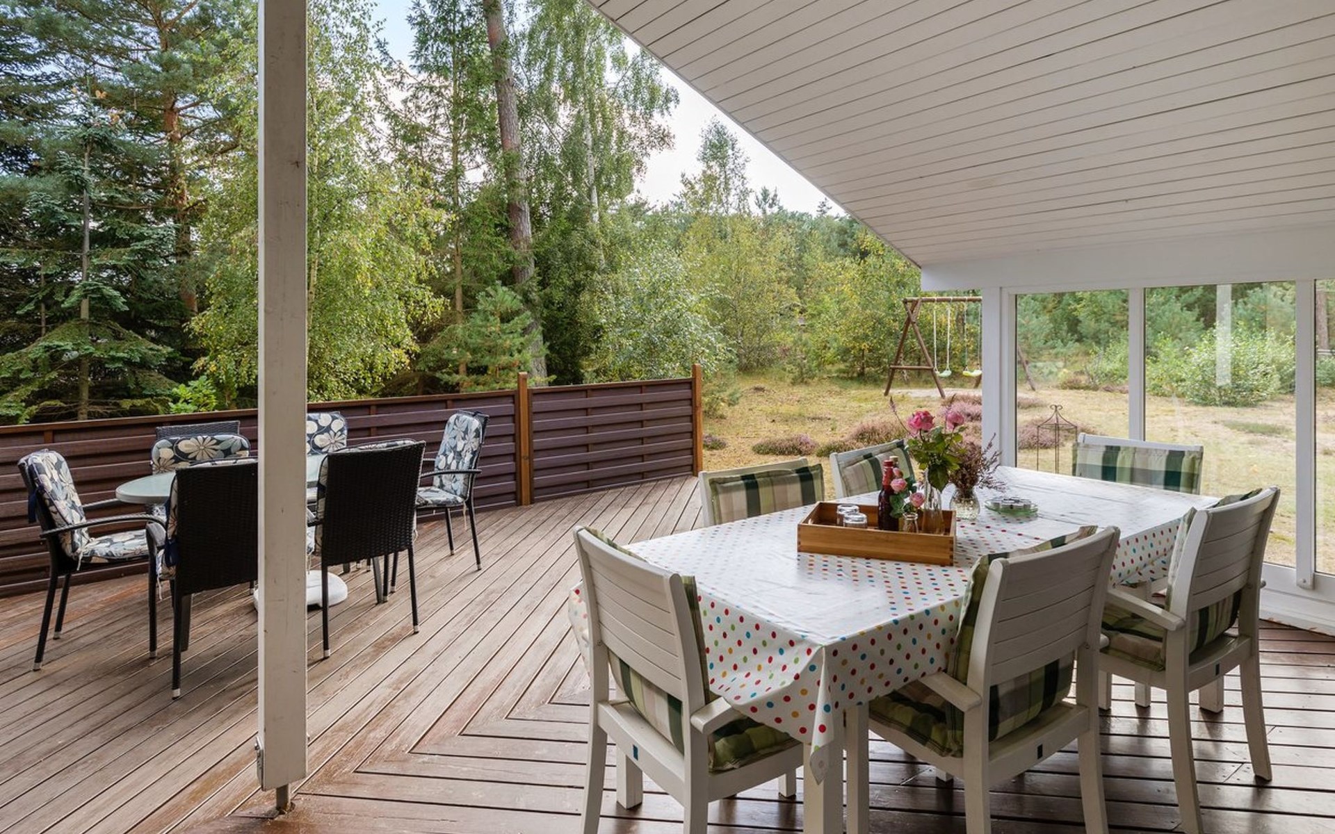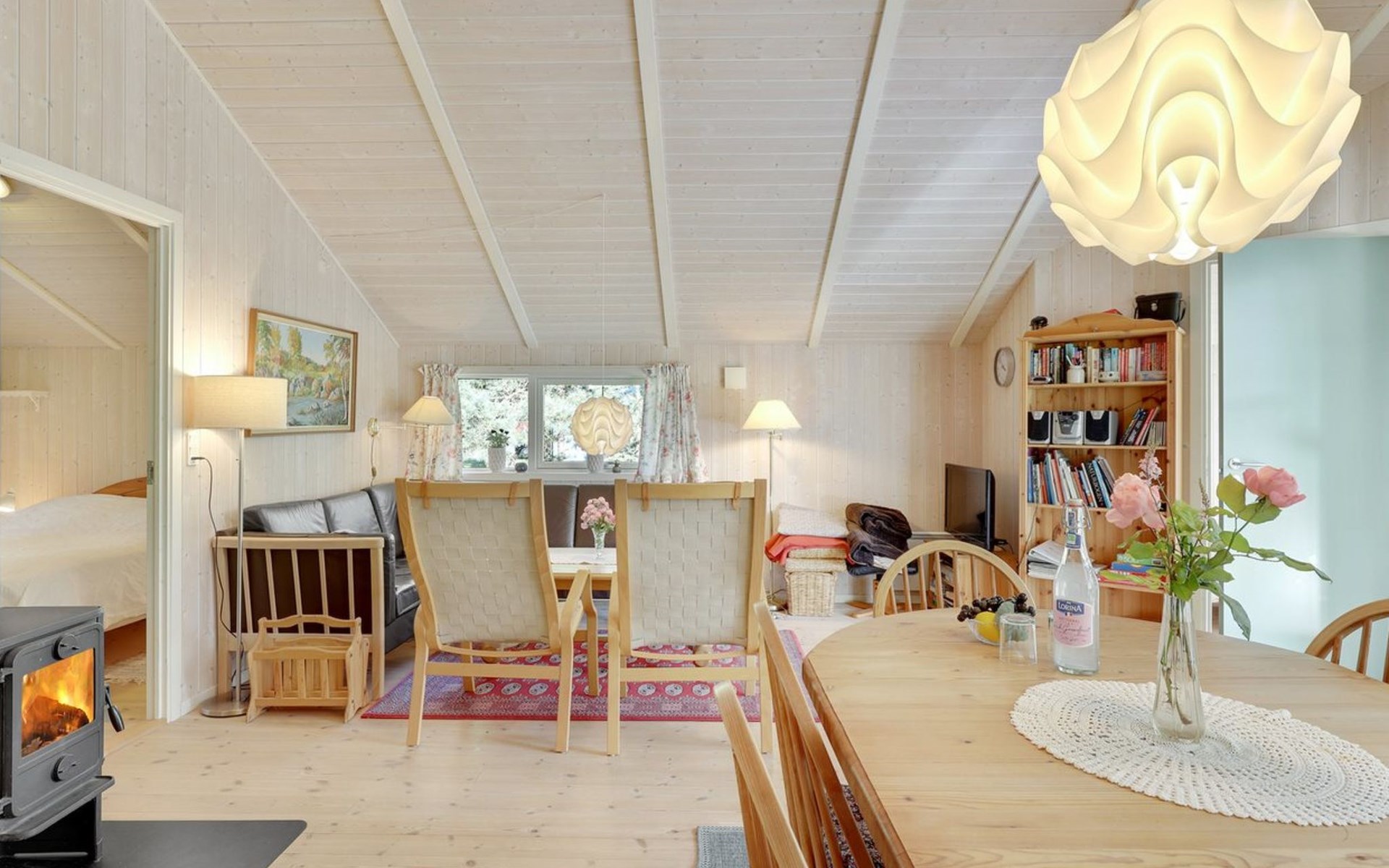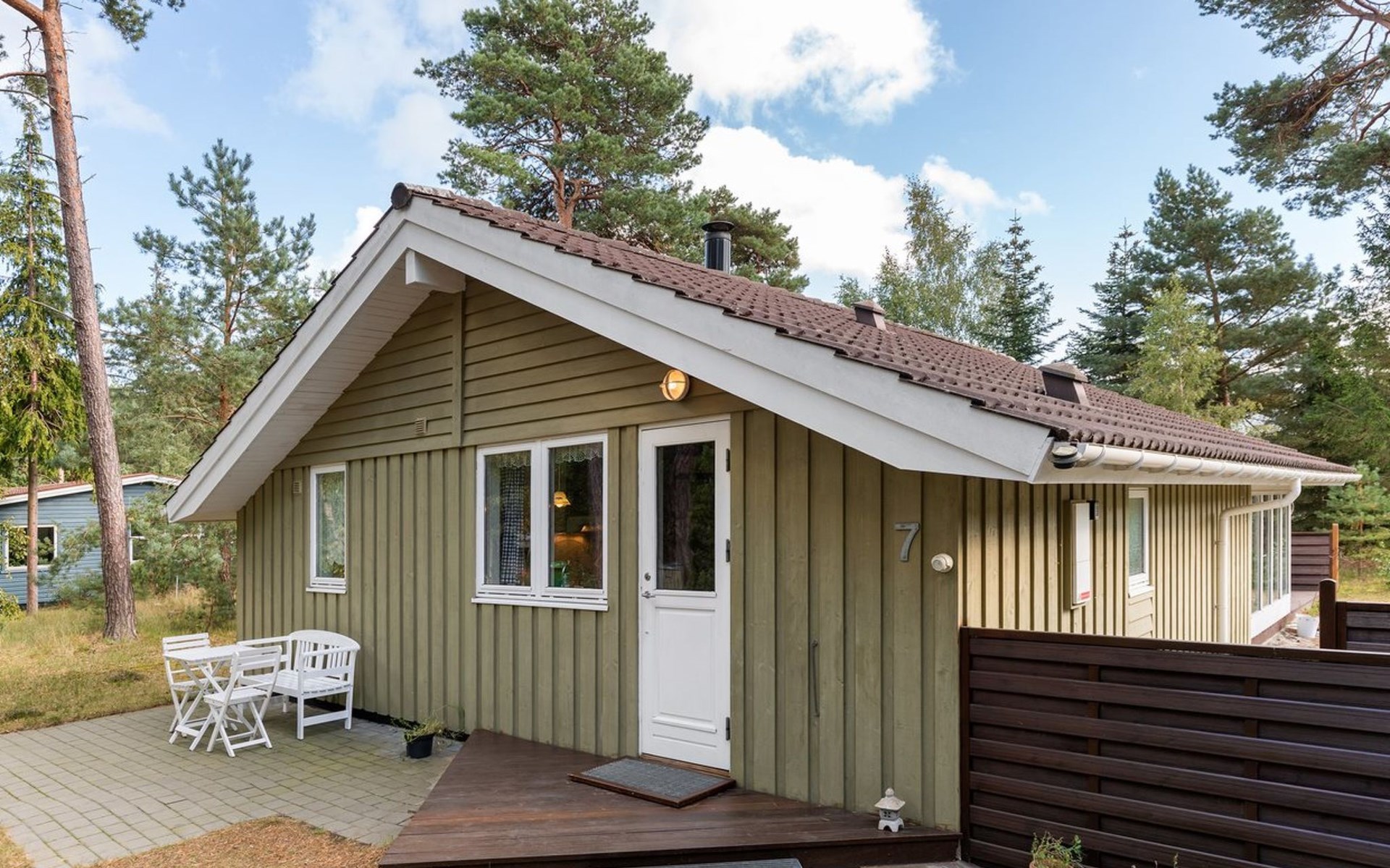Einfamilienhaus, Baujahr 2001. 300 m vom Meer. Zur Alleinbenutzung: naturbelassenes Grundstück 1'460 m2. Terrasse (40 m2), Grill, Kinderspielplatz (Schaukel). Im Hause: Waschmaschine. Parkplatz beim Haus. Carport. Lebensmittelgeschäft 1 km. Golfplatz 8.5 km. Der Besitzer akzeptiert keine Jugendgruppen.