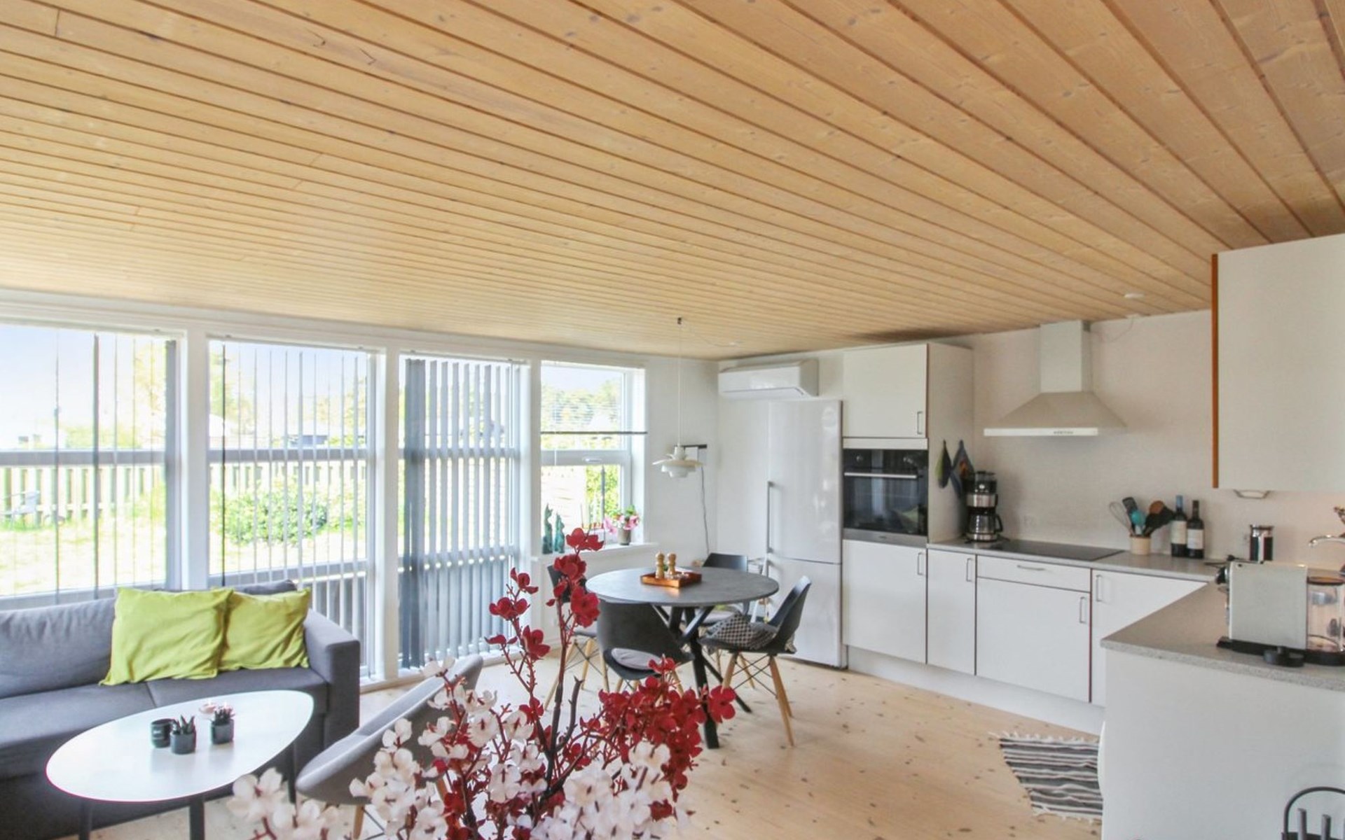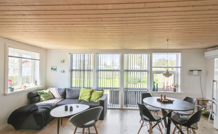 Einfamilienhaus, Baujahr 2009. 350 m vom Meer. Zur Mitbenutzung: Garten. Zur Alleinbenutzung: naturbelassenes Grundstück 350 m2, Garten (eingezäunt). Terrasse (42 m2). Im Hause: Waschmaschine. Parkplatz beim Haus. Lebensmittelgeschäft 500 m. Golfplatz 6.5 km. Der Besitzer akzeptiert keine Jugendgruppen.