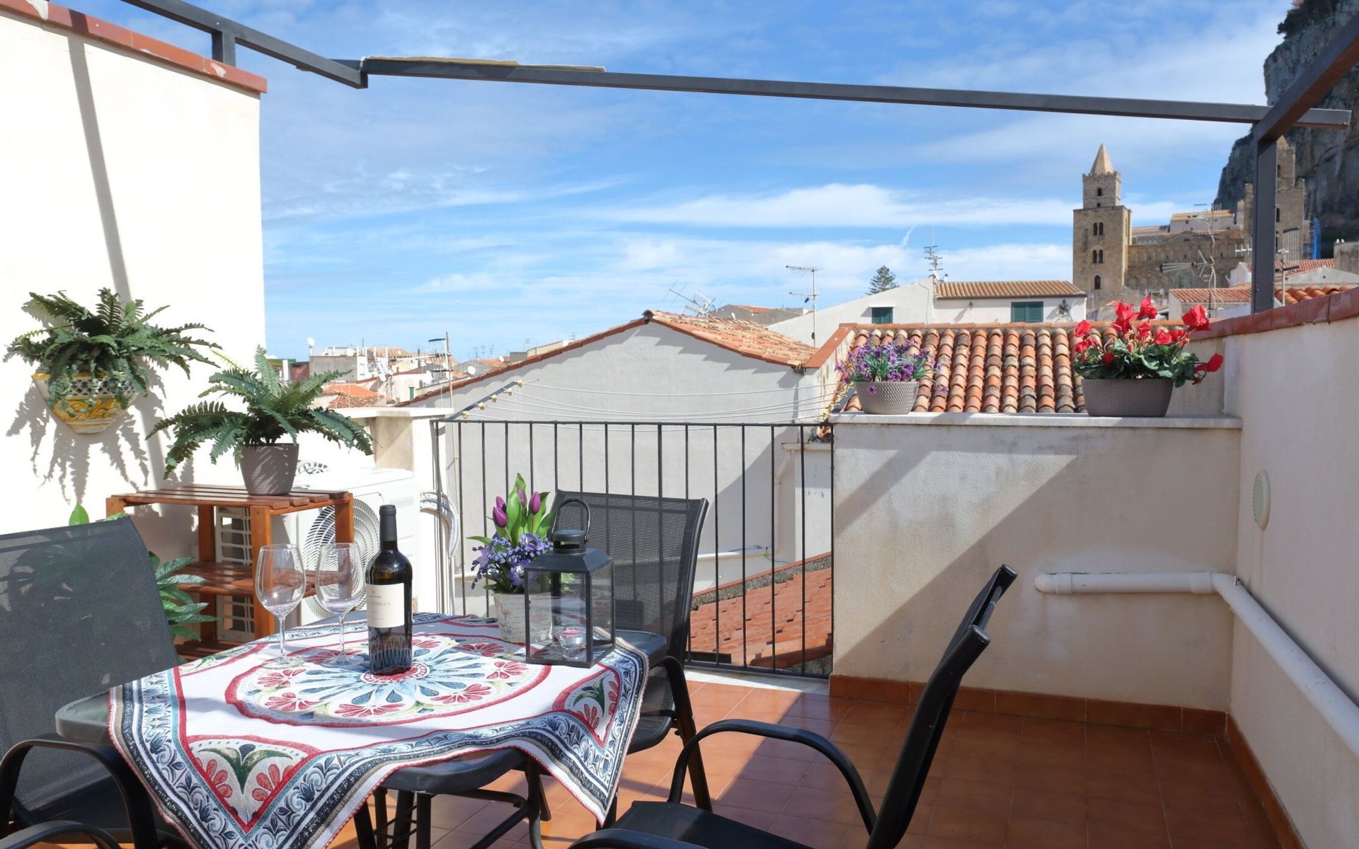Das Highlight der Terrazza del Cortile ist zweifelsohne ihr Außenbereich: eine Dachterrasse, die über eine Innentreppe erreichbar ist. Diese Dachterrasse, die Ihnen exklusiv zur Verfügung steht, ist der ideale Ort, um die Aussicht zu bewundern, einen Morgenkaffee zu trinken oder ein Abendessen unter dem Sternenhimmel zu genießen. Der zusätzliche Balkon bietet einen weiteren Platz im Freien, um sich zu entspannen und die einzigartige Atmosphäre von Cefalù aufzusaugen.