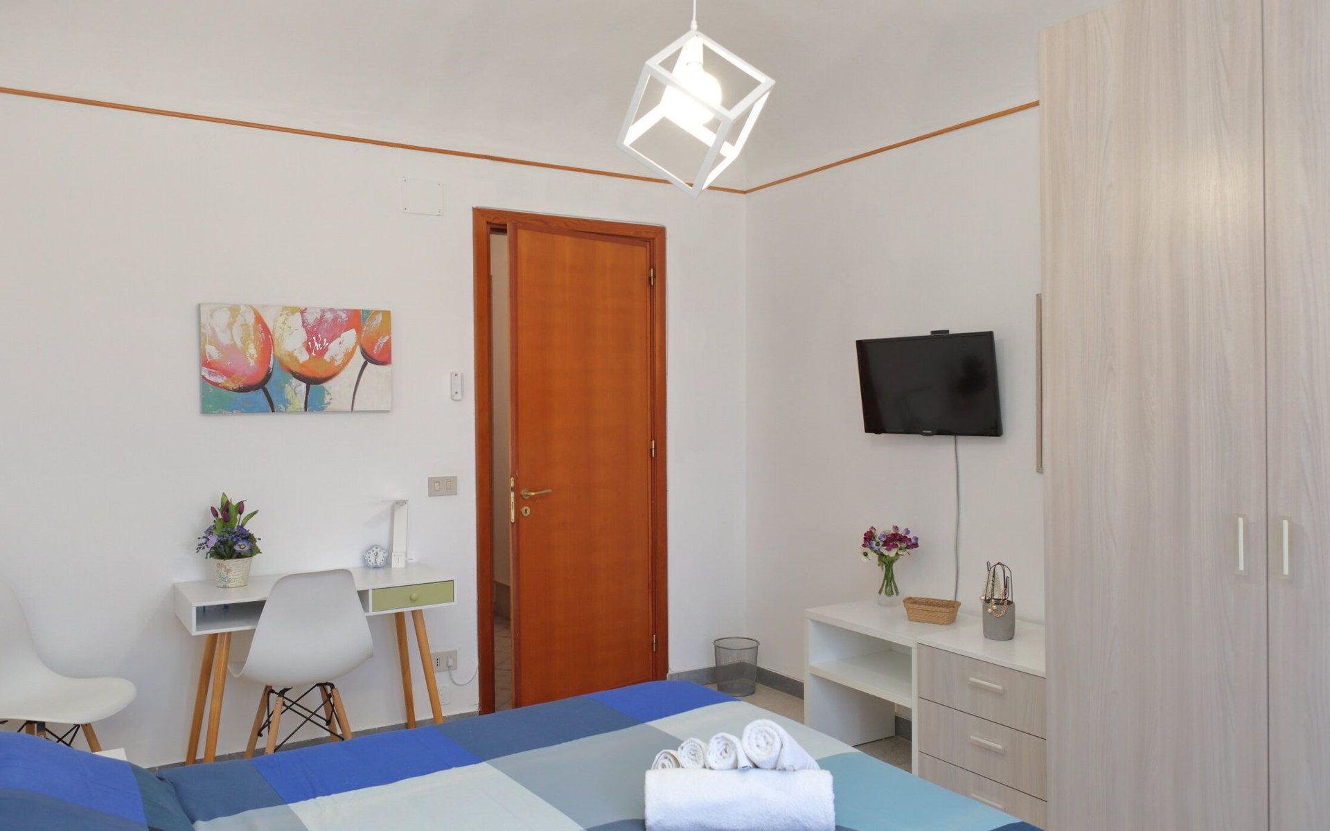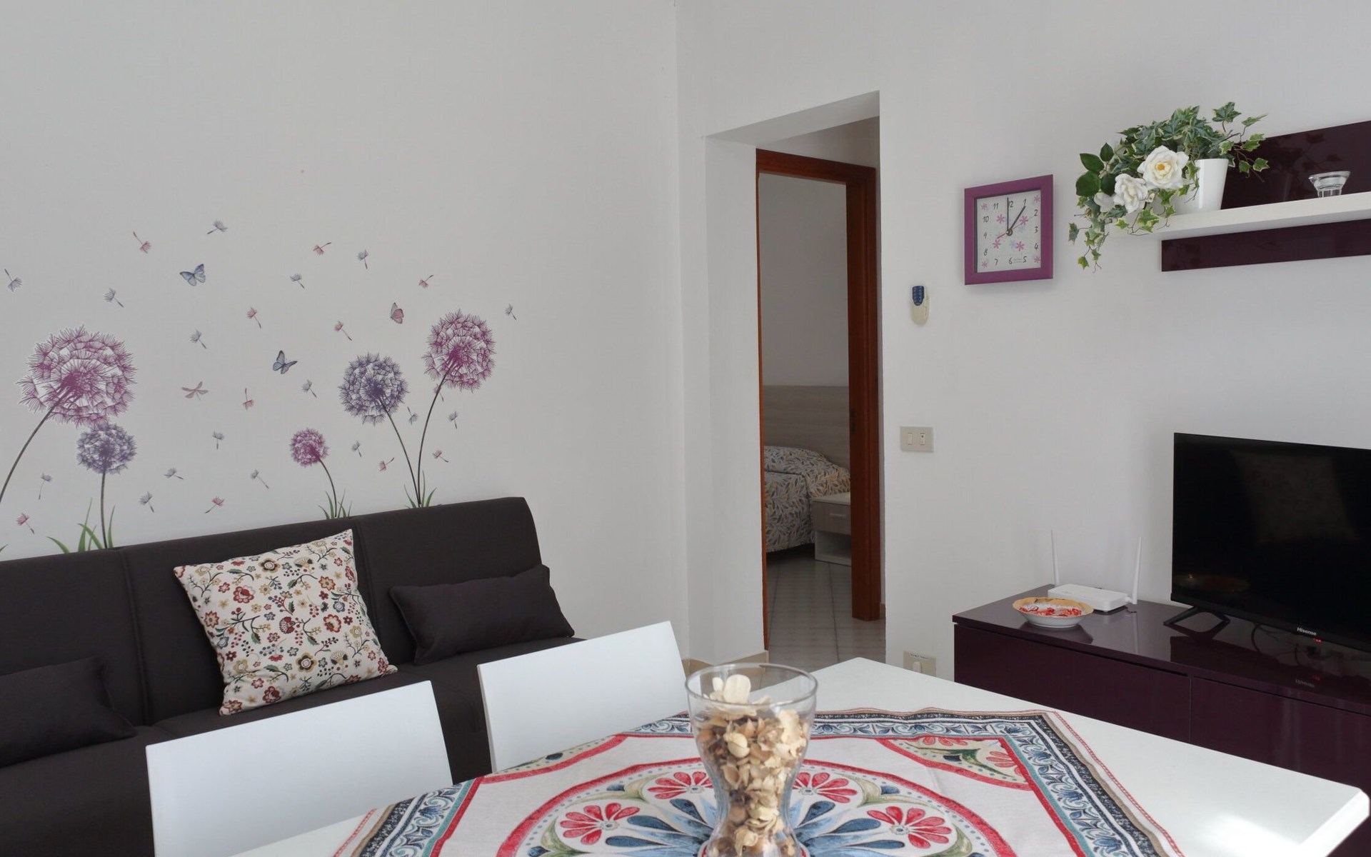 Die Einrichtung der Wohnung ist so konzipiert, dass sie ein Maximum an Komfort und Bequemlichkeit bietet: von der Klimaanlage in jedem Zimmer bis hin zur Waschmaschine, die Ihnen zur alleinigen Nutzung zur Verfügung steht. Jedes Detail ist darauf ausgerichtet, Ihren Aufenthalt so angenehm wie möglich zu gestalten. Mit drei Schlafzimmern, die bis zu 6 Personen beherbergen können, und zwei Badezimmern, von denen eines mit einer Dusche ausgestattet ist, verfügen Sie über den nötigen Platz und Komfort, um sich nach einem Tag am Strand oder der Erkundung der örtlichen Sehenswürdigkeiten zu erholen und zu entspannen.