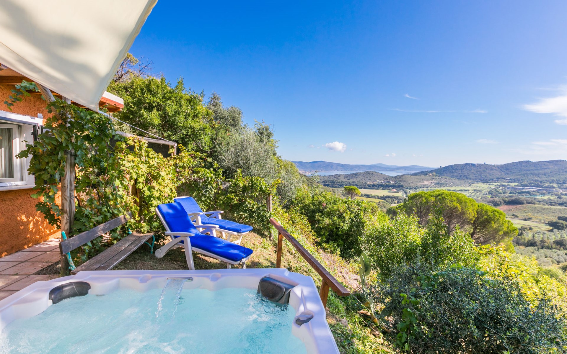 Schönes, gemütliches Haus "La Tordara", renoviert im Jahre 2022, umgeben von Bäumen. Mietobjekt bestehend aus Haupt- und Nebengebäude, 5 km vom Zentrum von Orbetello, 8 km vom Zentrum von Porto Santo Stefano, alleinstehende, erhöhte Lage am Hang, 5 km vom Meer, 5 km vom Strand, im Wald. Zur Alleinbenutzung: Grundstück 5'000 m2, terrassierter Garten Blumen und Bäumen. Sprudelbad, Grill. Im Hause: Tischfussball. Schmale Zufahrt. Treppenweg (20 Stufen) bis zum Haus. Parkplatz (für 3 Autos, überdacht) auf dem Grundstück. E-Ladestation. Einkaufsgeschäft 5 km, Supermarkt 8 km, Restaurant 1.5 km, Fähre 6 km, Sandstrand "Giannella / Feniglia" 5 km. Golfplatz (18 Loch) 1 km, Reitstall 11 km, Wanderwege ab Haus 20 m, Radweg. Nahe gelegene Sehenswürdigkeiten: Porto Ercole 7 km, Talamone 26 km, Capalbio 28 km, Giardino dei Tarocchi 30 km. Der Besitzer akzeptiert keine Jugendgruppen. Schöne Aussicht auf die Lagune von Obetello und Polofelder. Gemüsegarten zur Verfügung der Gäste.