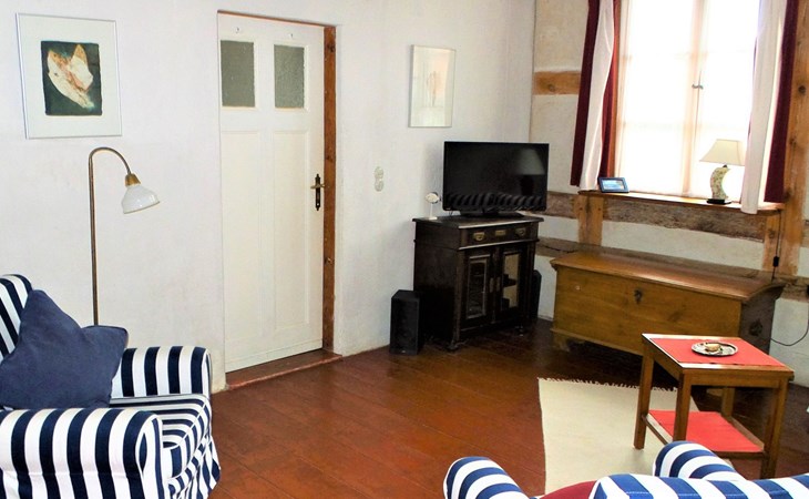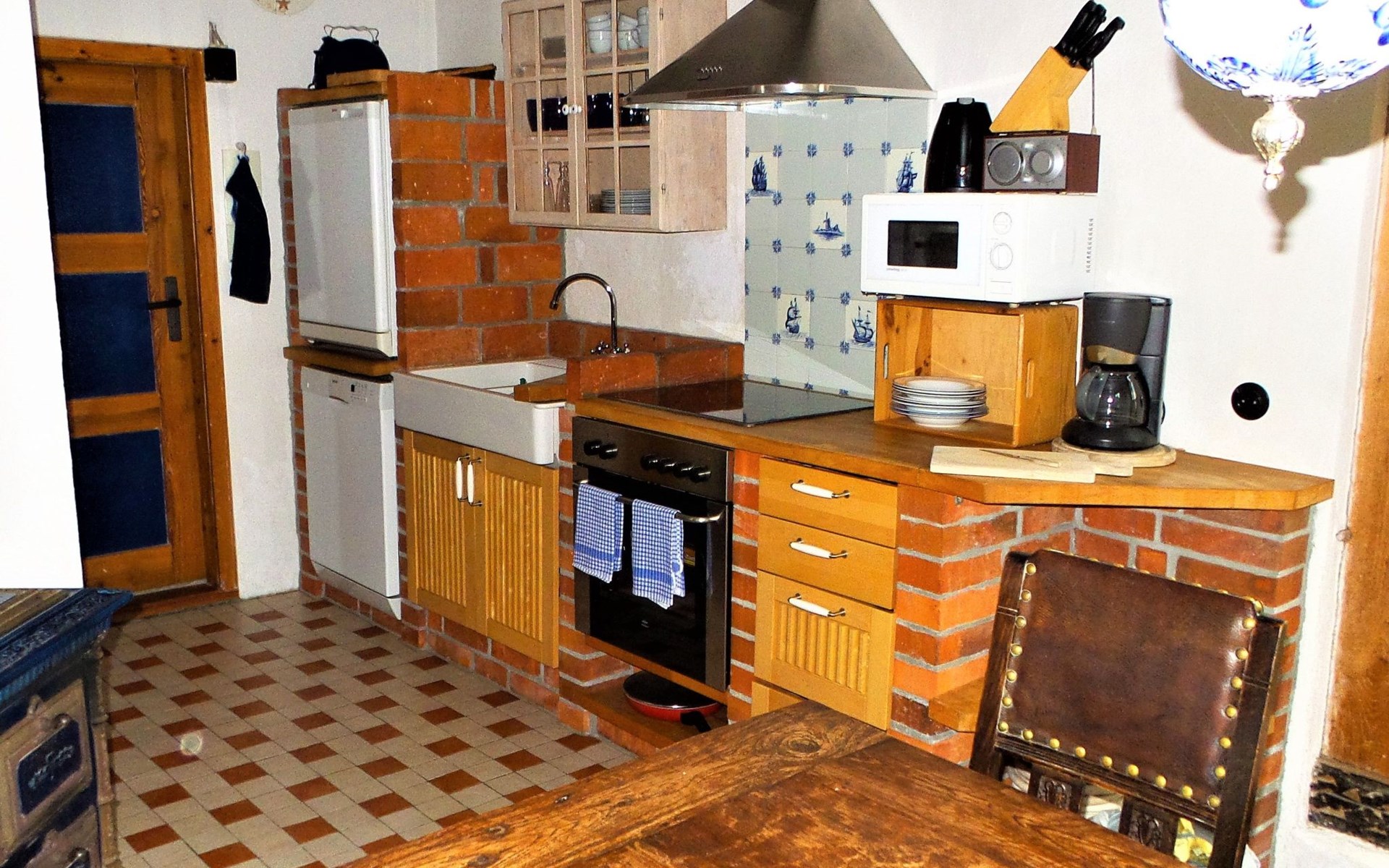 Das Haus wurde restauriert mit Lehm-/Kalkdecken und -wänden, Einfachverglasungen und Türen wurden erhalten und ergänzt in den historischen Proportionen. Nach der Restaurierung 2005 war nicht Schluss, sondern wenn das Haus nicht vermietet ist, wir also keine Gäste stören können, führen wir ganzjährig Renovierungen und Reparaturen durch. Das Haus verfügt über Elektroheizung in allen Räumen sowie historische, aber funktionierende, effektive Öfen. Auf Wunsch können Sie für einen pauschalen Selbstkostenbetrag Holz/Kohlen aus unserem Schuppen verheizen. Sollten Sie bei kaltem Wetter anreisen, haben wir in jedem Fall für Sie ein bis drei Tagen vorgeheizt. Die Anlaufphase entfällt für Sie. Im Winter empfehlen wir unseren Gästen den Einsatz der Öfen. Wir geben Ihnen bei der Schlüsselübergabe eine Erklärung, so können Sie auch ohne Vorerfahrung die Öfen bedienen. In der Übergangszeit empfehlen wir, elektrisch zu heizen.