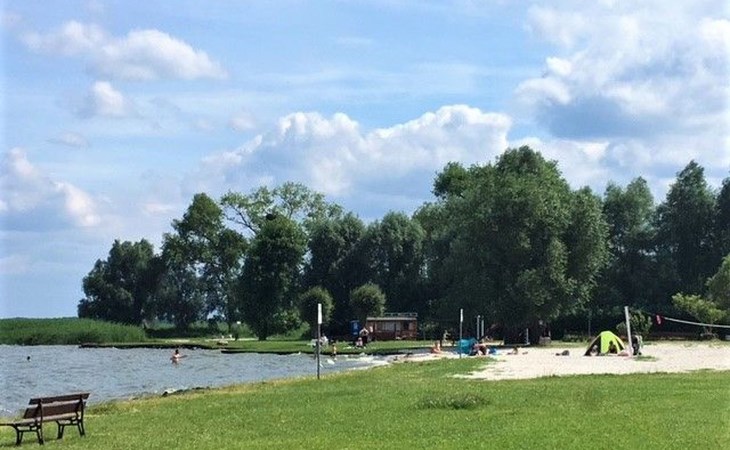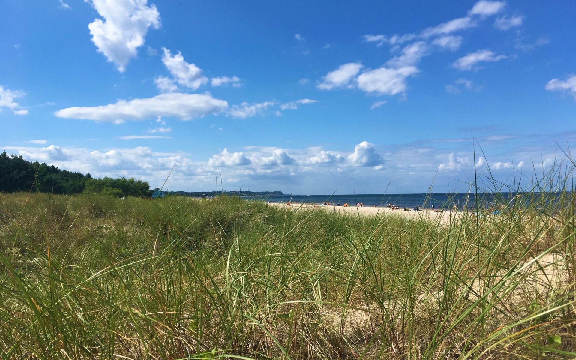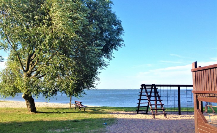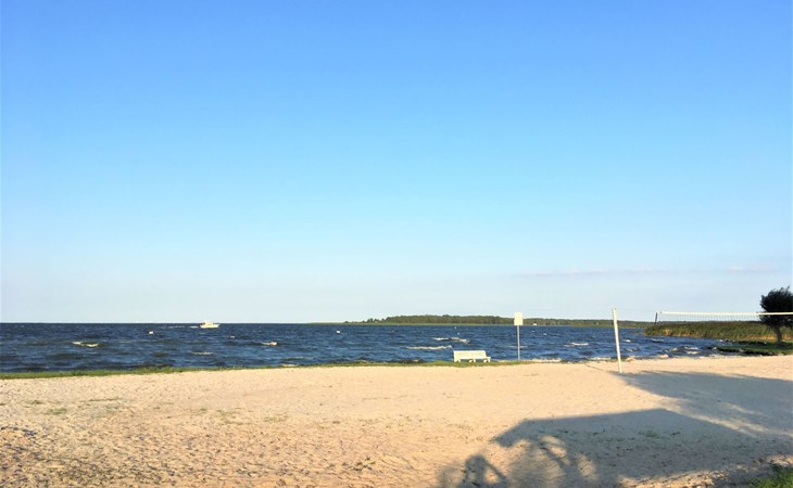Godewind ist nur ca. 50 m vom Badestrand entfernt. Das ist ein kleiner Dorfstrand nicht riesig aber auch nie überfüllt. Zwei weitere Badestellen im/am Ort. Zwei weitere sehr schöne Strände 20 Minuten mit dem Rad, sehr gut durch traumhafte Küstenlandschaft fahrbar. Alle Strände der Region werden in der Saison von den Gemeinden gepflegt und die Wasserqualität von den Landesbehörden überwacht. Alles ist klein und überschaubar, die Region setzt, im Gegensatz zur Ostseeküste, auf sanften Tourismus. Staus, Parkplatzmangel, hohe Parkgebühren und Kurtaxen wie an der Ostseeküste gibt es an der Haff-Küste nicht.
