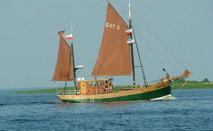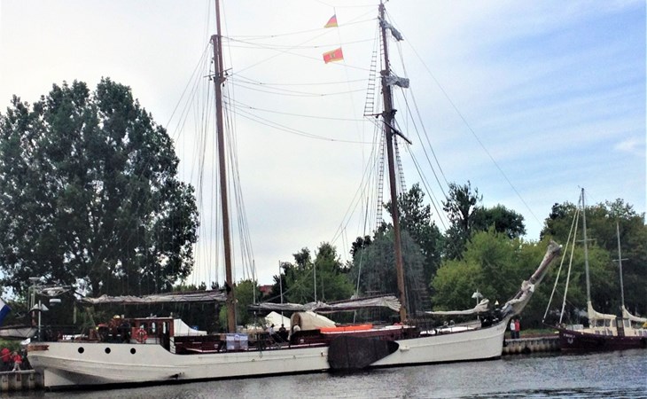 Ein zwei-mastiges hölzernes Fischerboot wurde für Ausflugsfahrten hergerichtet und startet von seinem Altwarper Heimathafen zu Ausflügen übers Haff. Weitere Schiffsfahrten ab Seebad-Ueckermünde nach Swinemünde, Stettin, ...