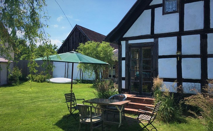 Ein Nichtraucherhaus, in einem 650 qm großen Garten, nur ca. 50 Meter vom Badestrand entfernt. Dieser kleine frühere Luft- und Badekurort, 750 Jahre alt, liegt auf einer Halbinsel des Stettiner Haffs, auf der deutschen Seite und ist umgeben von viel Wasser, unzähligen Naturstränden und seinen bekannten, großen Binnendünen, unweit (13 km) vom Seebad Ueckermünde und ca. 13 Kilometer Luftlinie von der Ostsee entfernt.