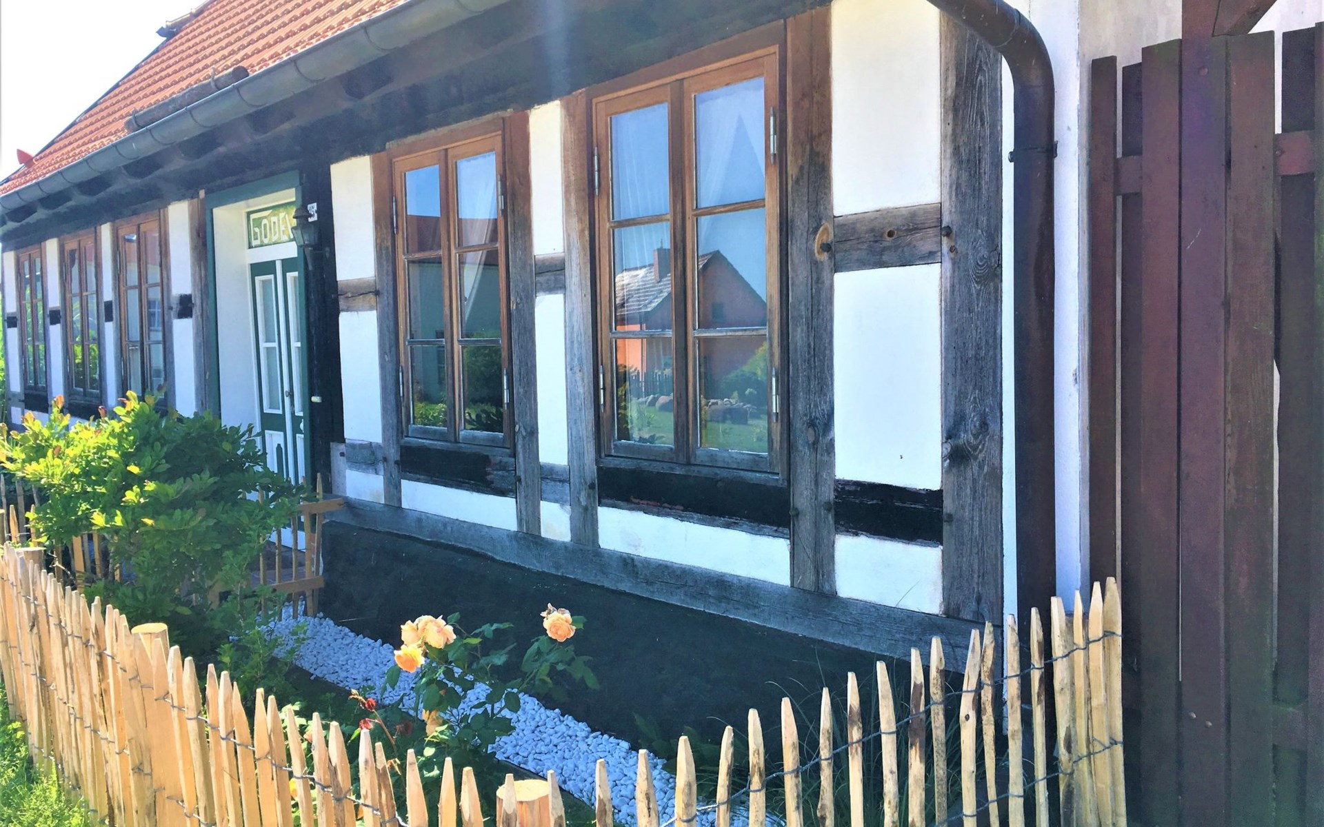 Häuser mit Reetdach oder Schilfdach, wie es hier genannt wird, sind stilprägend für die Haff-Küste. Jedoch war Godewind nie Reet-gedeckt, daher haben wir bei der größeren Restaurierung 2005 die historischen Ziegel erhalten und ergänzt. Ein Schild der Gemeinde vor dem Haus weist darauf hin, dass es in seiner langen Geschichte auch Kapitänshaus war. Jedoch ist es in seinem Baustil ein Fischerhaus.