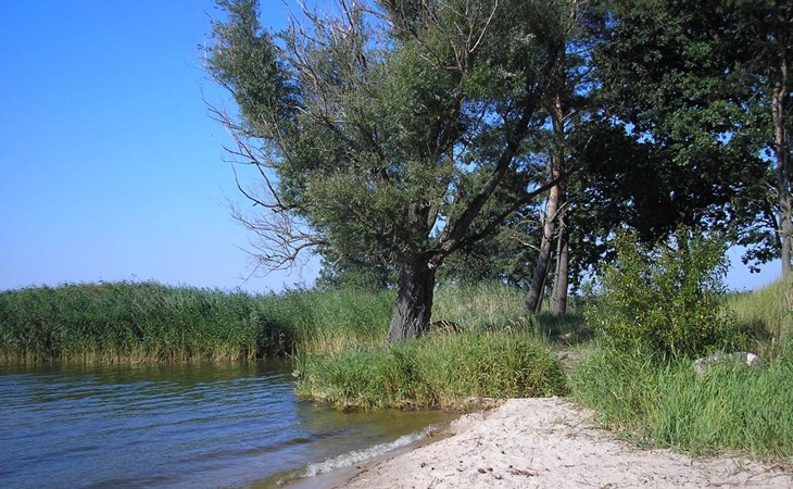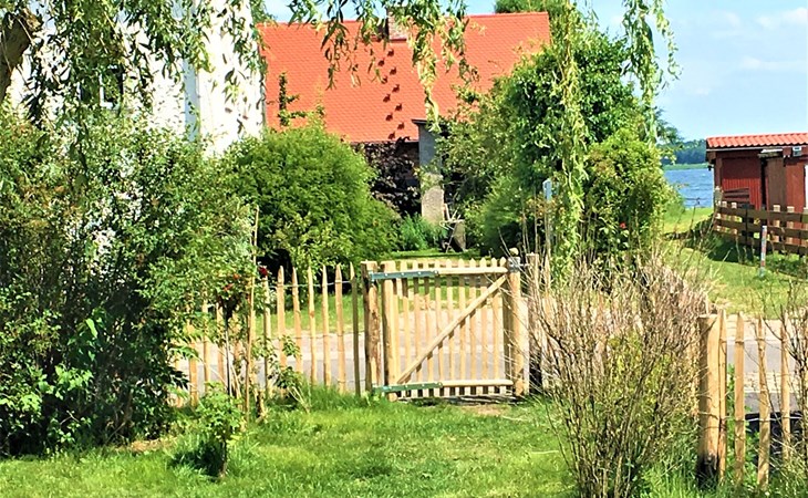 Da das Fischerdörfchen unmittelbar am Haff liegt, haben Sie einen ausgezeichneten Fern-Blick auf die Inseln Usedom und Wollin. Übrigens ist das Stettiner Haff eine Lagune der Ostsee, und es ist größer als der Bodensee.
