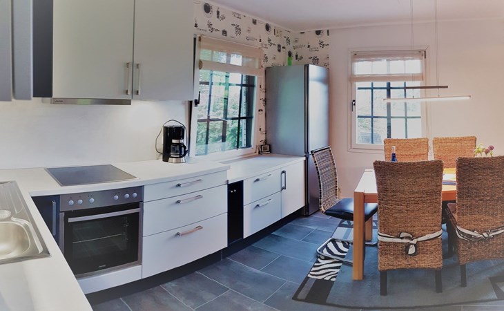 Das Innere unseres Ferienhauses offenbart auf 100 qm Wohnfläche ein modern und liebevoll eingerichtetes Ambiente, das bis zu vier Personen bequem Platz bietet. Der Eingangsbereich führt in eine großzügige Diele und die voll ausgestattete Wohnküche mit angeschlossenem Wohnbereich, ausgerüstet mit moderner Unterhaltungselektronik für gemütliche Abende. Im Erdgeschoss befindet sich außerdem eines der drei Schlafzimmer mit einem Einzelbett sowie ein Gäste-WC. Das Obergeschoss überrascht mit einem geräumigen Schlafbereich, einer Sitzgelegenheit, einem weiteren komfortablen Schlafzimmer mit Boxspringbett und einem großzügigen Duschbad.
