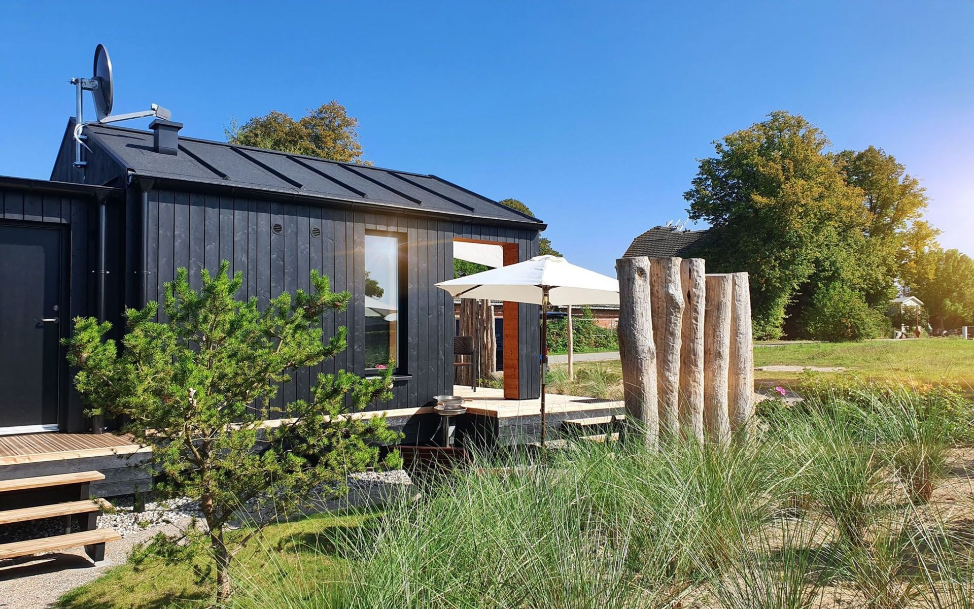 Nach draußen tretend, werden Gäste von einer sonnigen Süd-Terrasse mit einem charmanten kleinen Gartenbereich begrüßt. Hier können Sie bei einem Glas Wein die Seele baumeln lassen. Ab Herbst 2024 wird das Ferienhaus zudem eine eigene Sauna bieten, die das Entspannungsangebot perfekt ergänzt und für unvergessliche Wohlfühlmomente sorgt.