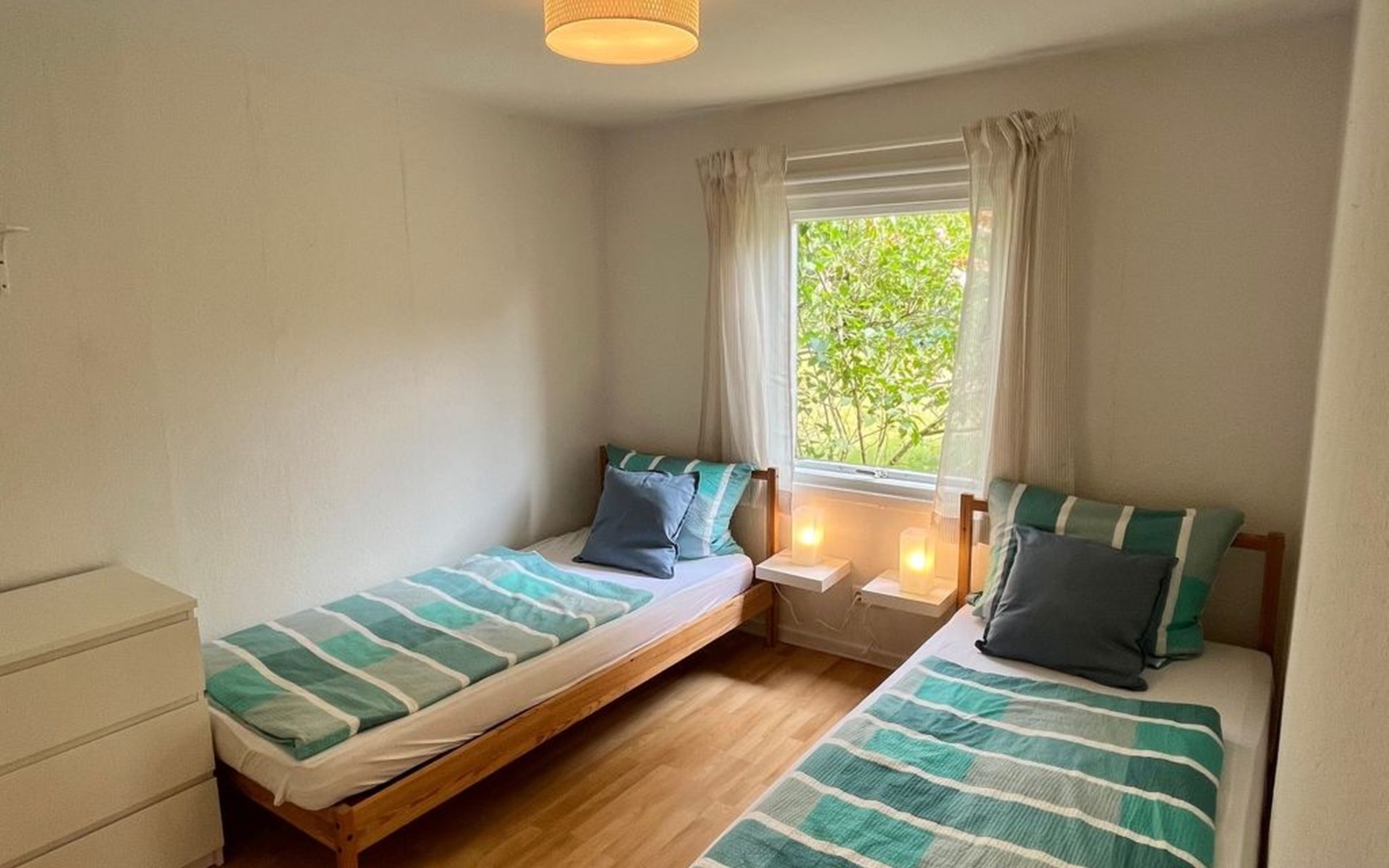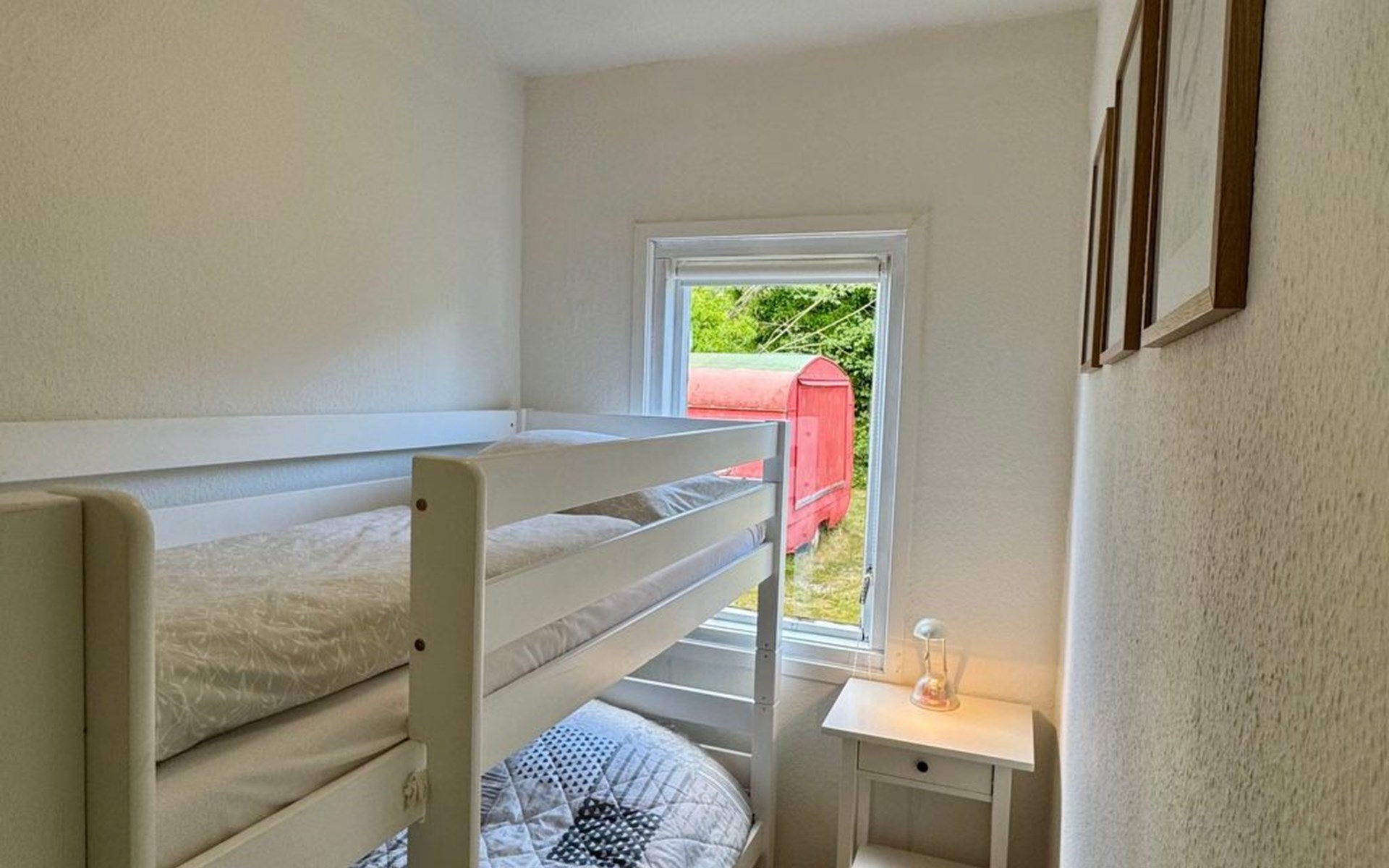 Das Ferienhaus verfügt über ein Schlafzimmer mit zwei Einzelbetten, die Ihnen eine erholsame Nachtruhe garantieren. Das angrenzende Kinderzimmer ist mit einem Stockbett ausgestattet, ideal für die kleinen Gäste.