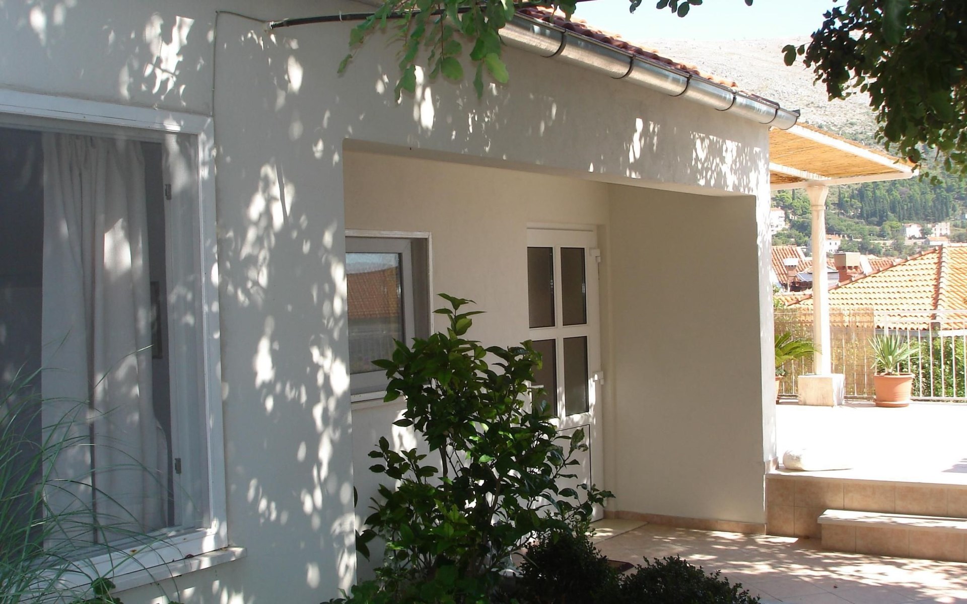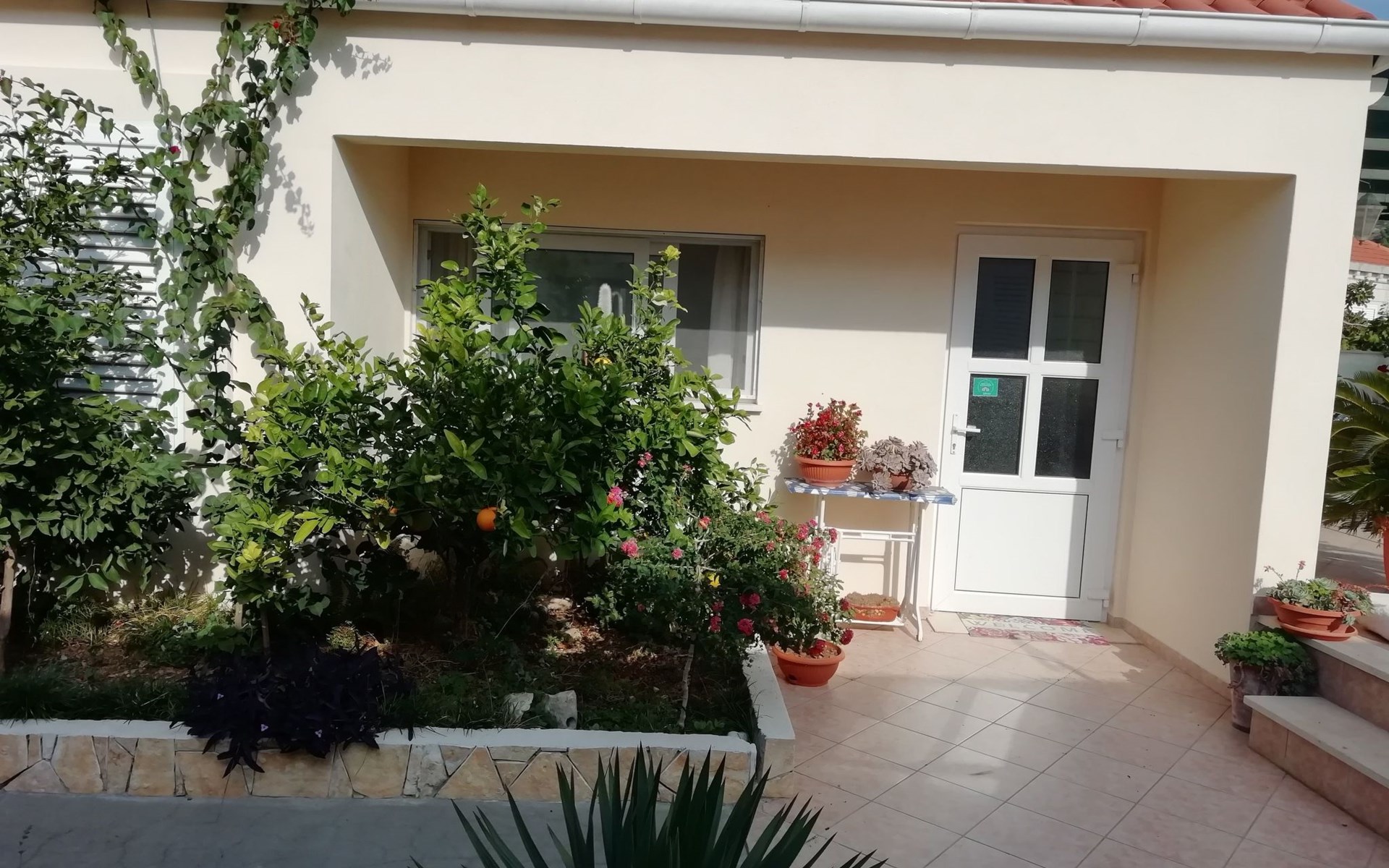 Die großzügige Terrasse ist eine private Oase, die sich perfekt für gemütliche Morgenstunden oder ruhige Abende eignet. Teilweise überdacht und mit Gartenmöbeln ausgestattet, ist sie ein idyllischer Ort, um den Meerblick zu genießen, im Freien zu speisen oder einfach nur die friedliche Umgebung aufzusaugen. Dieser Außenbereich ist einer der Höhepunkte der Wohnung und bietet einen zusätzlichen Bereich zum Entspannen und Genießen des einzigartigen Ambientes von Dubrovnik.