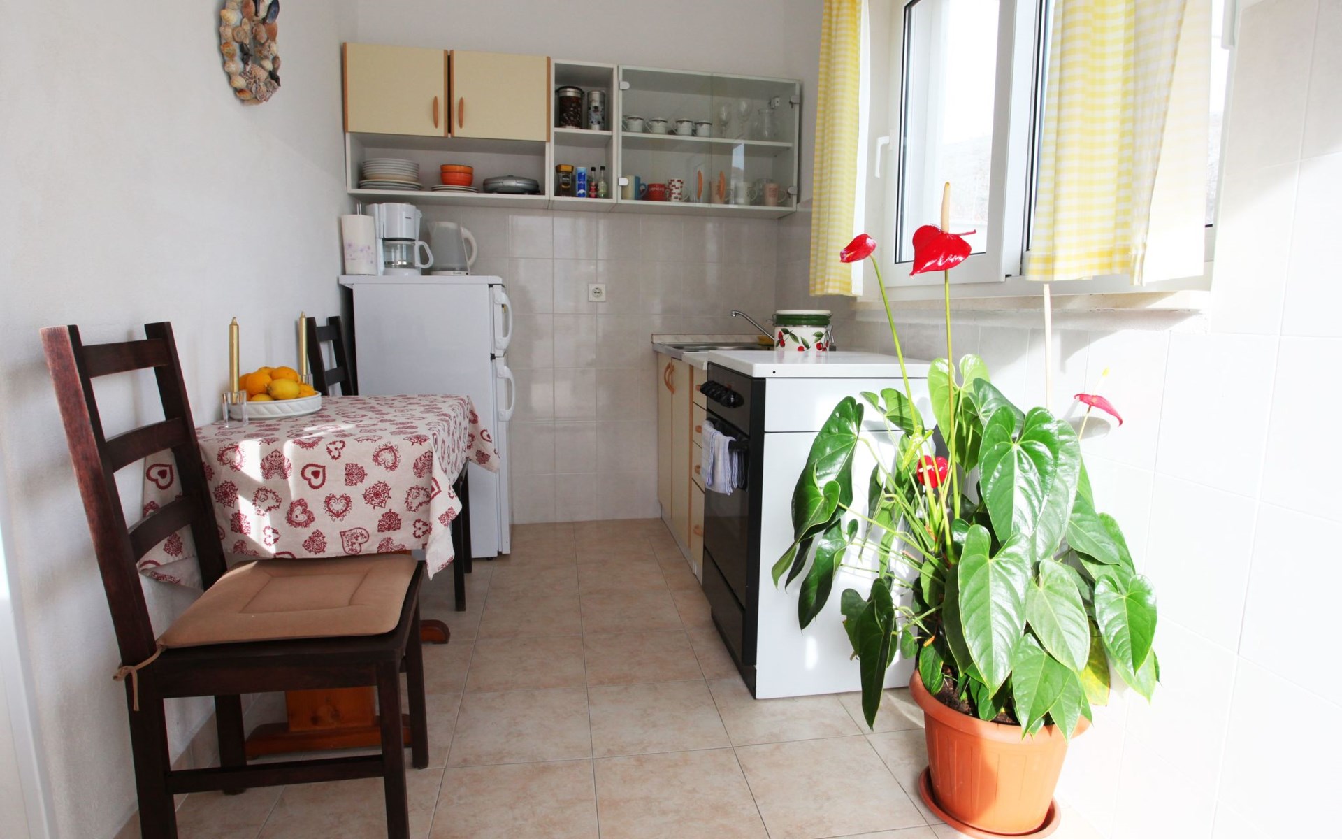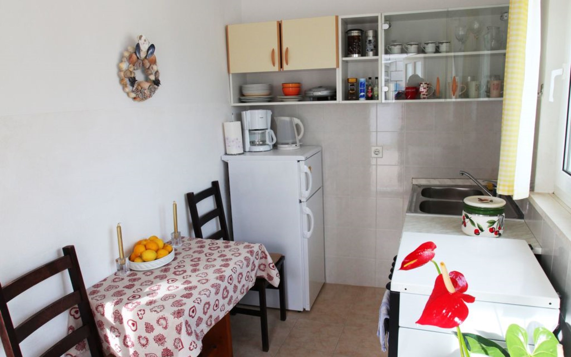 Im Inneren ist die Wohnung gemütlich und gut durchdacht eingerichtet, um den Gästen ein Maximum an Komfort und Zweckmäßigkeit zu bieten. Der separate Eingang führt in ein einladendes Interieur, das Funktionalität mit Gemütlichkeit verbindet. Das klimatisierte Schlafzimmer ist mit einem bequemen Doppelbett, einem gemütlichen Sofa zum Entspannen und einem Fernseher zur Unterhaltung ausgestattet. Angrenzend lädt der Wohn- und Essbereich mit einem weiteren Fernseher, einem Esstisch und einer offenen Küche mit Gasherd, Backofen und Kühl-/Gefrierkombination zum gemütlichen Beisammensein und zum Genießen hausgemachter Mahlzeiten ein. Das Badezimmer ist mit einer Dusche, einem Waschbecken und einer Toilette ausgestattet, so dass alle Ihre Bedürfnisse problemlos erfüllt werden können.