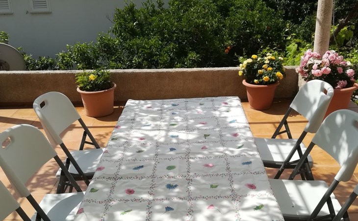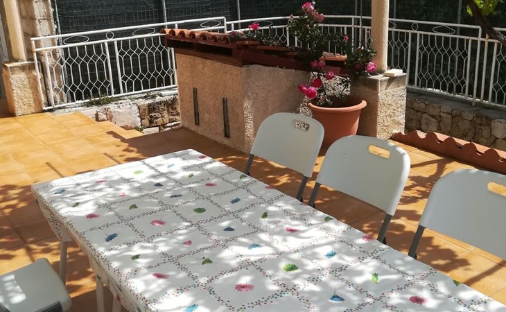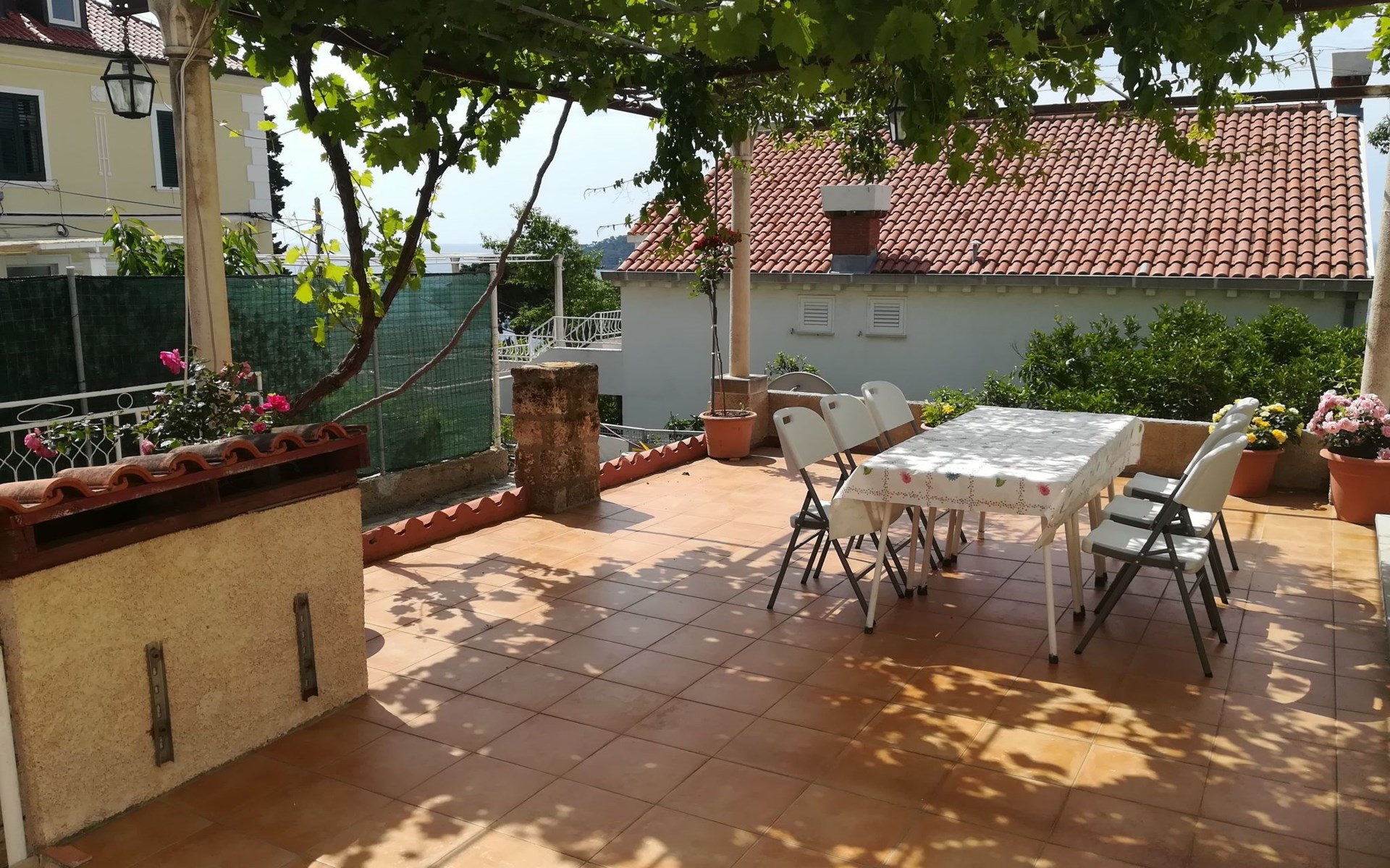 Im Garten gibt es eine große Terrasse, die von einer Pergola überdacht ist - sie ist für die alleinige Nutzung der Gäste in dieser Wohnung. Natürlich ist das ein sehr angenehmer Raum, wo Sie Ihr Getränk genießen können und wo das Rauchen erlaubt ist.