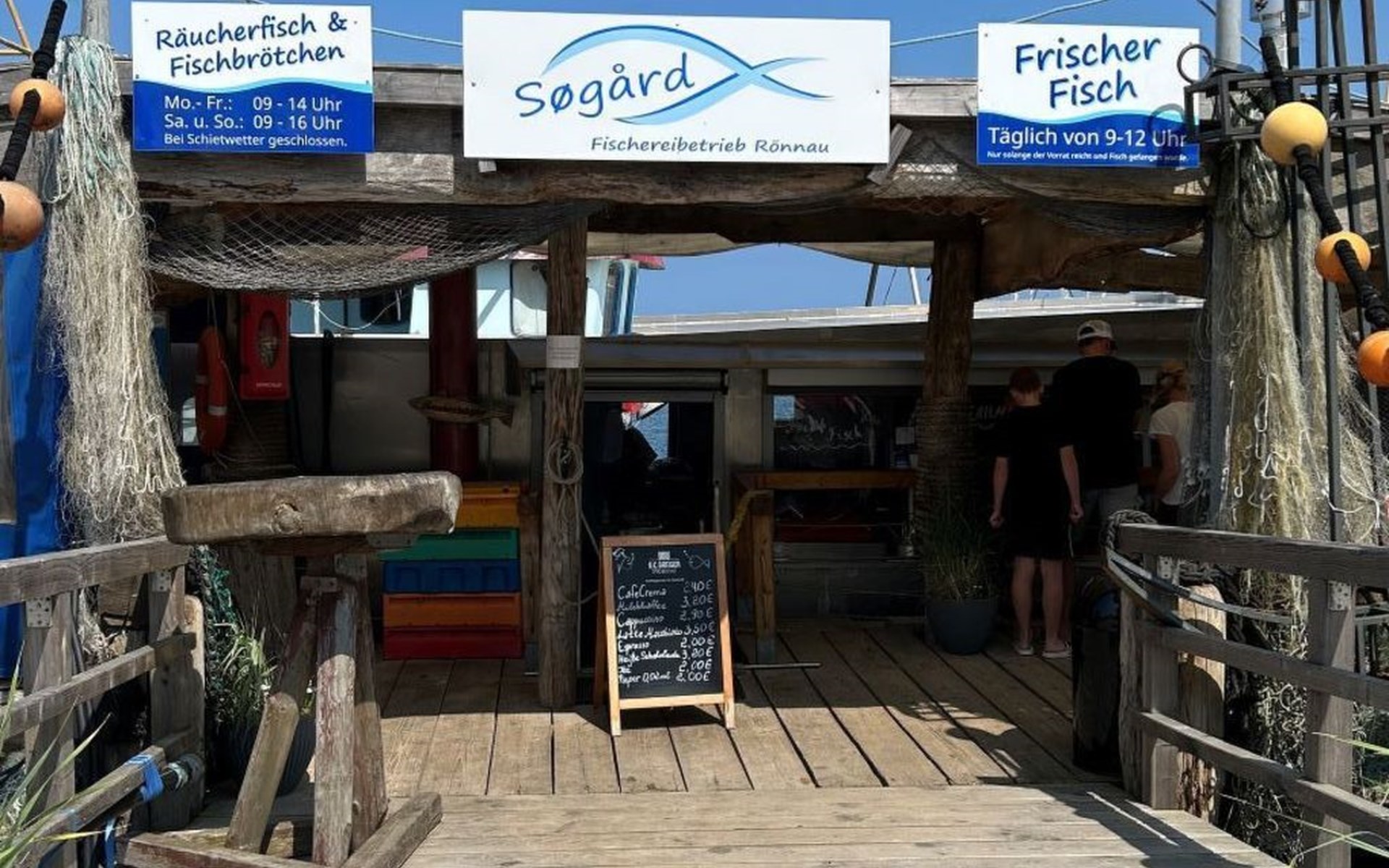 In fußläufiger Umgebung befinden sich neben einem Edeka Markt auch ein Naturerlebnis - Abenteuerspielplatz für Kinder sowie die Surf und Kiteschule "Tatort Hawaii", die neben der sportlichen Aktivität auch zum gemütlichen Verweilen bei einem Getränk einlädt. Frischen Fisch und ein kühles Getränk gibt es am Hafen "Fisch vom Kutter" - Rönnau oder an deren Fischbude "Sögard" am Dorfplatz, Stein.