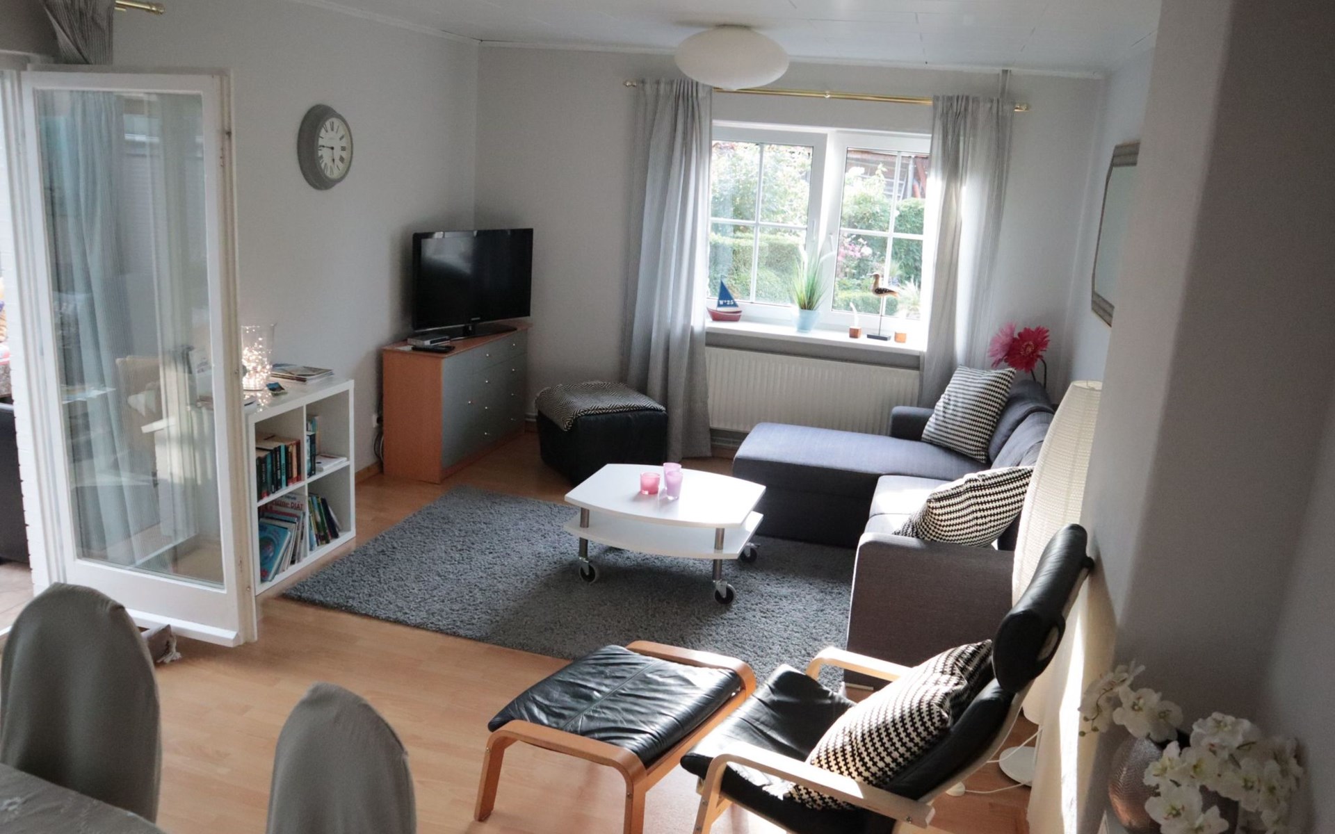 In der stilvoll eingerichteten Ferienwohnung, auf den großzügigen 80 m² im Erdgeschoss, finden bis zu 4 Personen für den nächsten erholsamen Urlaubstrip Platz. Die großzügige Wohnfläche von 80 m² befindet sich im Erdgeschoss und ist barrierefrei. Der Wintergarten sowie die große Terrasse laden zum Entspannen ein. Die sehr gut ausgestattete Küche verfügt zusätzlich zur Kaffeemaschine über eine Senseo-Pad-Maschine, Ceranfeld, Backofen, Kühlschrank, Sodastream, uvm. Die gemütlichen Essecke in der Küche sowie die runde Tafel im Essbereich im Wohnzimmer geben Platz für die ganze Urlaubsgemeinschaft. Im modernen Duschbad haben Sie ein Wandhänge - WC, Dusche, Keramik Waschbecken, Unter- und Spiegelschrank. Das Duschbad ist ebenerdig und somit ebenfalls barrierefrei zugänglich. Das einladende Sofa, dass auch als Schlafcouch genutzt werden kann (Liegefläche 140x200cm), bietet für zwei Personen eine Schlafmöglichkeit. Zur nächtlichen Ruhe kommen Sie in einem separaten, hell eingerichteten Schlafzimmer mit Doppelbett. Sollten Sie jungen Nachwuchs dabei haben, steht für diesen ein kuscheliges Kinderbett bereit. (Bitte Anmelden) Lassen Sie sich begeistern.