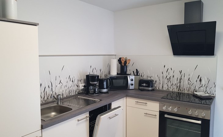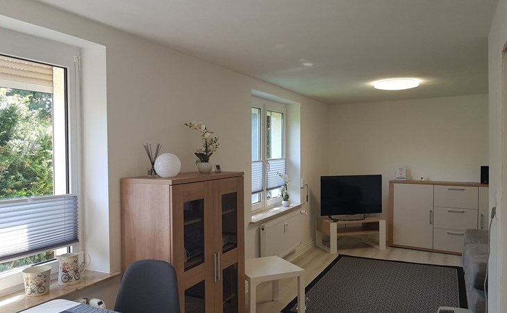 Innen überzeugt die 45 qm große Wohnung durch einen geschmackvoll eingerichteten kombinierten Wohn- und Essbereich inklusive einer voll ausgestatteten Küche. Für eine erholsame Nachtruhe sorgt das separate Schlafzimmer mit einem komfortablen 160 x 200 cm großen Bett, während der Wohnbereich mit einer Schlafcouch mit Federkernmatratze (140 x 200 cm) zusätzliche Schlafmöglichkeiten für bis zu 2 Personen bietet. Das Badezimmer ist mit einer Dusche und WC praktisch gestaltet.