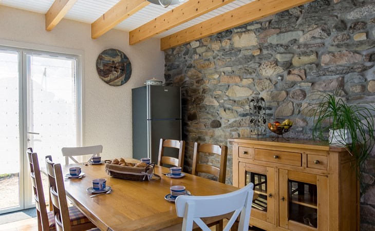 Schönes Einfamilienhaus "Ty Coz ar Mor". Mietobjekt bestehend aus Haupt- und Nebengebäude, im Ortsteil Le Calvaire, 800 m vom Zentrum von Portsall, 4 km vom Zentrum von Ploudalmézeau, 27 km vom Zentrum von Brest, 600 m vom Meer, 700 m vom Strand. Zur Alleinbenutzung: Garten 700 m2 mit Rasen und Pflanzen, Parkplatz (für 3 Autos) auf dem Grundstück. Einkaufsgeschäft 800 m, Supermarkt 4 km, Restaurant, Fahrradverleih 800 m, Bushaltestelle "Portsall Église" 850 m, Sandstrand "Plage de Pors ar Vilin Vras" 600 m. Sporthafen 700 m, Surfschule 6 km, Tennis 4 km. Nahe gelegene Sehenswürdigkeiten: Beach Plage 'Pors Geffroy' 700 m, Dunes & Beach 'Tréompan' 800 m, Saint Pabu, Aber Benoît 9 km, Le Conquet, Pointe de St.Mathieu 33 km, Fort Bertheaume, Plougonvelin 32 km, Brest, Océanopolis 32 km. Wandergebiete: GR34, sentier des douaniers 700 m.