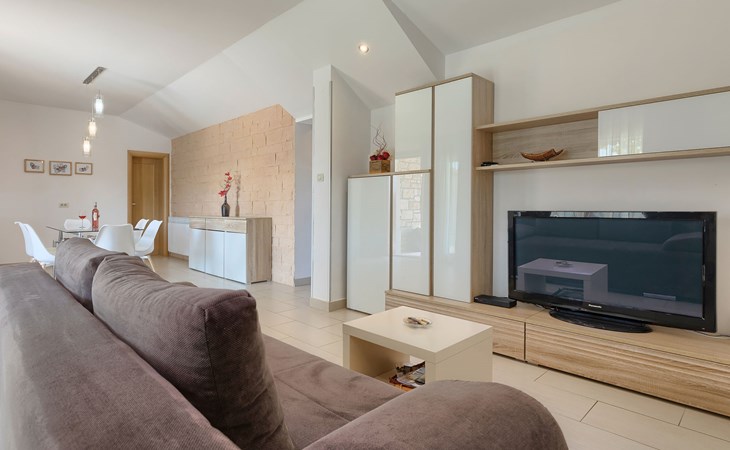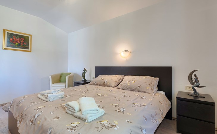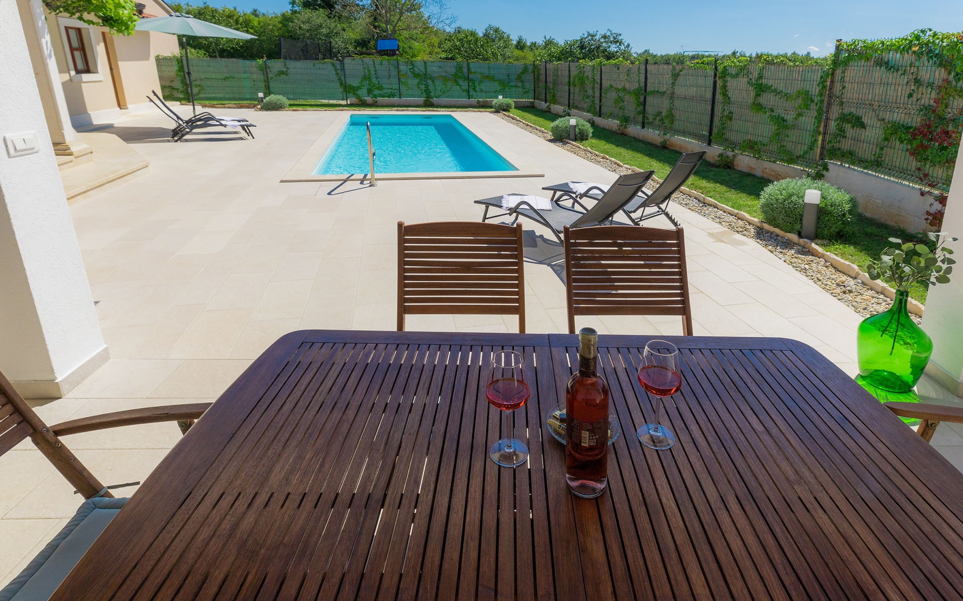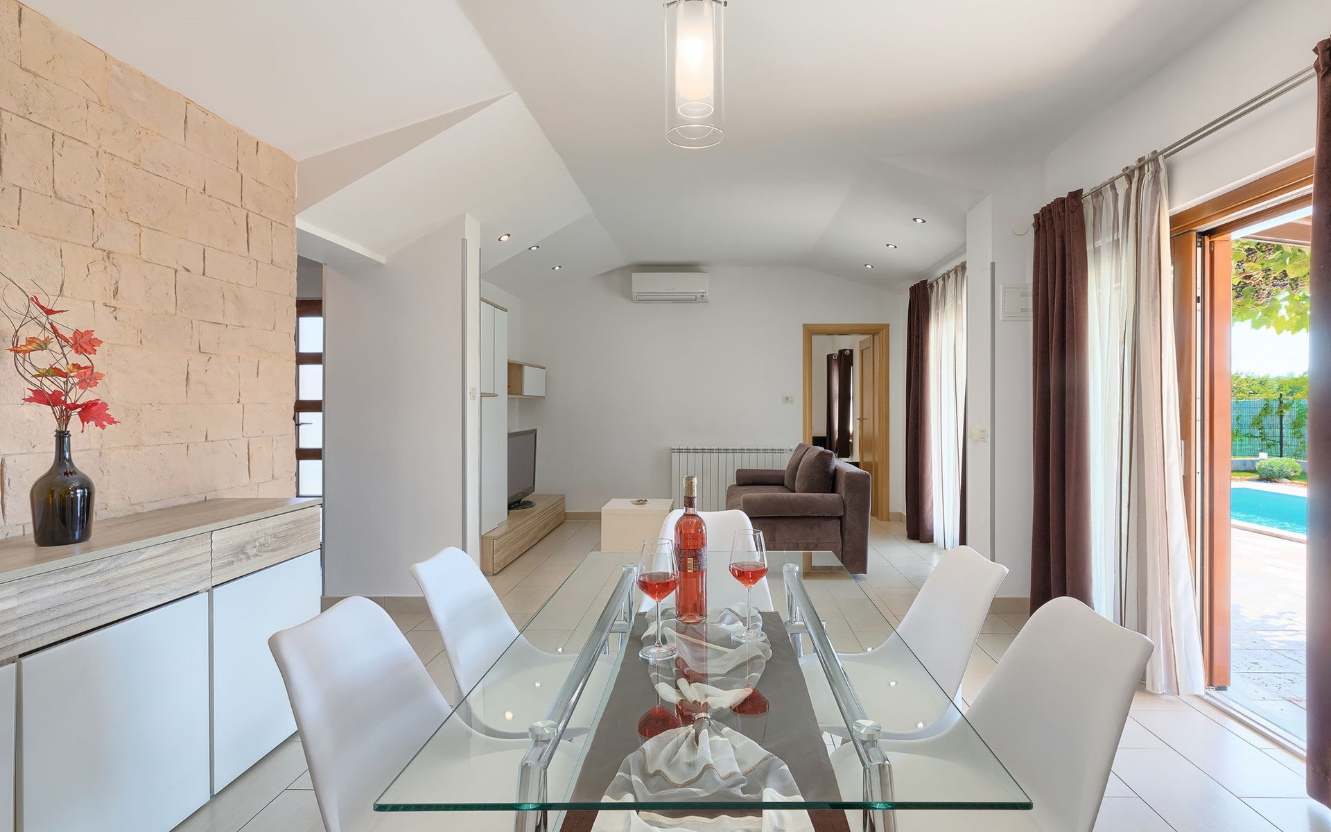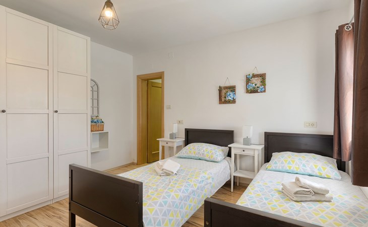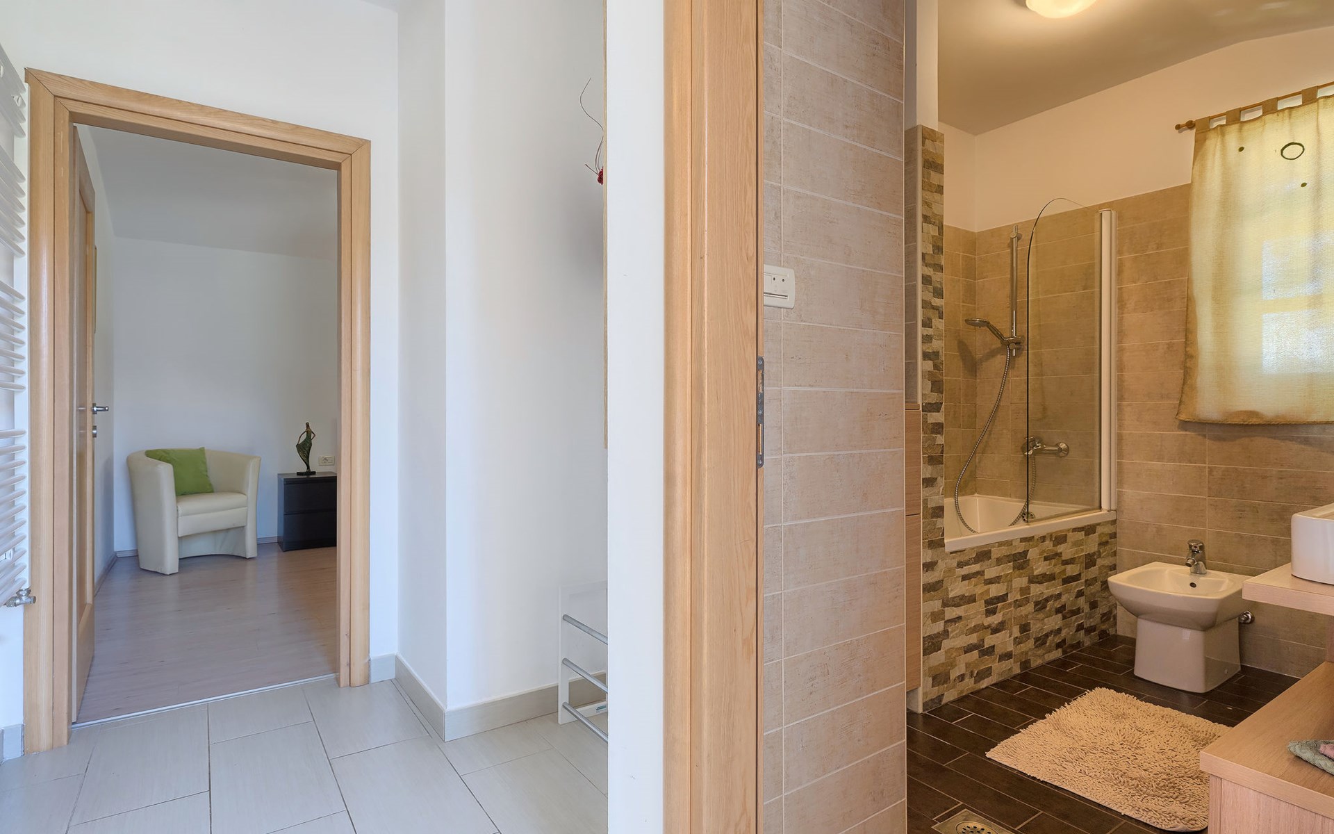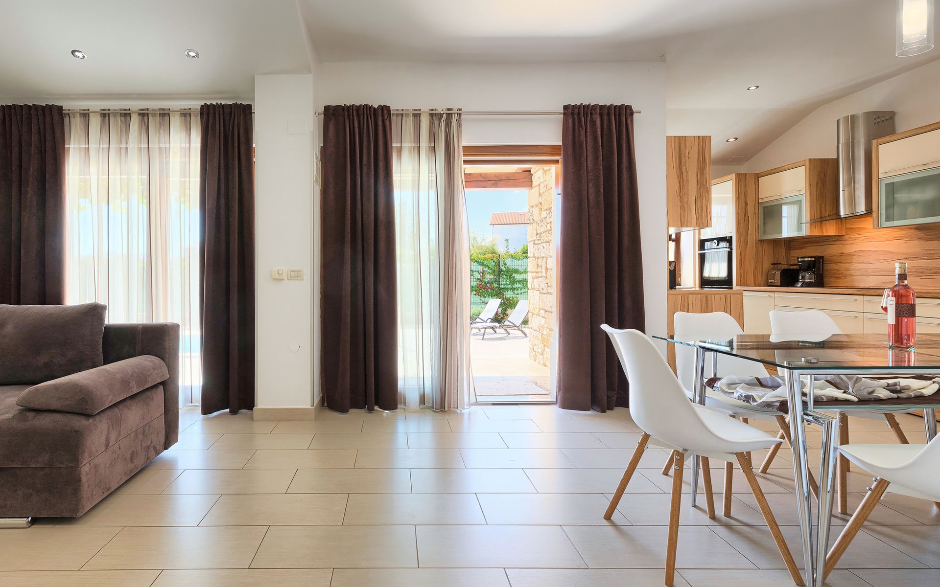 Sveti Petar u Šumi 28 km von Rovinj: Einfamilienhaus "Florens". 300 m vom Zentrum von Sveti Petar u Šumi, 7 km vom Zentrum von Žminj, 28 km vom Meer. Zur Alleinbenutzung: Grundstück 400 m2 (eingezäunt), Rasen und Bäumen, Schwimmbad eckig (9 x 3 m, saisonale Verfügbarkeit: 01.Mai. - 01.Okt.) mit Innentreppe. Aussendusche, Terrasse, Gartenmöbel, Grill. Im Hause: Internetzugang, Waschmaschine. Parkplatz (für 2 Autos) auf dem Grundstück. Einkaufsgeschäft 500 m, Supermarkt 7 km, Bushaltestelle 6.6 km, Kieselstrand 28 km, Felsstrand 28 km.