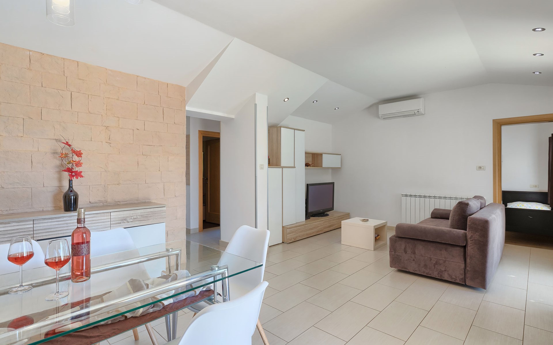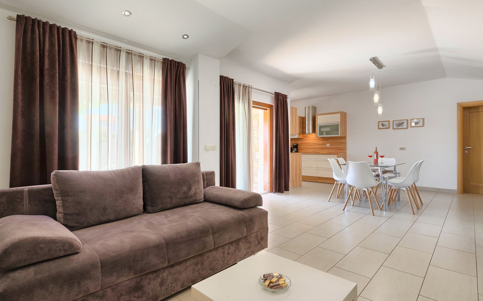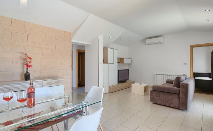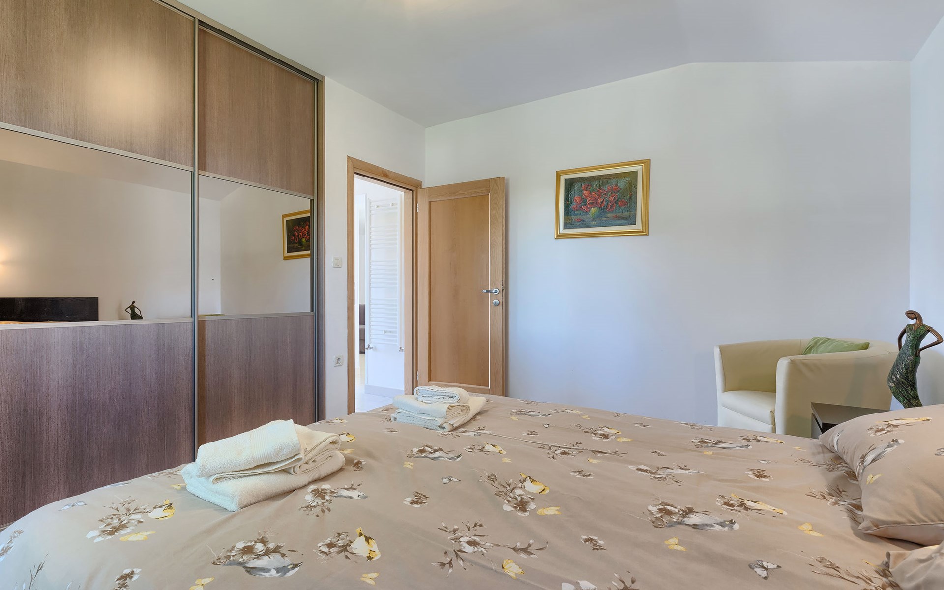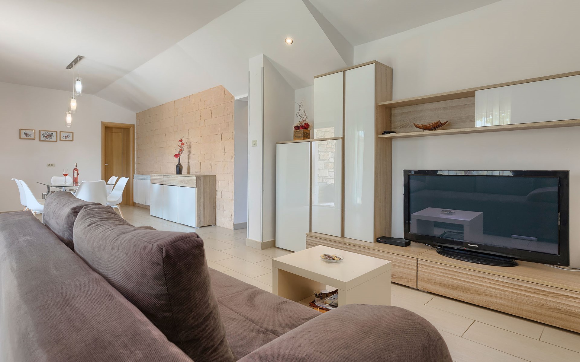 Sveti Petar u Šumi 28 km von Rovinj: Einfamilienhaus "Florens". 300 m vom Zentrum von Sveti Petar u Šumi, 7 km vom Zentrum von Žminj, 28 km vom Meer. Zur Alleinbenutzung: Grundstück 400 m2 (eingezäunt), Rasen und Bäumen, Schwimmbad eckig (9 x 3 m, saisonale Verfügbarkeit: 01.Mai. - 01.Okt.) mit Innentreppe. Aussendusche, Terrasse, Gartenmöbel, Grill. Im Hause: Internetzugang, Waschmaschine. Parkplatz (für 2 Autos) auf dem Grundstück. Einkaufsgeschäft 500 m, Supermarkt 7 km, Bushaltestelle 6.6 km, Kieselstrand 28 km, Felsstrand 28 km.