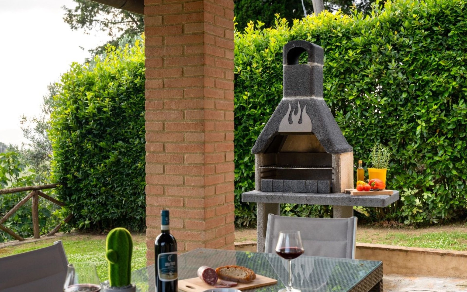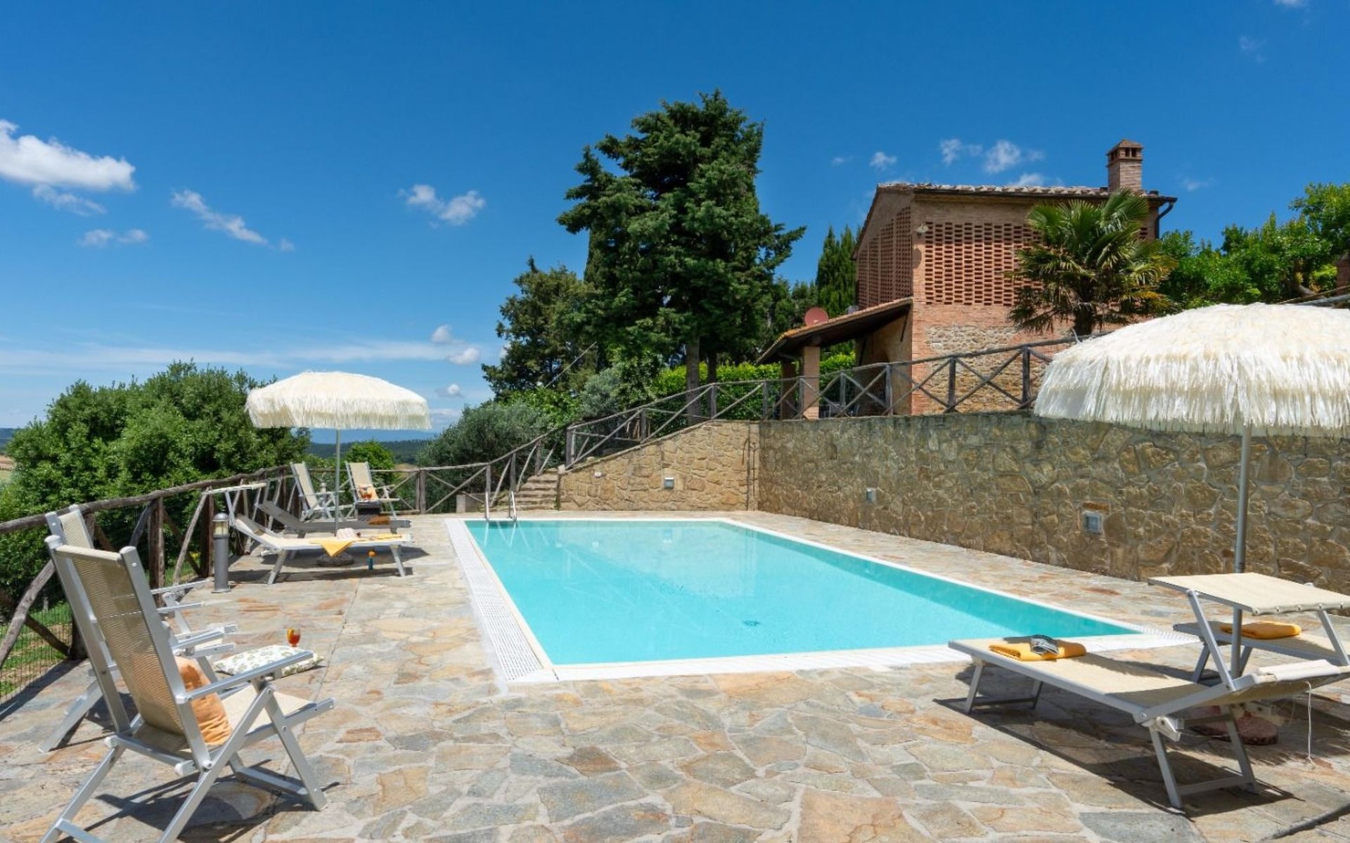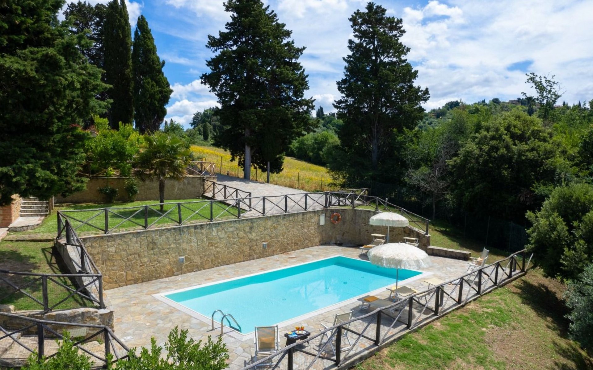 Der Garten zur Alleinbenutzung bietet den idealen Platz, um die Ruhe der Umgebung zu genießen. Die Loggia im Freien, mit Blick auf eine traumhafte Aussicht, ist der perfekte Ort, um Mahlzeiten im Freien zu genießen. Die Villa ist ein einzelnes Haus, das an 4 Seiten frei ist und somit absolute Privatsphäre garantiert, so dass Sie Ihren Aufenthalt in völliger Freiheit und Gelassenheit genießen können. Vierbeinige Freunde mittlerer Größe sind willkommen, so dass Sie das Urlaubserlebnis auch mit ihnen teilen können.