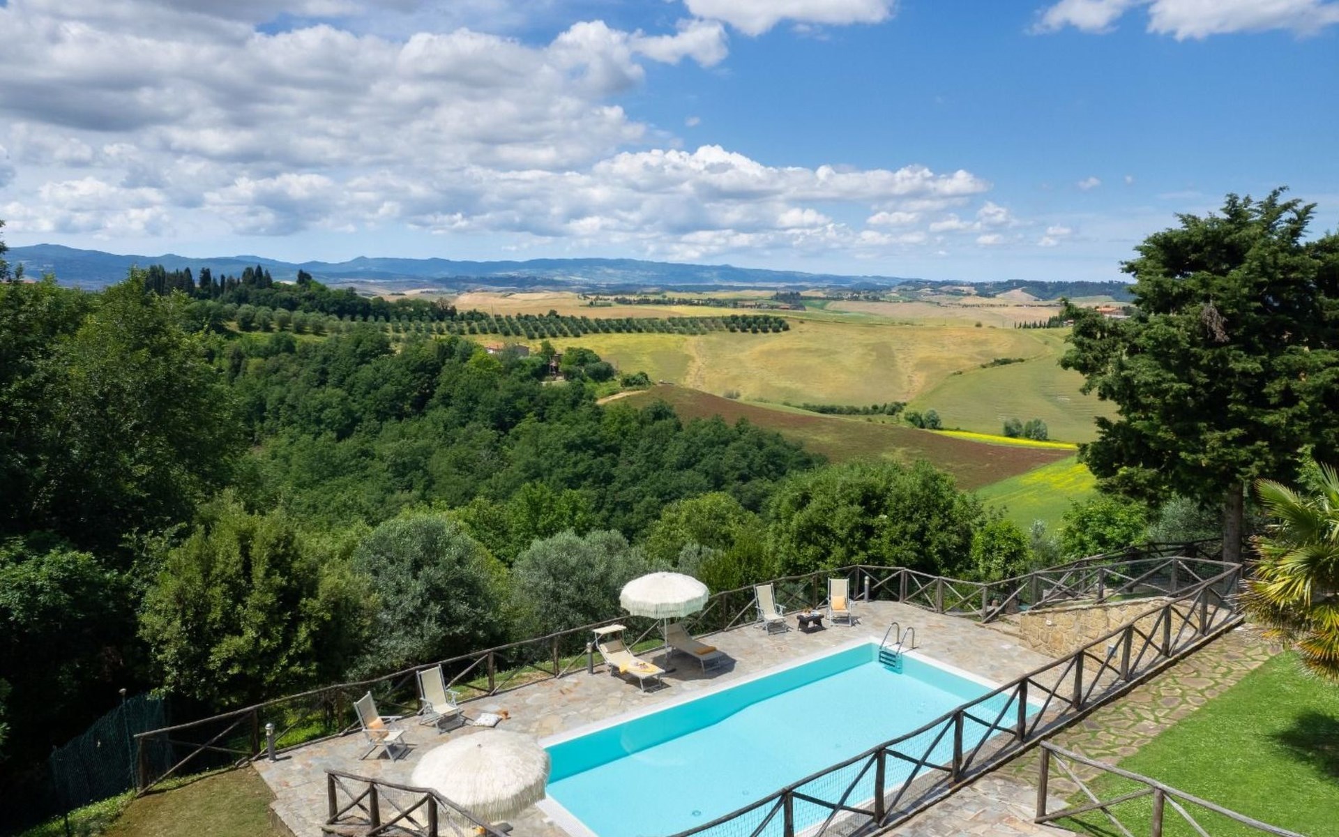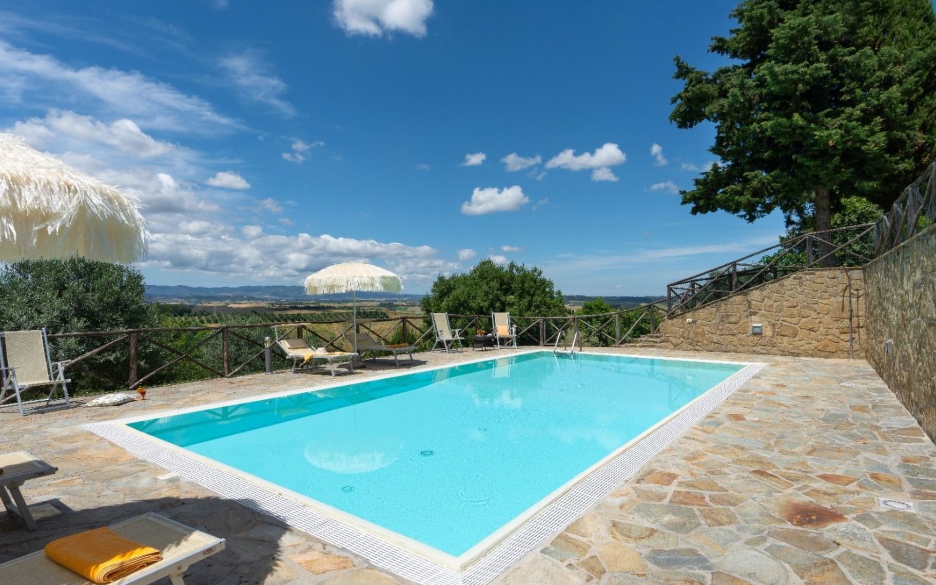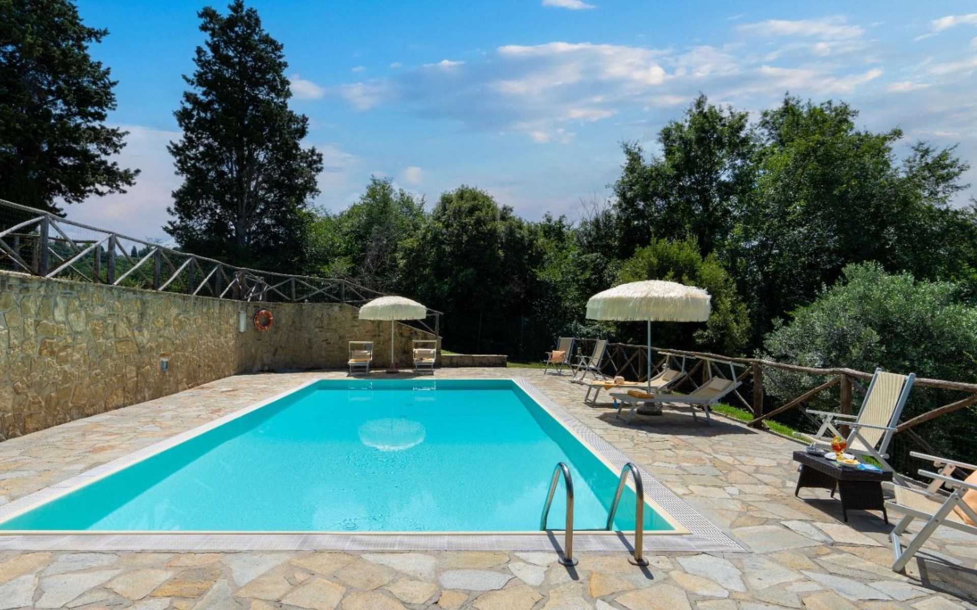 Der Garten zur Alleinbenutzung bietet den idealen Platz, um die Ruhe der Umgebung zu genießen. Die Loggia im Freien, mit Blick auf eine traumhafte Aussicht, ist der perfekte Ort, um Mahlzeiten im Freien zu genießen. Die Villa ist ein einzelnes Haus, das an 4 Seiten frei ist und somit absolute Privatsphäre garantiert, so dass Sie Ihren Aufenthalt in völliger Freiheit und Gelassenheit genießen können. Vierbeinige Freunde mittlerer Größe sind willkommen, so dass Sie das Urlaubserlebnis auch mit ihnen teilen können.