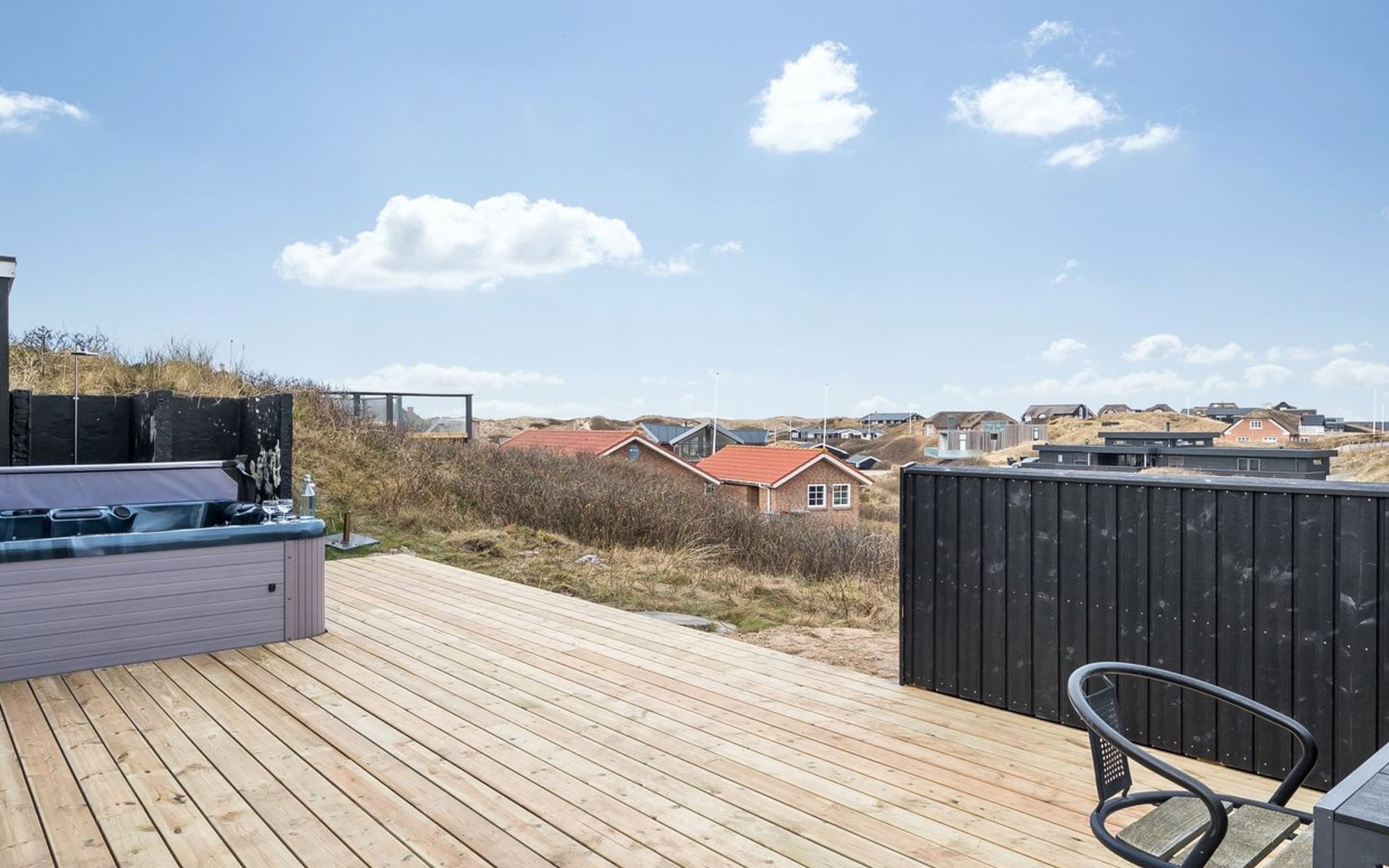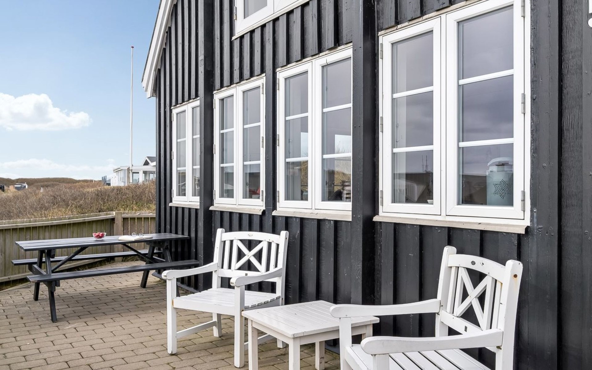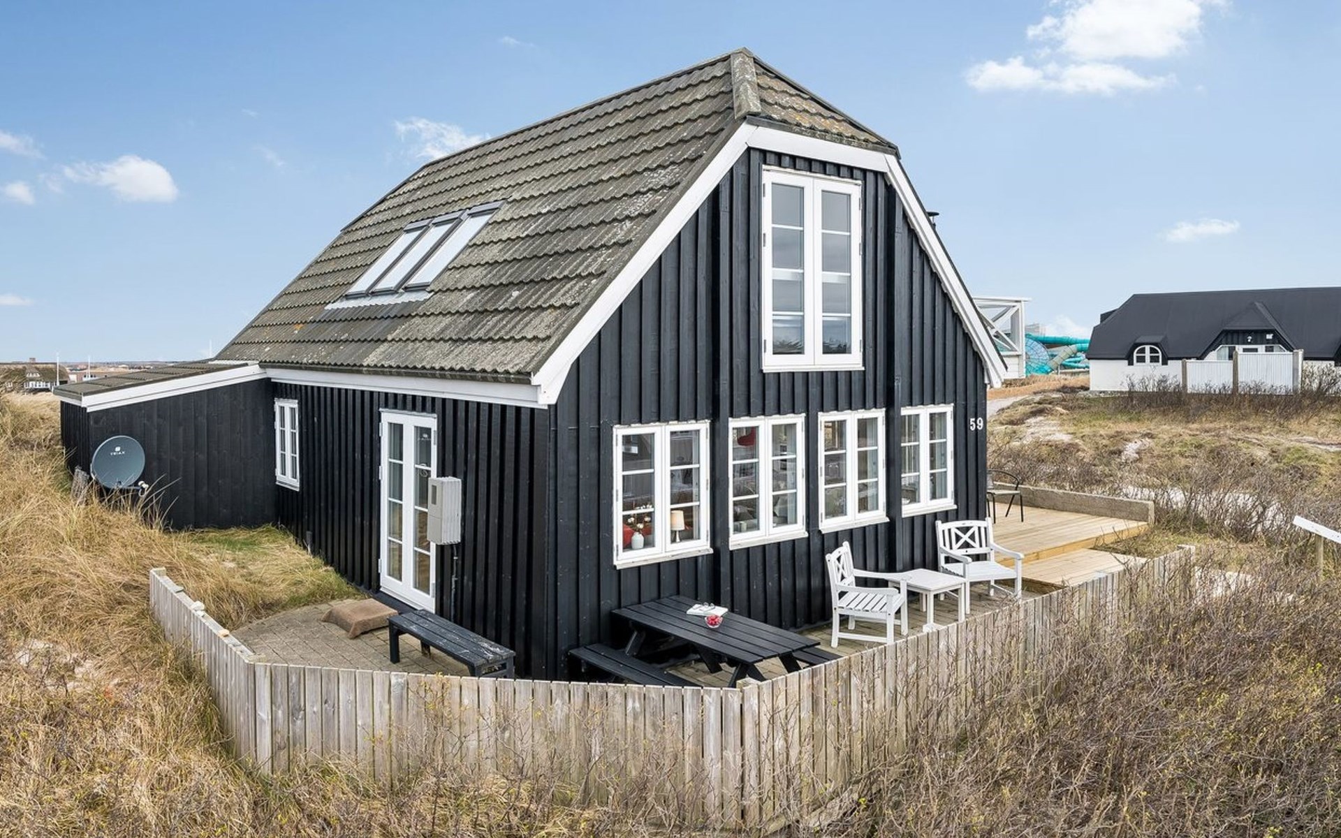 Einfamilienhaus, Baujahr 1940. 250 m vom Meer. Zur Alleinbenutzung: naturbelassenes Grundstück 1'040 m2. Aussendusche. Im Hause: Sauna, Waschmaschine. Parkplatz beim Haus. Lebensmittelgeschäft 100 m. Golfplatz 1 km. Der Besitzer akzeptiert keine Jugendgruppen.