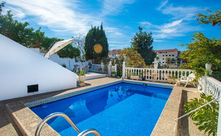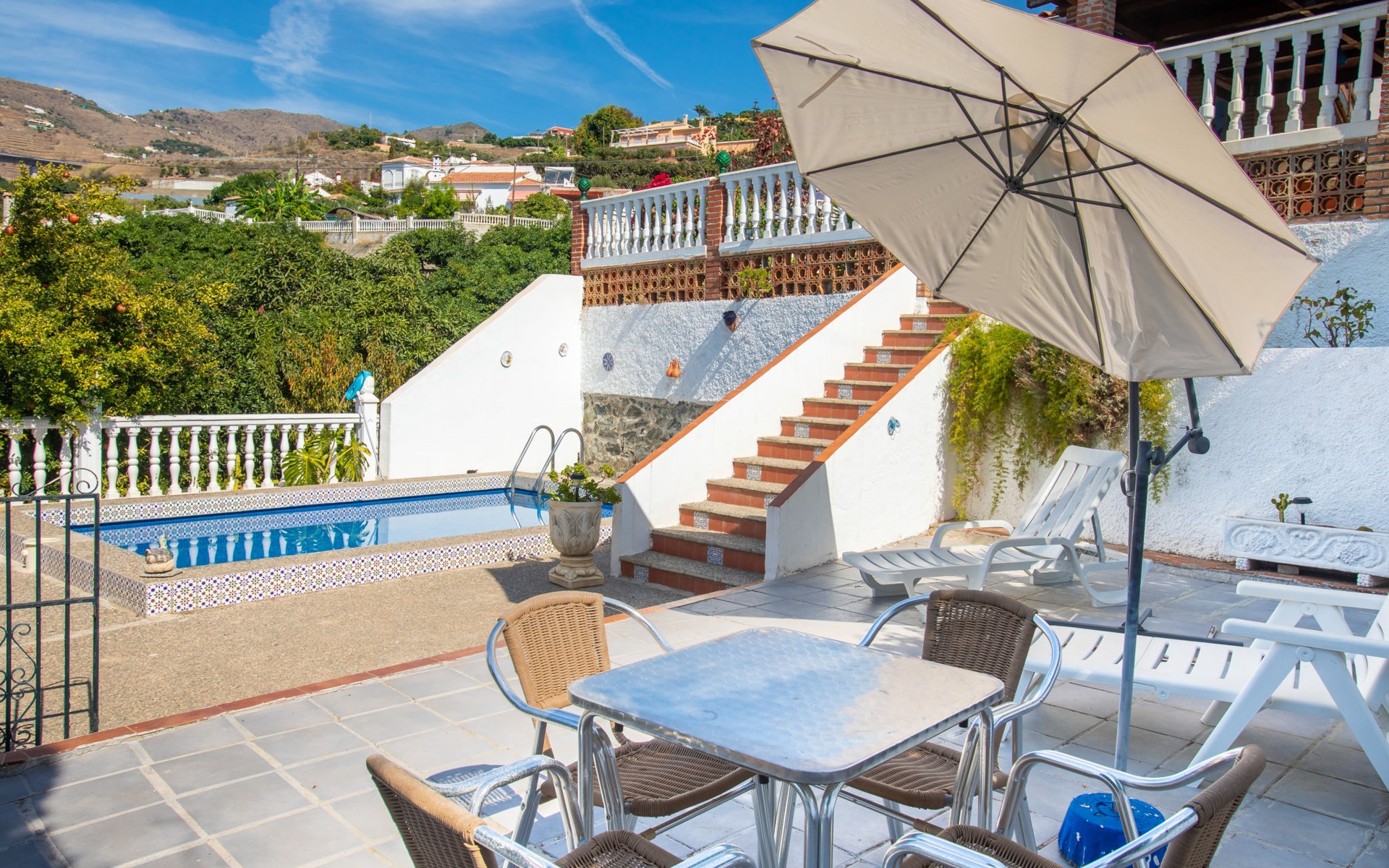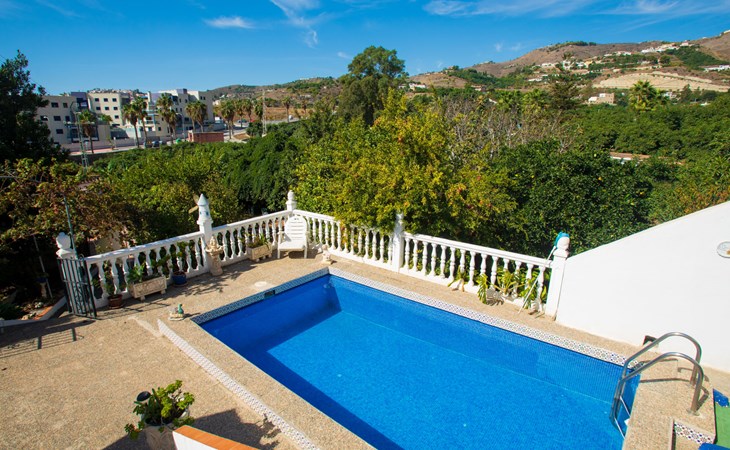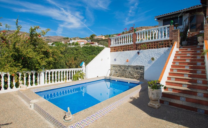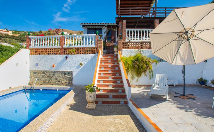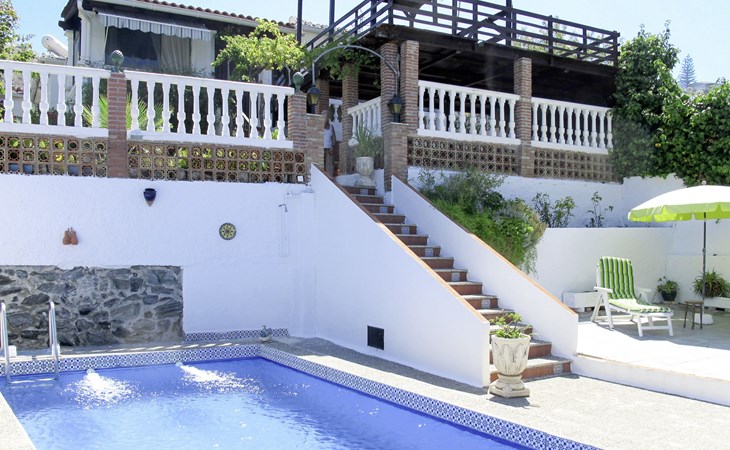 Zweifamilienhaus "Fortuna". Im Ortsteil Playa Cabria, 4 km vom Zentrum von Almuñécar, 500 m vom Meer, direkt am Strand. Zur Alleinbenutzung: Grundstück 1'000 m2 (eingezäunt), terrassierter Garten mit Pflanzen und Bäumen, Schwimmbad (6 x 3 m, 150 - 200 cm tief, saisonale Verfügbarkeit: 01.Mai. - 31.Okt.). Im Hause: Waschmaschine. Treppenweg (39 Stufen) bis zum Haus. Parkplatz auf dem Grundstück. Einkaufsgeschäft 1.3 km, Bushaltestelle "Taramay (Ctra de Almería)" 1.5 km, Sandstrand "Playa Cabria" 300 m. Nahe gelegene Sehenswürdigkeiten: Nerja, Cuevas de Nerja, Frigiliana, Granada, Salobreña, Aquatropic. Bekannte Skigebiete sind gut erreichbar: Sierra Nevada. Wandergebiete: Valle de Lecrin, Alpujarras, Sierra Almijara. Bitte beachten: Fahrzeug empfohlen. Der Besitzer akzeptiert keine Jugendgruppen. Der Besitzer wohnt auf dem gleichen Grundstück.