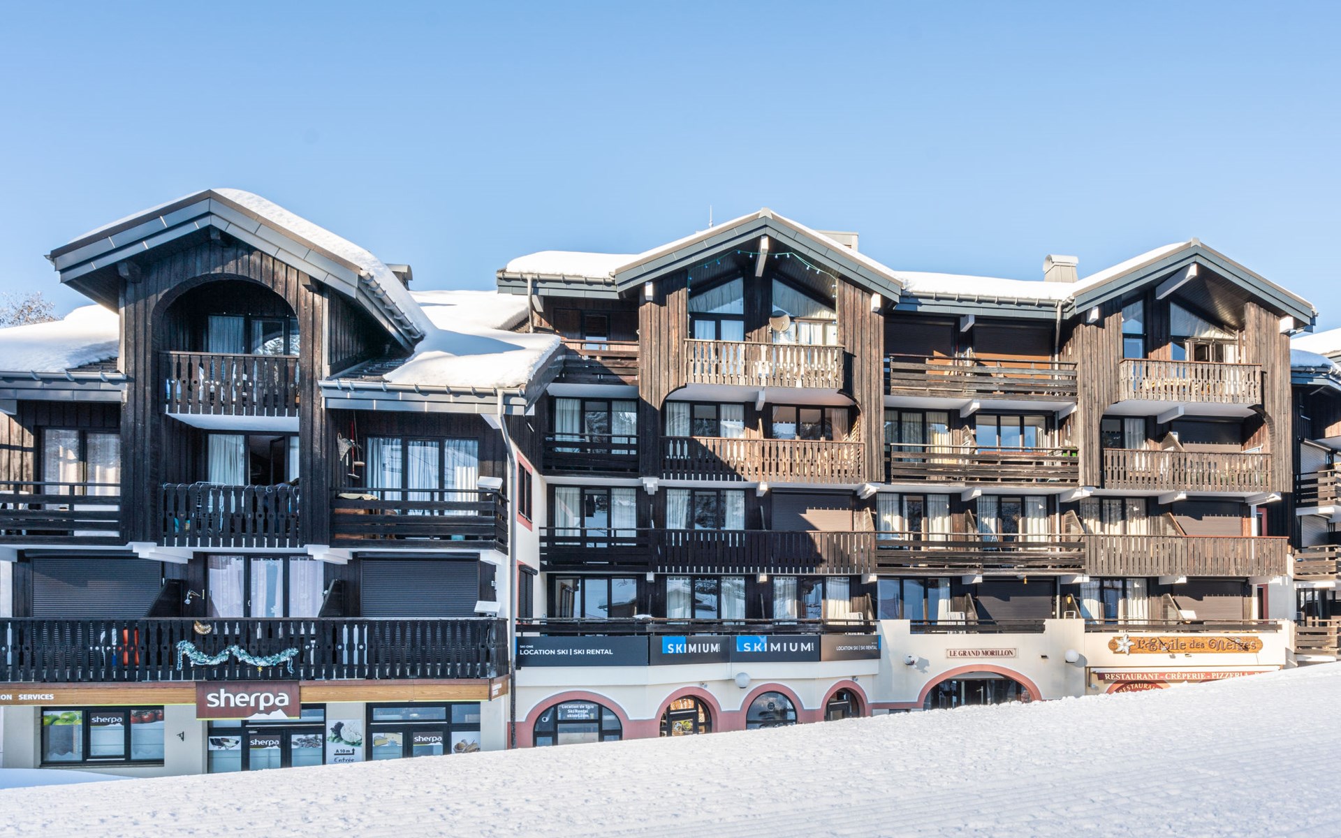 Residenz "Grand Morillon", auf 4 Stockwerken. Im Ort Morillon 1100, 50 m vom Skigebiet. In der Anlage: Empfang. Frühstück (extra). Zufahrt (Bergstrasse). Im Winter bitte Schneeketten mitbringen. Parkplatz. Supermarkt 10 km, Bahnstation "Cluses" 15 km. Nahe gelegene Sehenswürdigkeiten: Centre Morillon Village 5 km, Aéroport de Genève 60 km. Bekannte Skigebiete sind gut erreichbar: La vallée du Giffre, Les cascades. Bekannte Seen in der Umgebung sind gut erreichbar: Lac Bleu. Bitte beachten: Das Foto ist nur ein Hausbeispiel. Die Mietobjekte können sich in Wohnfläche, Raumaufteilung, Ausstattung und Einrichtung unterscheiden. Frühstück extra: Erwachsener: 13 € pro Tag // Kind (4–11 Jahre inklusive): 6 € pro Tag // Kind unter 4 Jahren: kostenlos. Frühstückszeiten: 8:00 – 10:00 Uhr / Verfügbar an jedem Tag der Woche.