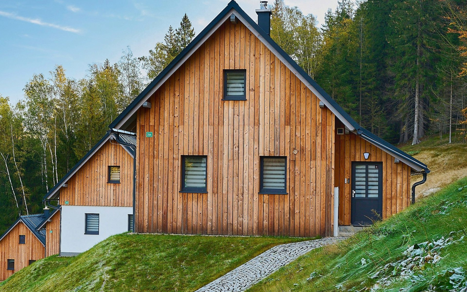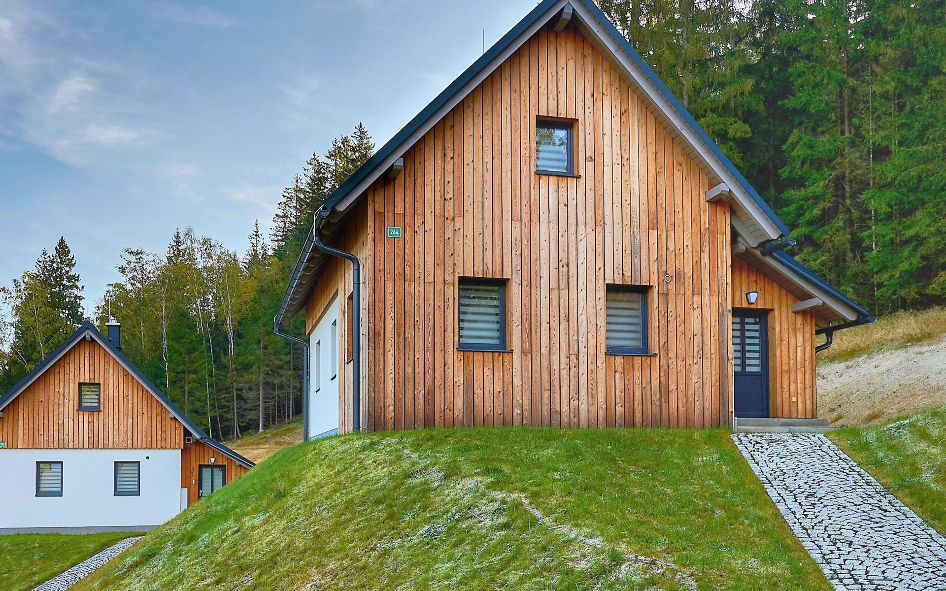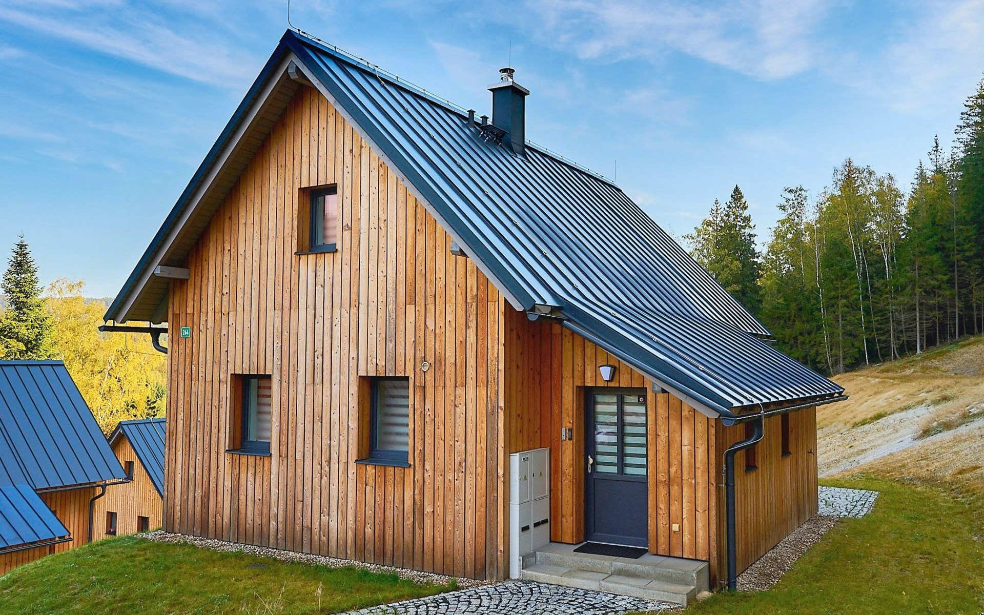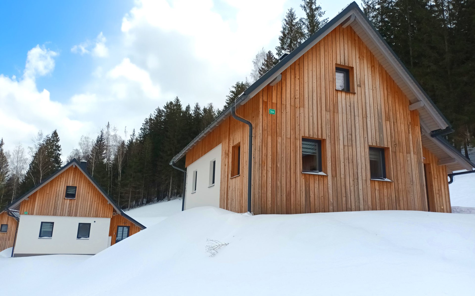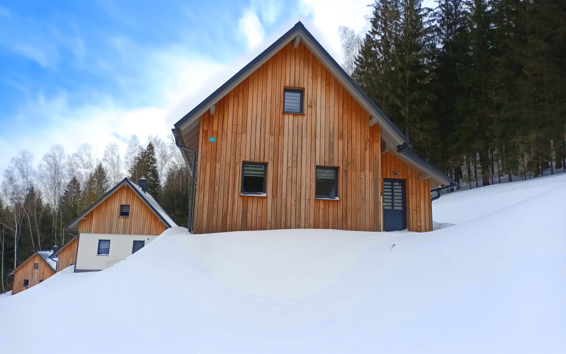 Freistehendes, komfortables Landhaus "Chaloupka U lesa 264", auf 2 Stockwerken, Baujahr 2023. Ausserhalb des Ortes, direkt am Waldrand, 2 km vom Skigebiet. Zur Alleinbenutzung: Grundstück. Terrasse. Im Winter bitte Schneeketten mitbringen. Parkplatz (im Winter) in 70 m. Zentralparkplätze. Einkaufsgeschäft 2 km, Lebensmittelgeschäft 2.5 km, Supermarkt 6 km, Einkaufszentrum 20 km, Restaurant 2 km, Bushaltestelle "Jiřetín pod Bukovou" 1.4 km, Bahnstation "Jiřetín pod Bukovou" 1.3 km, Freibad 7 km, Hallenbad 20 km. Golfplatz (9 Loch) 17 km, Wanderwege ab Haus 10 m, Radweg 100 m, Skilift 2 km, Skipisten 2 km, Skiverleih 2 km, Skischule 2 km, Langlaufloipe 100 m, Kinderspielplatz 3 km. Nahe gelegene Sehenswürdigkeiten: Rozhledna Černá Studnice 6 km, Muzeum obrněné techniky Smržovka 6 km, Vodopády Jedlové 7 km, Kittelovo muzeum v Krásné 12 km, Aquapark Babylon, IQLandia, ZOO Liberec 22 km, Bozkovské jeskyně 22 km. Bekannte Skigebiete sind gut erreichbar: Tanvaldský Špičák 2 km, Filip Smržovka 4 km, Světlý Vrch Albrechtice 4 km, Josefův Důl 7 km, Severák, Bedřichov 12 km. Wandergebiete: Hřebenovka. Bitte beachten: Be- und Entladen am Ferienhaus möglich.