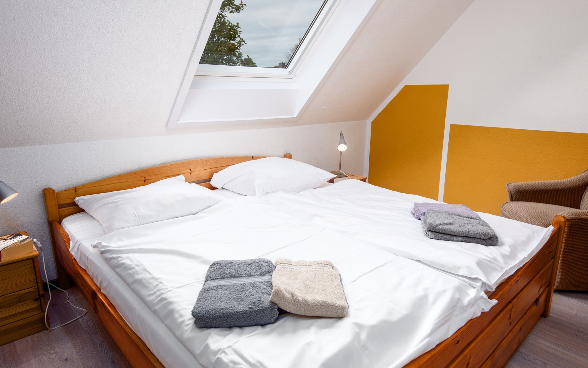 Mehrfamilienhaus "Muschelweg". Ruhige Lage, 500 m vom Meer, 900 m vom Strand. Im Hause: Einstellraum für Fahrräder, Zentralheizung. Parkplatz beim Haus. Supermarkt 1.6 km, Restaurant 100 m, Bäckerei 300 m, Café 300 m, Bushaltestelle 250 m, Bahnstation 2 km, Fähre 2 km, Sandstrand 900 m, Freibad 14 km, Hallenbad 450 m. Golfplatz (18 Loch) 8 km, Surfschule 900 m, Tennis 2.5 km. Kinderspielhaus 250 m.