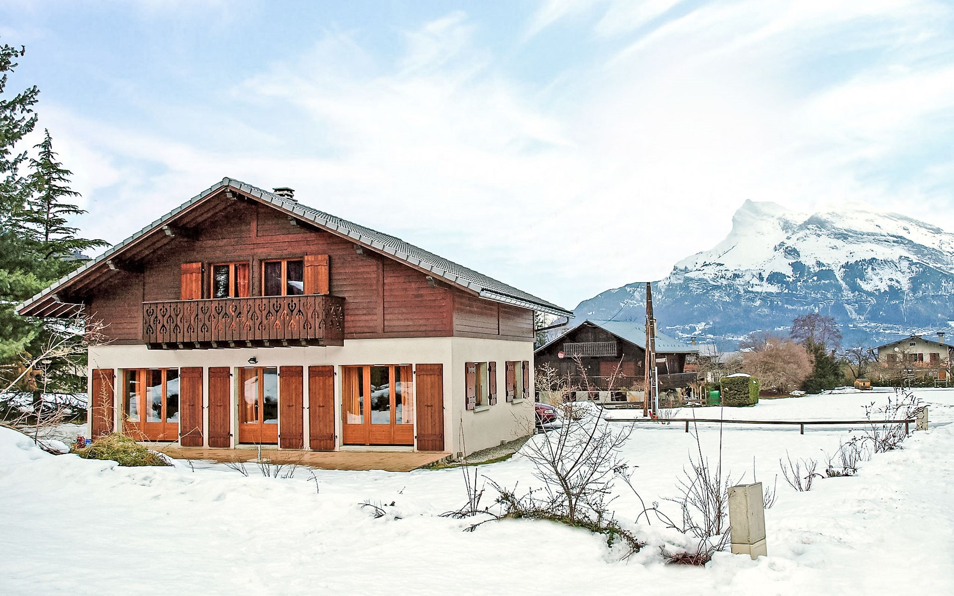 Chalet "Mendiaux". Am Ortsrand, 1 km vom Zentrum, ruhige, sonnige Lage, 7.9 km vom Skigebiet. Zur Alleinbenutzung: Grundstück 800 m2. Im Winter bitte Schneeketten mitbringen. Einkaufsgeschäft, Lebensmittelgeschäft, Restaurant 800 m, Bushaltestelle 50 m, Freibad 800 m, Thermalbad "Thermes de Saint Gervais" 6.7 km. Tennis 800 m, Minigolf 800 m, Skisportanlagen 1.5 km, Skibushaltestelle 50 m, Eisfeld 1.1 km. Bekannte Skigebiete sind gut erreichbar: Evasion Mont Blanc. Bitte beachten: Gratis Skibus.
