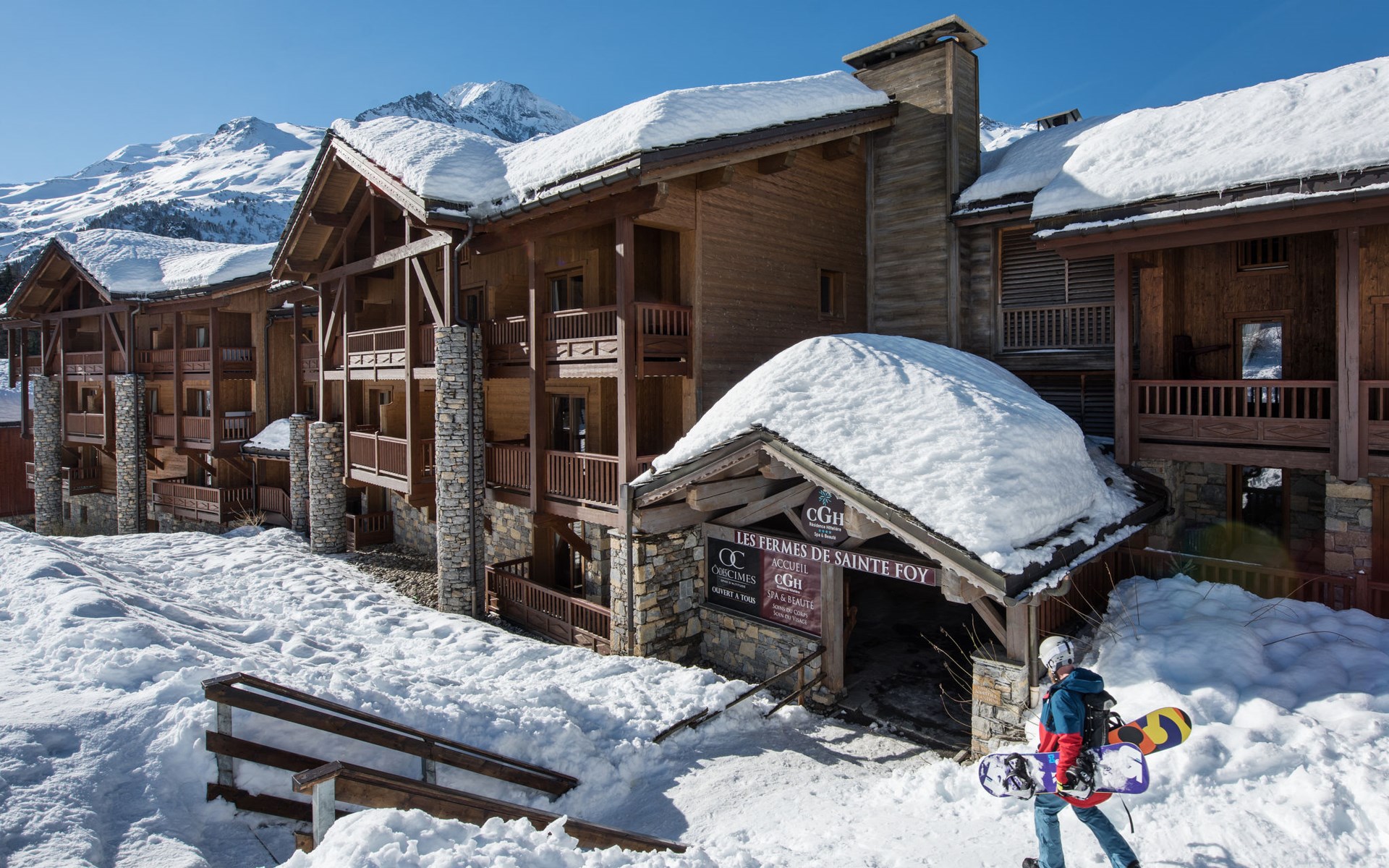 Schöne, rustikale, komfortable Residenz "CGH Rés&Spa Les Fermes de Ste Foy". 5 Häuser in der Residenz. 70 Wohnungen in der Residenz. Im Ort Sainte Foy Tarentaise, 75 km vom Zentrum von Albertville, direkt am Skigebiet. Zur Mitbenutzung: Hallenbad beheizt (12 x 6 m, saisonale Verfügbarkeit: 01.Jan. - 31.Dez.). In der Anlage: Empfang, Aufenthaltsraum, Wireless LAN, Sauna, Fitnessraum, Massage (extra). Dampfbad, Sprudelbad, Billard, Fahrstuhl, Skiraum, Waschmaschine, Wäschetrockner (extra), Skischuhtrockner. Brötchenservice. Abstellraum vorhanden. Gemeinschaftsgarage (extra). Parkplatz/Garage nur für kleine - mittlere Fahrzeuge geeignet. Maße: Höhe 180 cm. Lebensmittelgeschäft 400 m, Restaurant 50 m, Bahnstation "Bourg Saint Maurice" 20 km. Skilift 500 m, Skipisten, Skiverleih 100 m. Bekannte Skigebiete sind gut erreichbar: Sainte Foy Tarentaise. Bitte beachten: Babyausstattung auf Anfrage (inkl.). Das Foto ist nur ein Hausbeispiel. Die Mietobjekte können sich in Wohnfläche, Raumaufteilung, Ausstattung und Einrichtung unterscheiden.