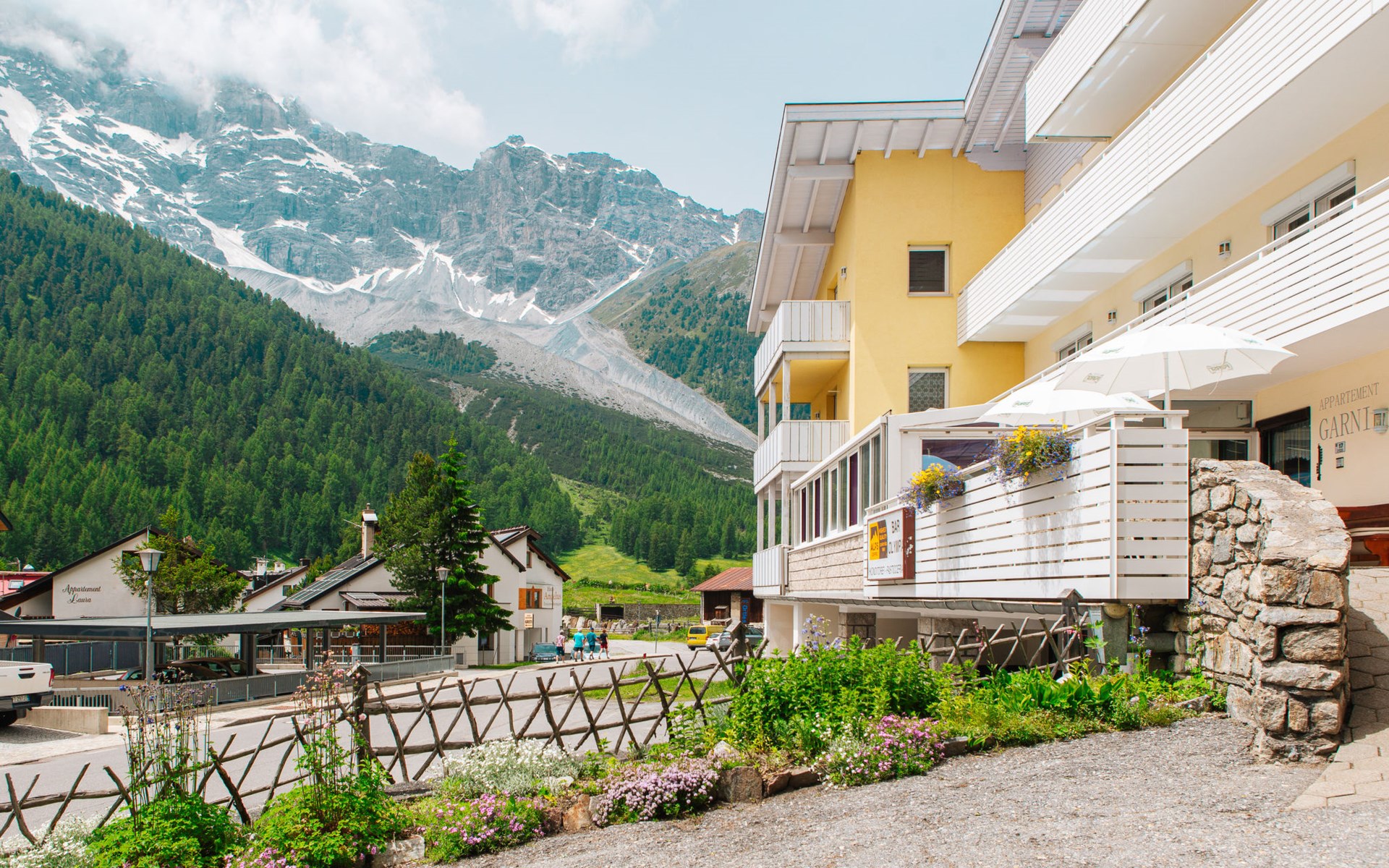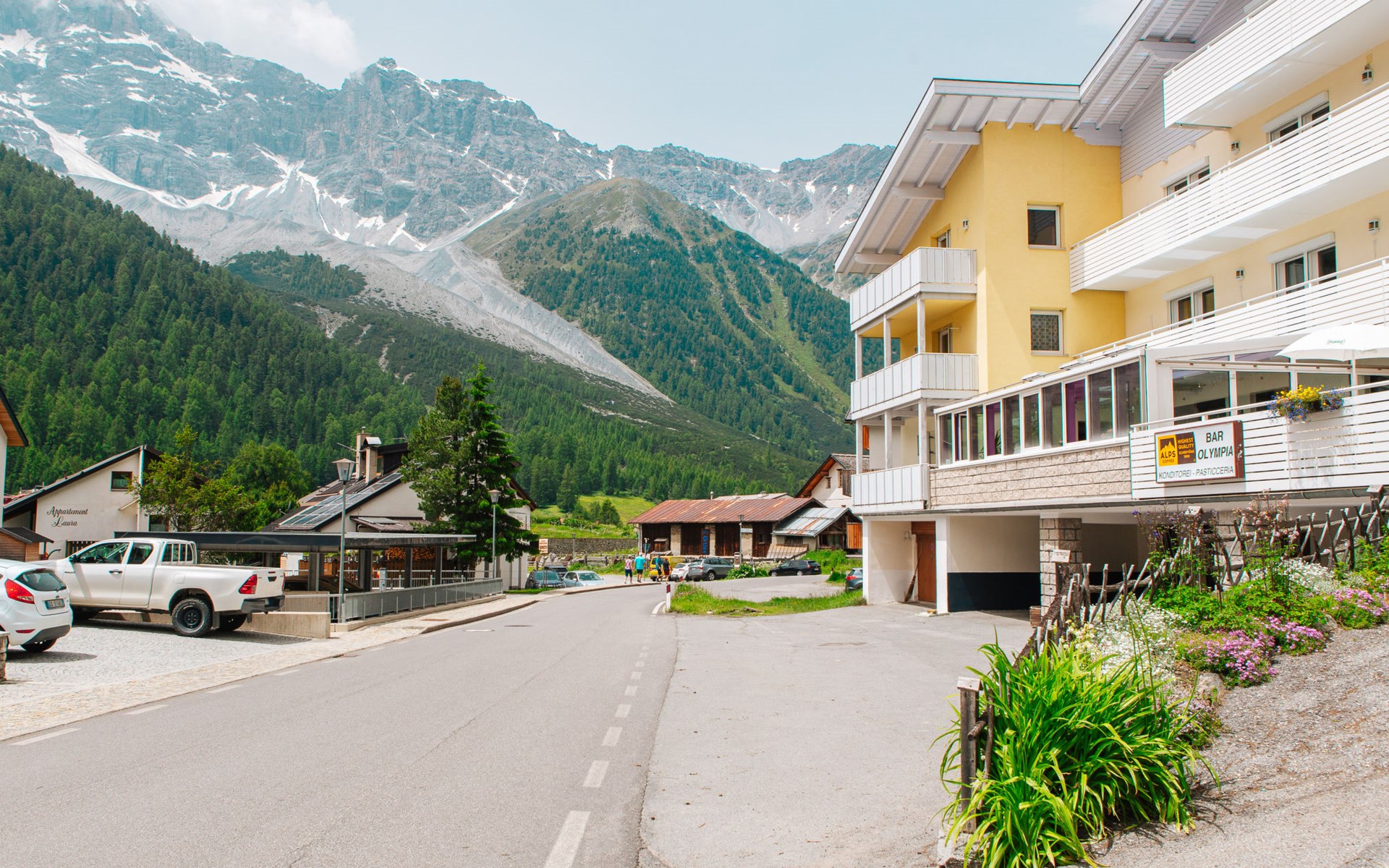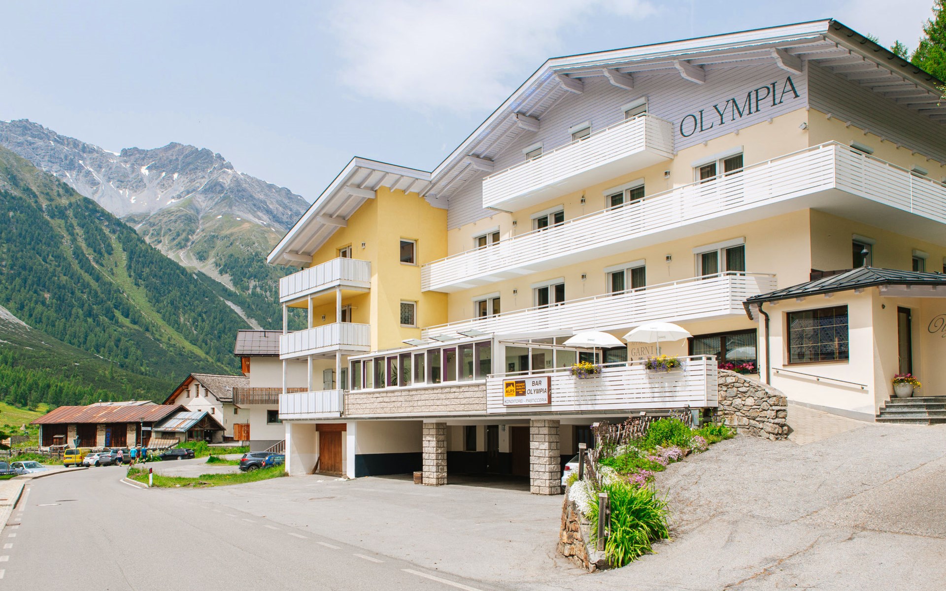 Schönes Appartementhaus "Olympia", auf 4 Stockwerken. Im Ort, 450 m vom Zentrum von Sulden, sonnige, erhöhte Lage, 50 m vom Waldrand, 750 m vom Skigebiet. Zur Mitbenutzung: Terrasse, Gartenmöbel. Im Hause: Empfang, Bar, Frühstücksraum, Sauna, Dampfbad (alles inkl.), Ruheraum, Fahrstuhl, Skischuhtrockner. Frühstück auf Anfrage (extra). Im Winter bitte Schneeketten mitbringen. Parkplatz beim Haus. Einkaufsgeschäft, Lebensmittelgeschäft 450 m, Supermarkt 500 m, Restaurant 100 m, Café 20 m, Bushaltestelle 3.6 km. Wanderwege ab Haus 10 m, Luftseilbahn 1 km, Sessellift, Skisportanlagen 750 m, Skibushaltestelle 20 m, Kinderskischule 900 m. Bekannte Skigebiete sind gut erreichbar: Kanzellift 1 km, Rosimbahn 2.6 km, Langenstein 700 m. Wandergebiete: Sulden am Ortler, Madritschhütte, Schöneck. Bitte beachten: Der Besitzer wohnt im selben Haus.