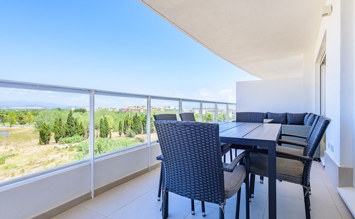 Moderne Residenz "Gran Canet", Baujahr 2022. Ruhige, sonnige Lage, 900 m vom Meer, 900 m vom Strand. Zur Mitbenutzung: Garten mit Rasen und Bäumen, 3 Schwimmbäder (saisonale Verfügbarkeit: 15.Jun. - 15.Sep.). Kinderbecken, Aussendusche, Tennis. In der Anlage: Empfang, Bar, Sauna, Fitnessraum, Solarium, Fahrstuhl. Parkplatz (überdacht) beim Haus. Supermarkt, Restaurant, Bar, Café 800 m, Bushaltestelle 700 m, Bahnstation 7 km, Sandstrand "Canet Playa" 900 m. Sporthafen, Surfschule, Wanderwege ab Haus, Radweg 900 m. Nahe gelegene Sehenswürdigkeiten: Valencia 30 km. Der Besitzer akzeptiert keine Jugendgruppen. Die Nachbarschaft ist sehr lärmempfindlich. Ruhe und gutes Benehmen wird erwartet.