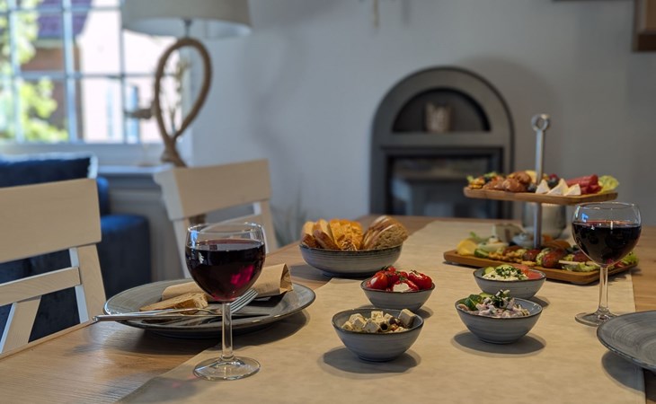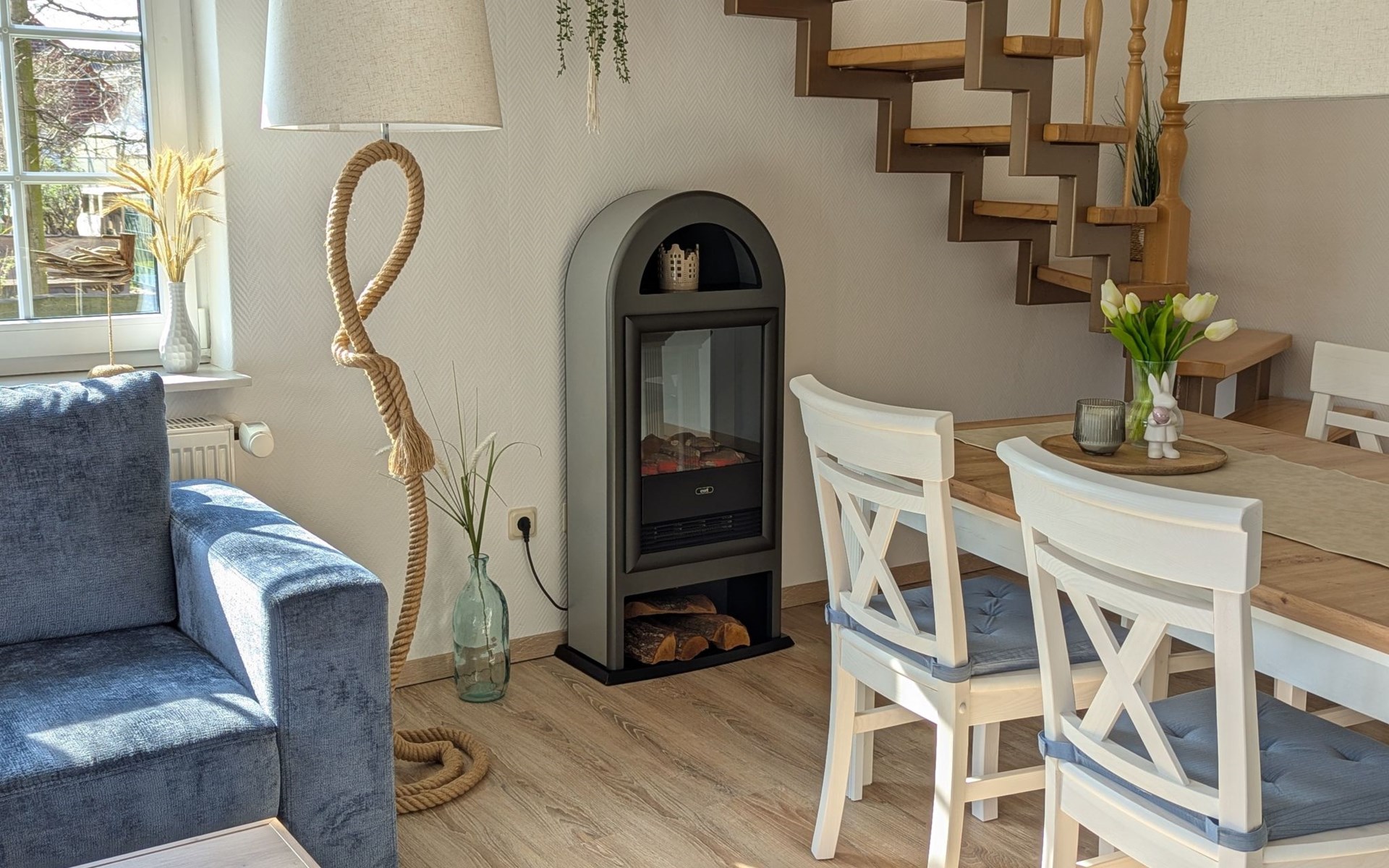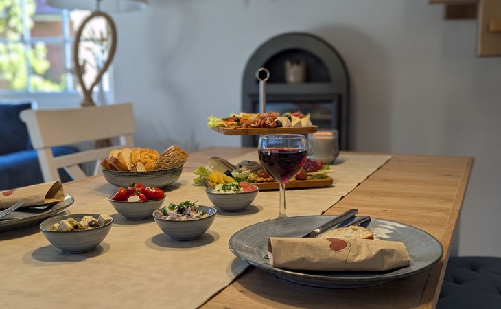 Nach der Ankunft in unserer Ferienwohnung Lüttje Huus finden sie alles für die erste Auszeit mit einer für diese Region typischen Tasse Ostfriesentee oder Kaffee und Plätzchen, die sie an unserem gemütlichen Elektrokamin oder auf der Terrasse genießen können.
