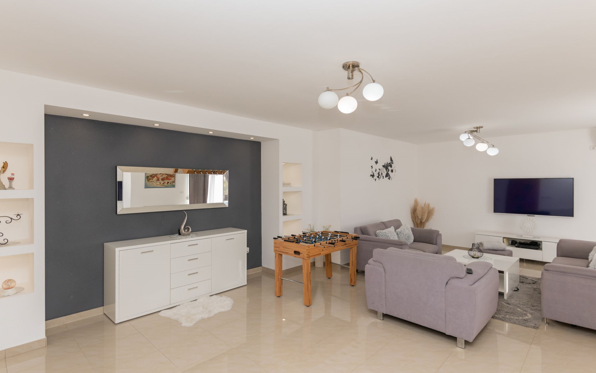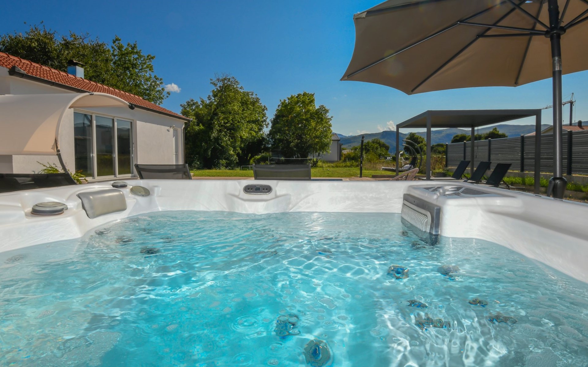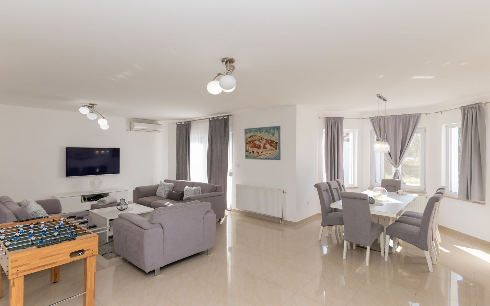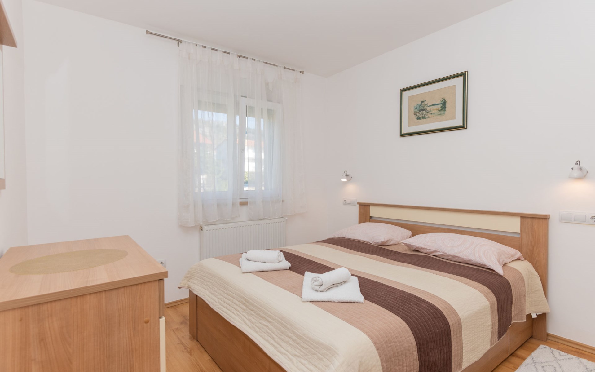 Donji Proložac 6 km von Imotski: Einfamilienhaus "Ana". 38 km vom Meer, 5 km vom See. Zur Alleinbenutzung: Grundstück 1'200 m2, Schwimmbad eckig, beheizt (8 x 4 m, 150 cm tief, saisonale Verfügbarkeit: 01.Mai. - 01.Okt.) mit Innentreppe. WC im Poolbereich, Aussendusche, Sprudelbad, Tischtennis, Terrasse (250 m2), Gartenmöbel, Grillhaus, Kinderspielplatz. Im Hause: Internetzugang, Tischfussball, Trampolin, Waschmaschine. Parkplatz (für 4 Autos) beim Haus auf dem Grundstück. Einkaufsgeschäft 2 km, Restaurant 4 km, Bushaltestelle 5.5 km, Kieselstrand 38 km, Felsstrand 38 km. Bekannte Seen in der Umgebung sind gut erreichbar: Modro jezero 6 m, Crveno jezero 6 m.