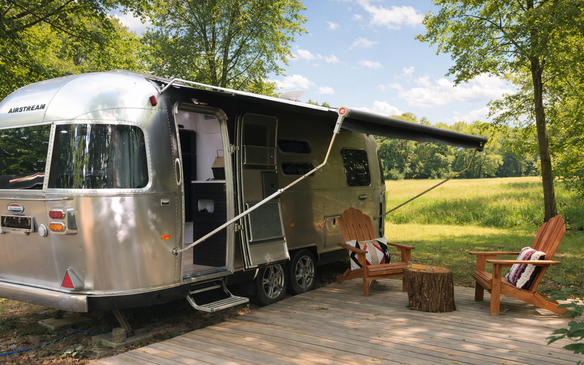 Der Airstream ist eine einzigartige und stilvolle Unterkunft für alle, die etwas Besonderes suchen. Dieser ikonische Wohnwagen, geeignet für zwei Personen, verfügt über eine Veranda mit privatem Hot Tub und bietet einen herrlichen Blick auf den großen See. Dank der festen Markise am Airstream genießen Sie das Leben im Freien in vollen Zügen, während Komfort und Ruhe während Ihres Aufenthalts im Mittelpunkt stehen.